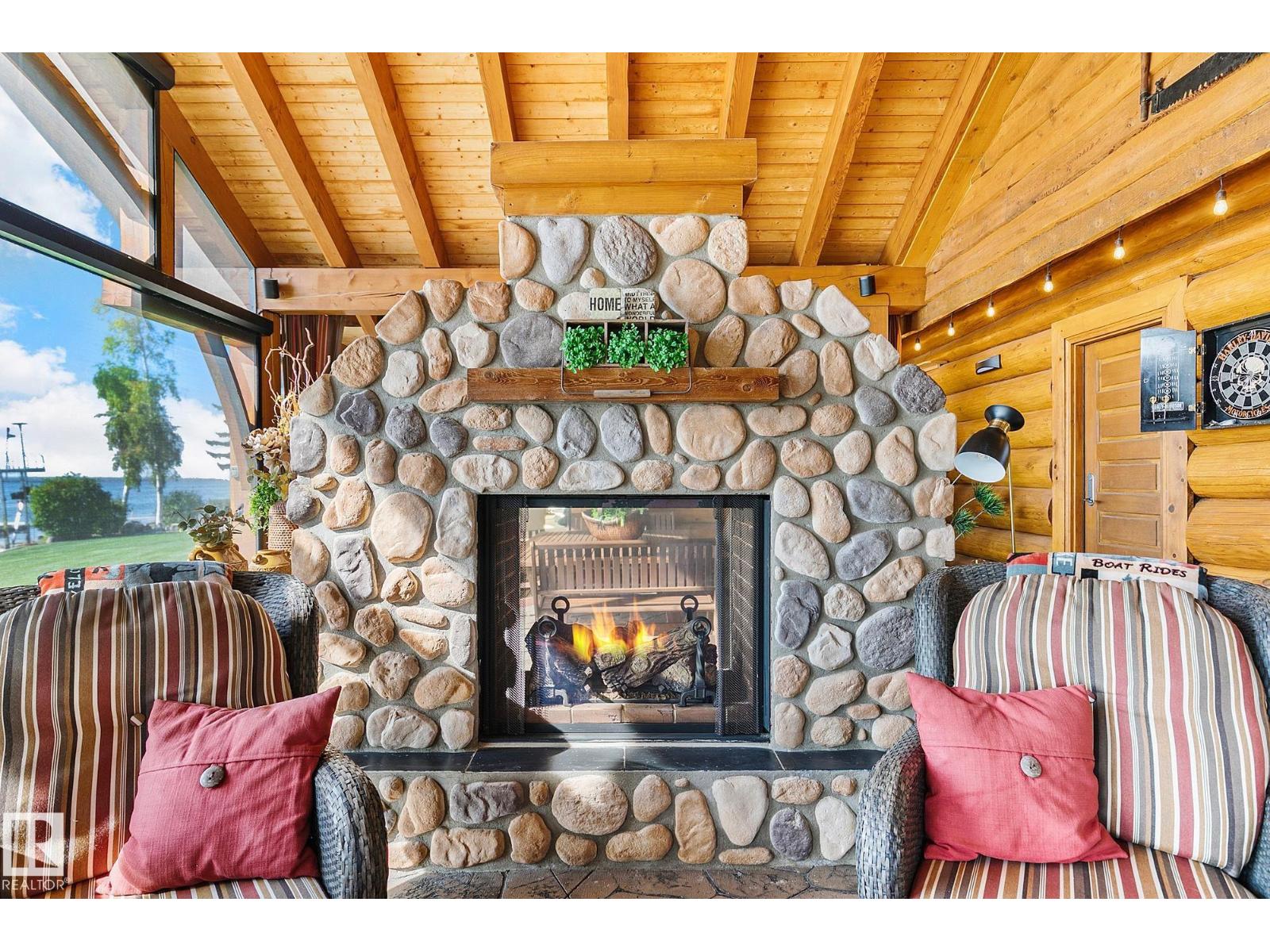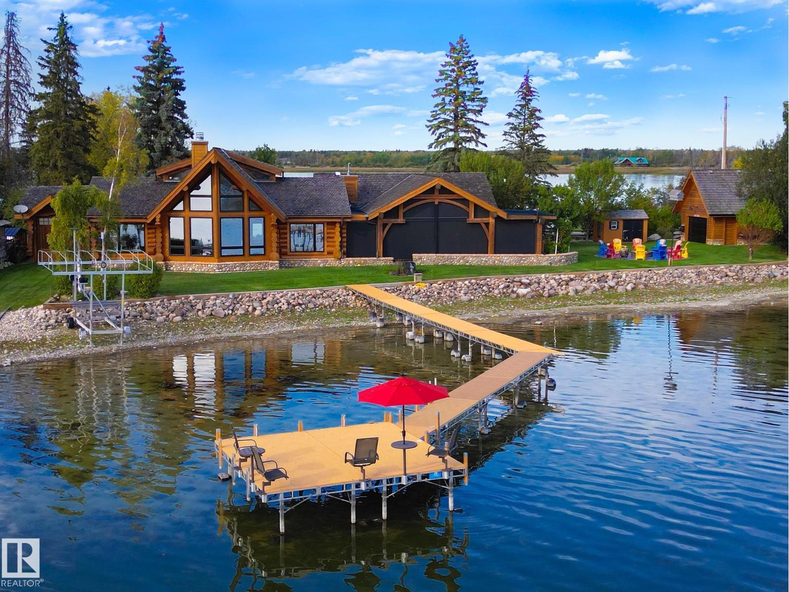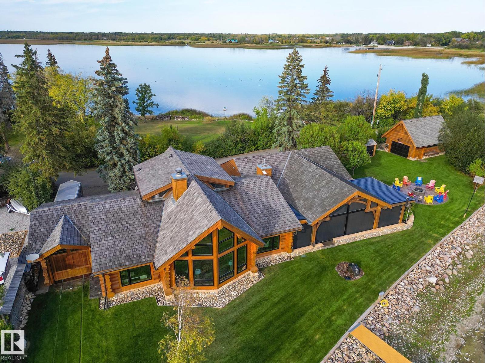 Rare LAKEFRONT resort offered just in time for lake season! Imagine watching the sunrise over the lake & playing hockey on your own ODR, until sundown. HEAVENLY! Truly enjoyable in all 4 seasons. Connected by a private causeway, this divine half-acre property offers over $700,000 in upgrades. Pride of ownership exudes. Enjoy a 200-ft sandy beach with a rebuilt storm wall, a new Floe aluminum-cedar dock, & boat trolley, making it effortless to launch your boat at your convenience. The home features 50-year cedar shakes, triple-pane low-E windows & copper eavestroughs. Inside, you’ll find a Wolf gas range, a Sub-Zero fridge, stone countertops, & quality cabinetry, along with updated stamped concrete & tile flooring, a spa-style steam shower & fresh paint. Outdoor living shines with a heated, enclosed patio featuring a fireplace & gas heaters, a built-in BBQ, a fire pit & beautifully landscaped, irrigated grounds, a turn-key lakefront getaway with history, community spirit & modern luxury. (id:42720)