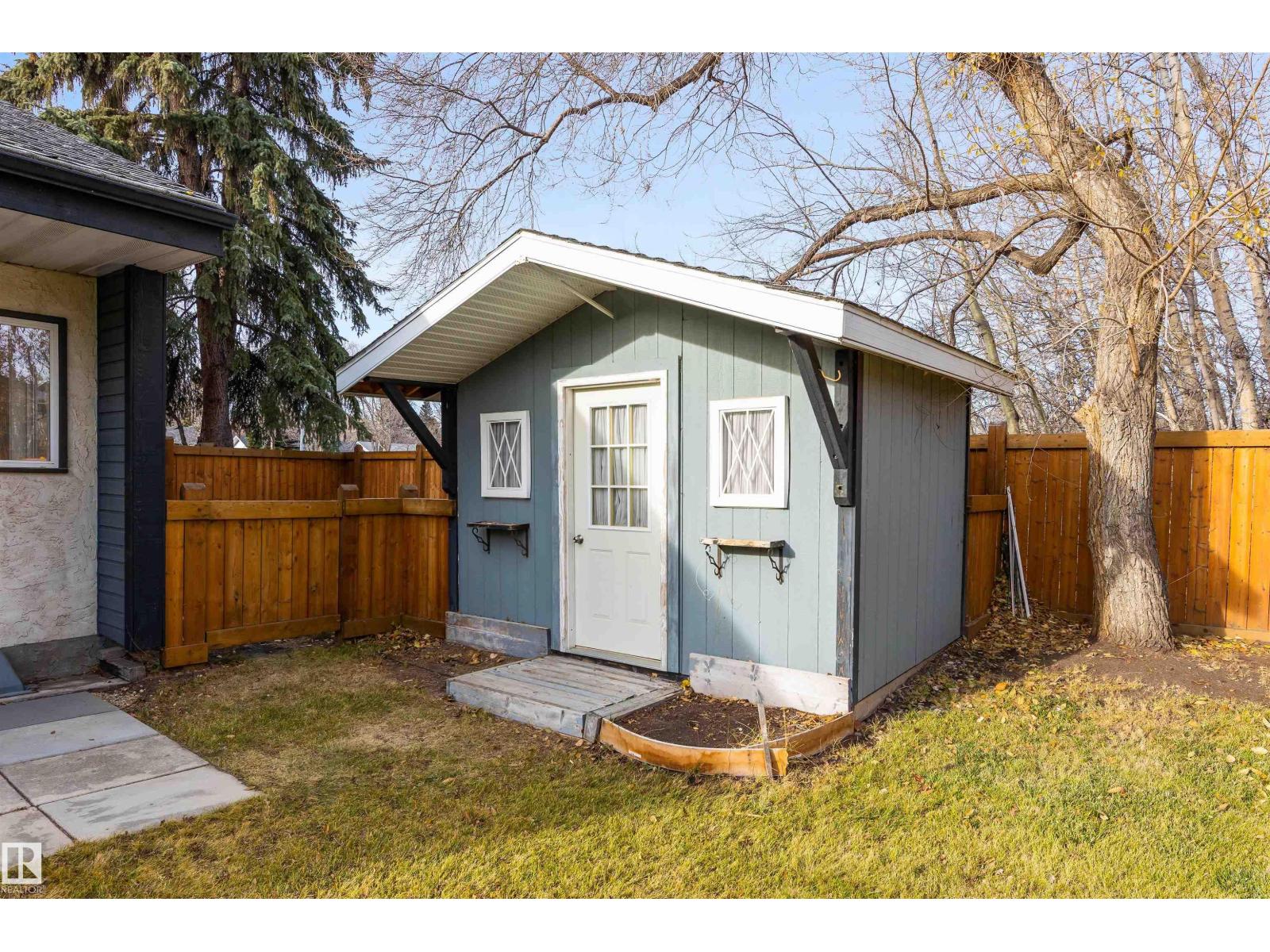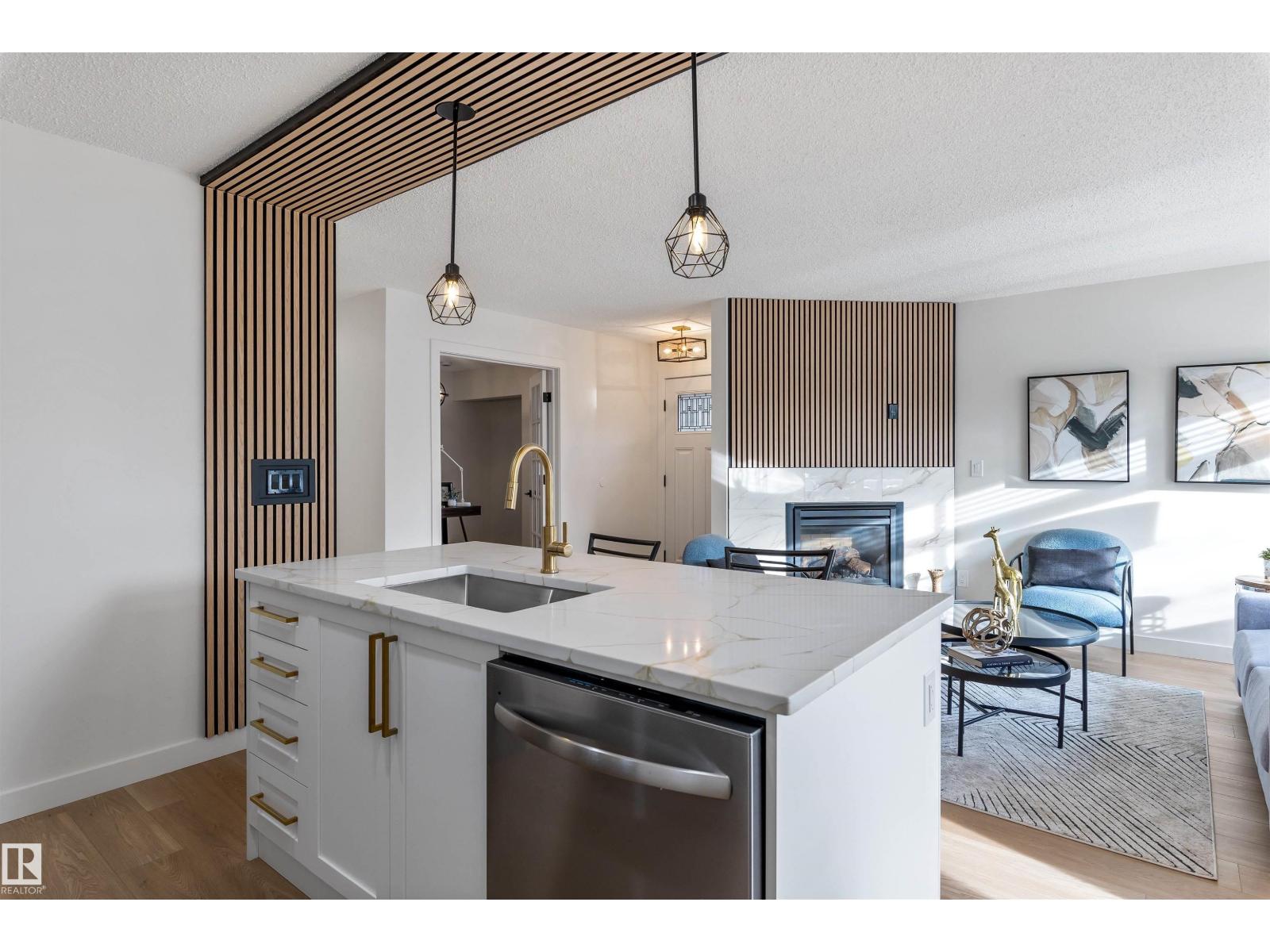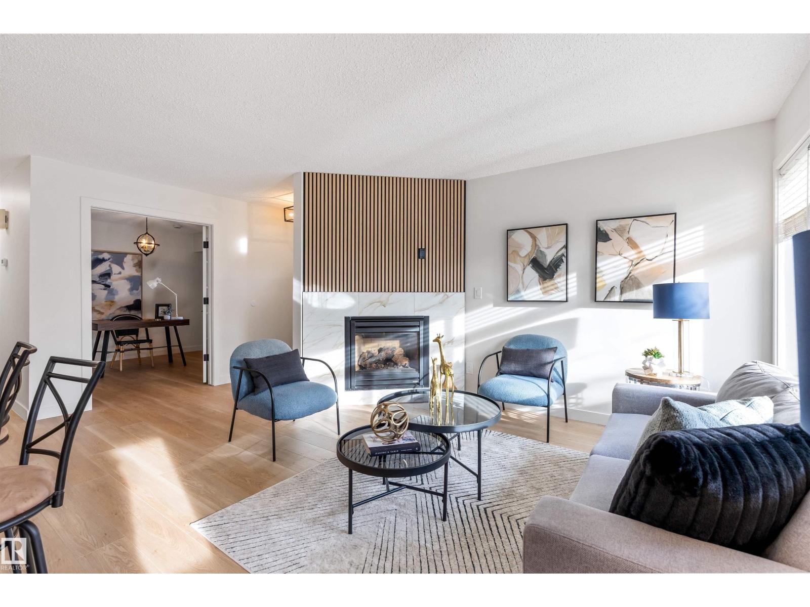 Sitting in this cozy condo community, discover this renovated fully finished BUNGALOW. Siding onto GREENSPACE, this unit has an amazing location w/ a fenced yard & a large storage shed. The entrance enters into a modernized OPEN DESIGN. VINYL FLOORING spreads throughout the main floor. The kitchen has white cabinetry, QUARTZ COUNTERS, eating bar island, tiled back splash, pot/pan drawers, s/s appliances & more. The living room has large windows looking out front & a corner GAS F/P. There are double French doors off the entrance into the flex room, which makes an amazing office or an additional bedroom. The main bathroom is completely renovated w/ new cabinetry, tub/shower & fixtures. The spacious primary bedroom has double closets, sliding doors to a private back deck & a brand new 3pce ENSUITE. Across from the primary bedroom is the laundry. The basement is finished w/ a massive family room, 3pce bath & flex room. There are 2 assigned parking stalls in front of this unit! (id:42720)