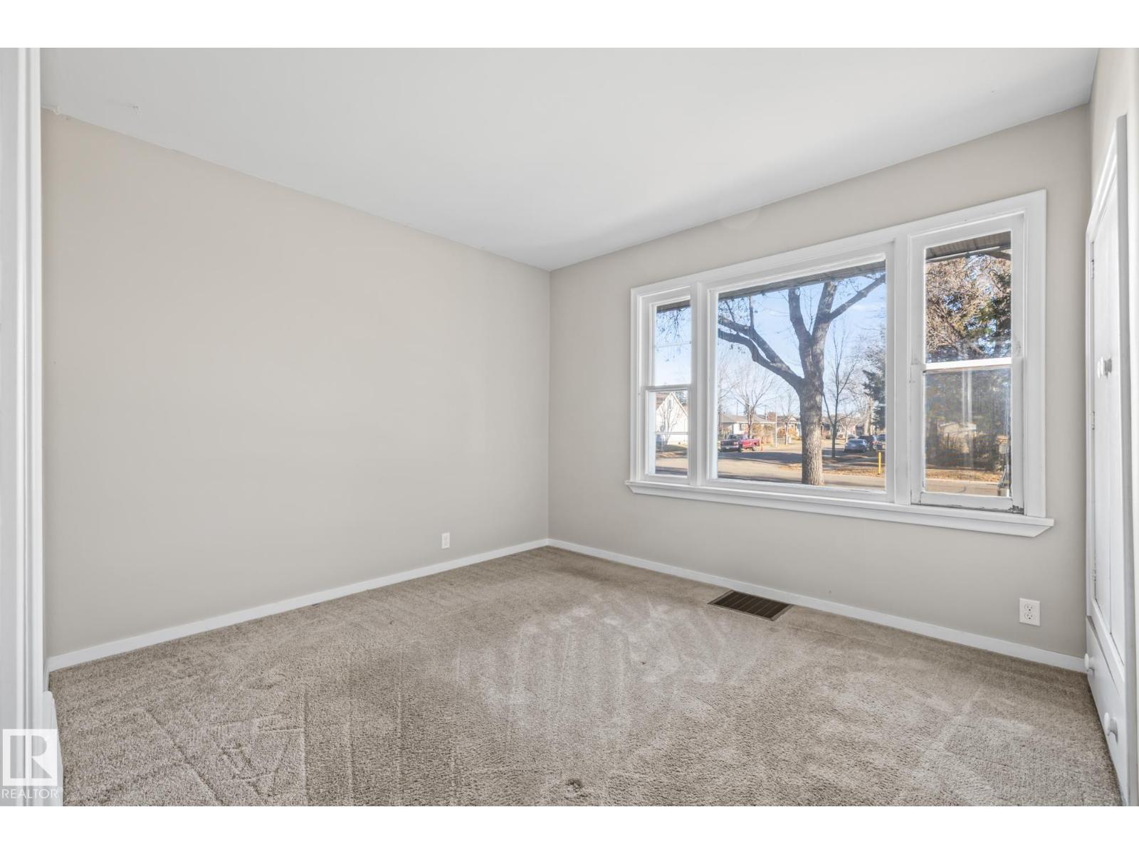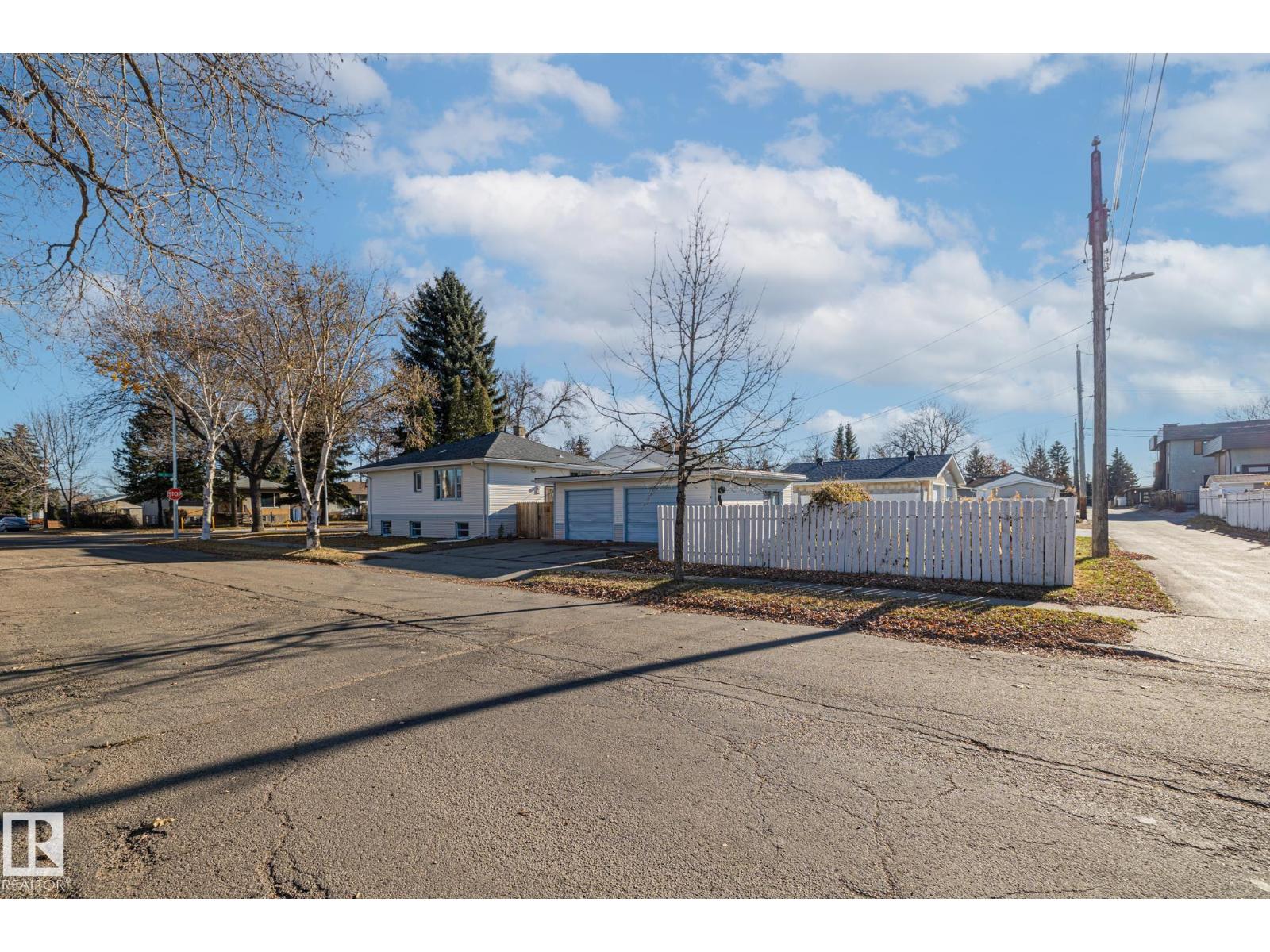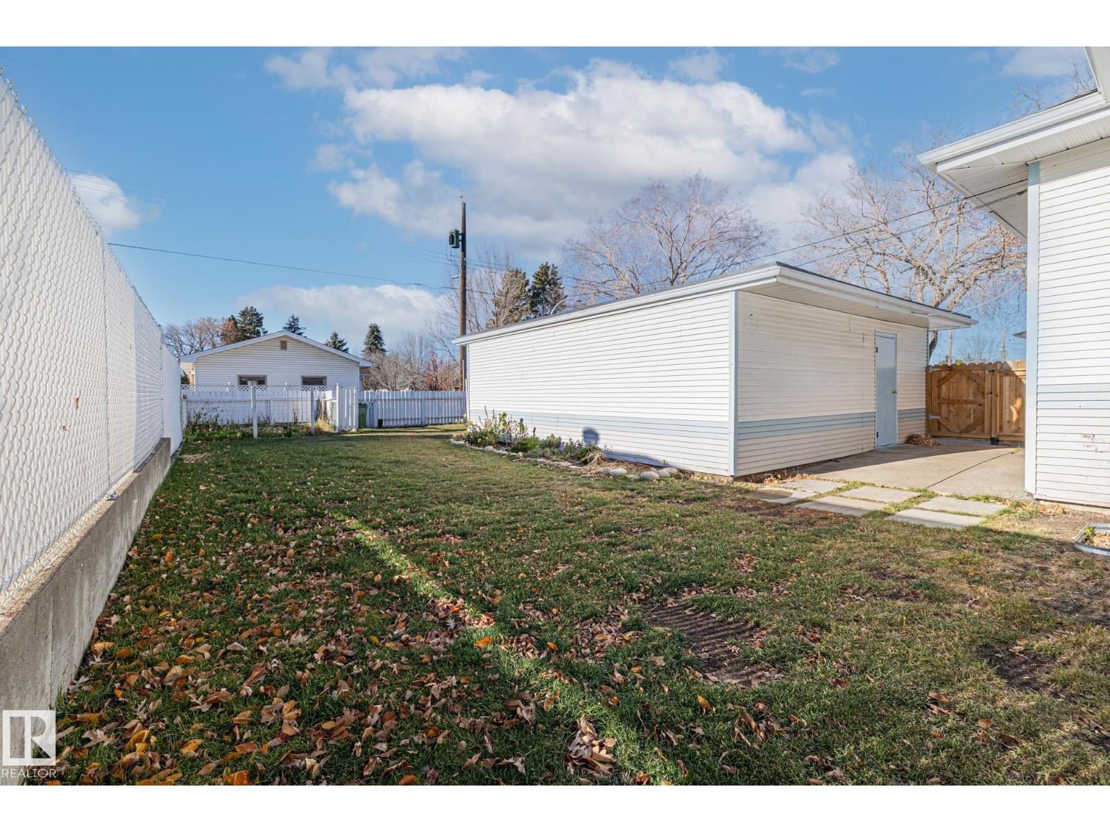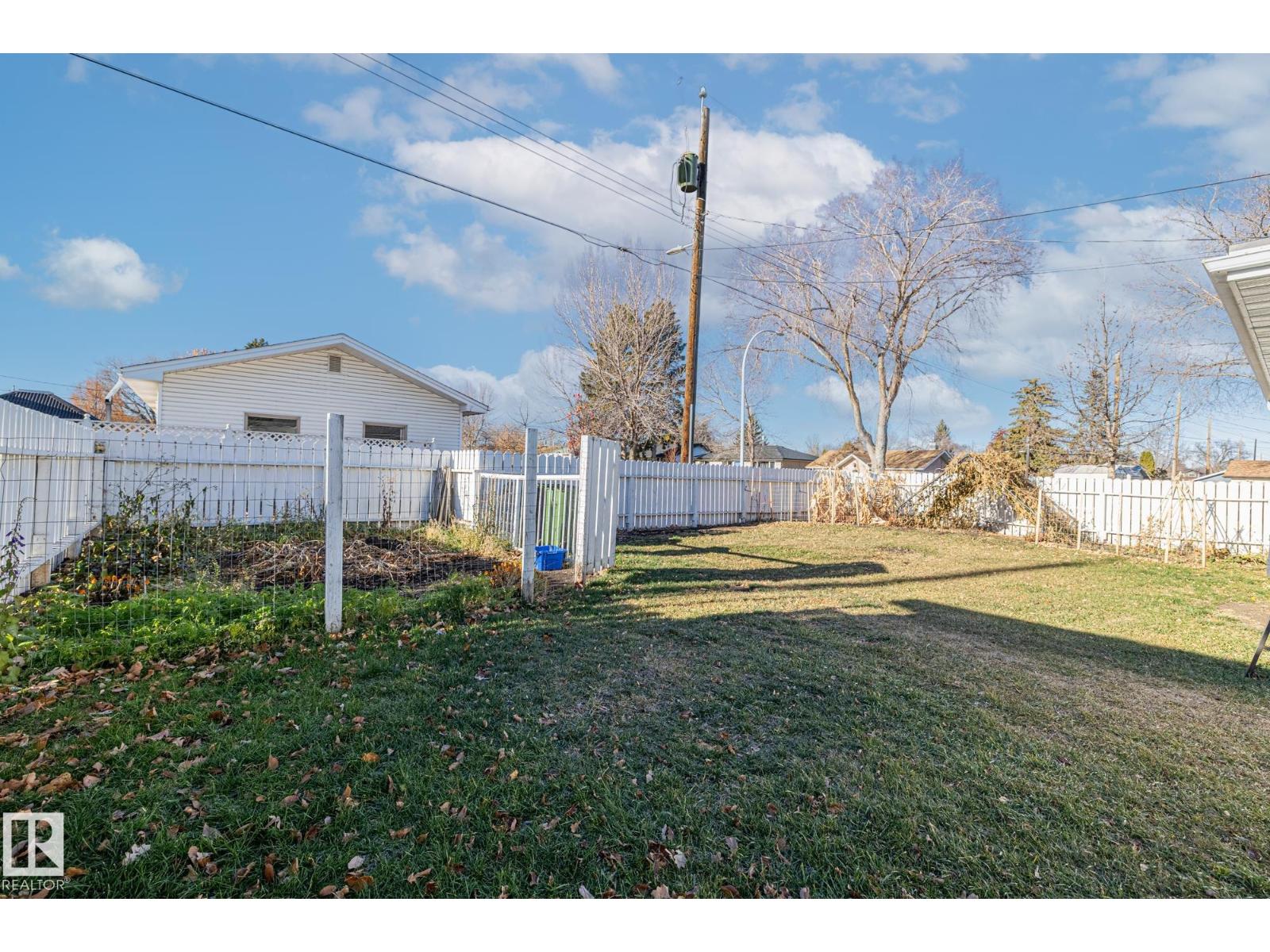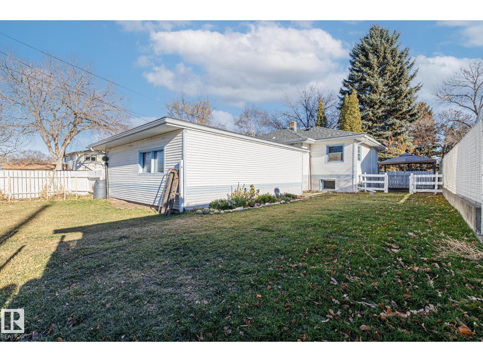 This cozy 940 sq ft bungalow is situated on a large corner lot in mature Beverly Heights, known for its large trees and wide streets. Features include an open floor plan and has been recently upgraded throughout. It offers 4 bedrooms (2 up+2 down) and 2 full bathrooms. A separate entrance allows easy access to the basement. The exterior boasts a coveted west-facing backyard designed for entertaining featuring a pergola, vegetable garden, and ample space. Parking includes a double detached garage (with a new flat commercial roof), an additional parking pad, and abundant street parking. Location is everything, with proximity to schools and just minutes from the Edmonton River Valley and Rundle Park, alongside nearby golf courses and a ski hill. A quick trip to Downtown Edmonton, Anthony Henday Drive, and Yellowhead Trail. The corner lot configuration also offers great future development potential. Enjoy one of the city's hidden gems in historic Beverly Heights. (id:42720)