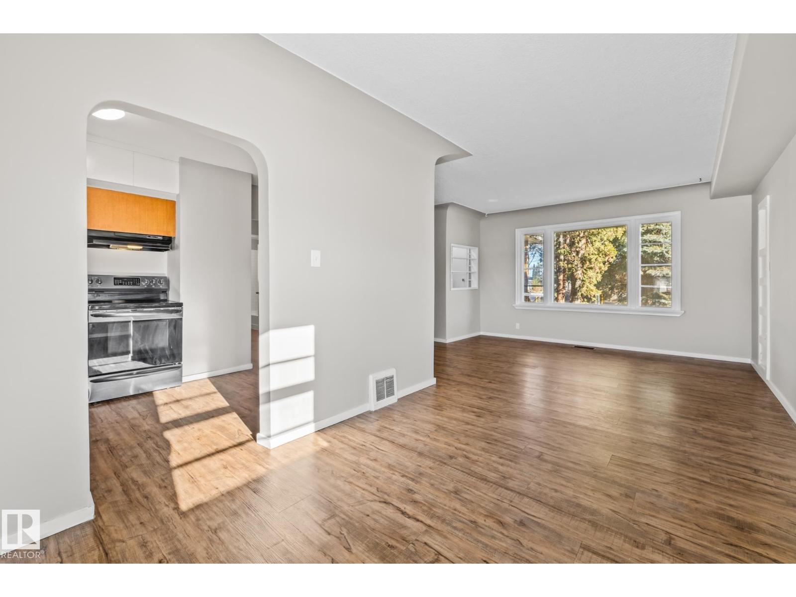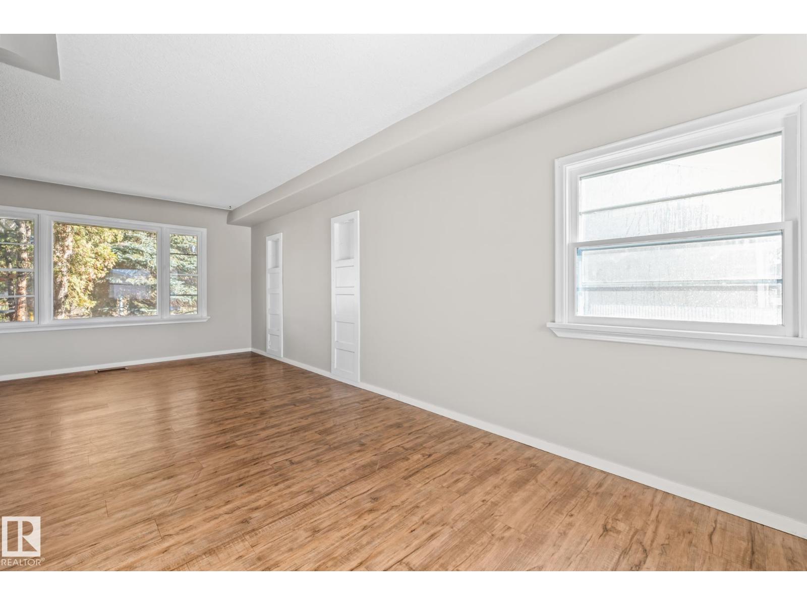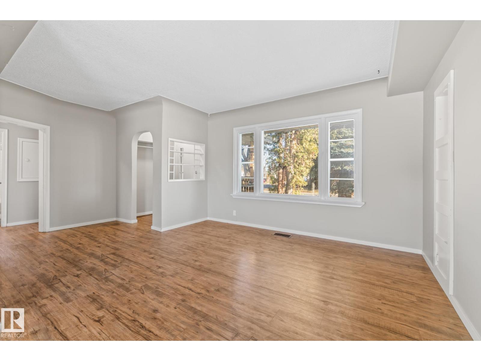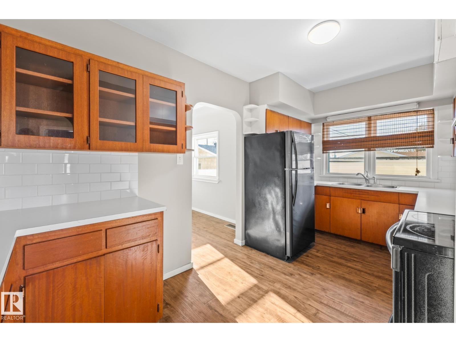 This cozy 940 sq ft bungalow is situated on a large corner lot in mature Beverly Heights, known for its large trees and wide streets. Features include an open floor plan and has been recently upgraded throughout. It offers 4 bedrooms (2 up+2 down) and 2 full bathrooms. A separate entrance allows easy access to the basement. The exterior boasts a coveted west-facing backyard designed for entertaining featuring a pergola, vegetable garden, and ample space. Parking includes a double detached garage (with a new flat commercial roof), an additional parking pad, and abundant street parking. Location is everything, with proximity to schools and just minutes from the Edmonton River Valley and Rundle Park, alongside nearby golf courses and a ski hill. A quick trip to Downtown Edmonton, Anthony Henday Drive, and Yellowhead Trail. The corner lot configuration also offers great future development potential. Enjoy one of the city's hidden gems in historic Beverly Heights. (id:42720)