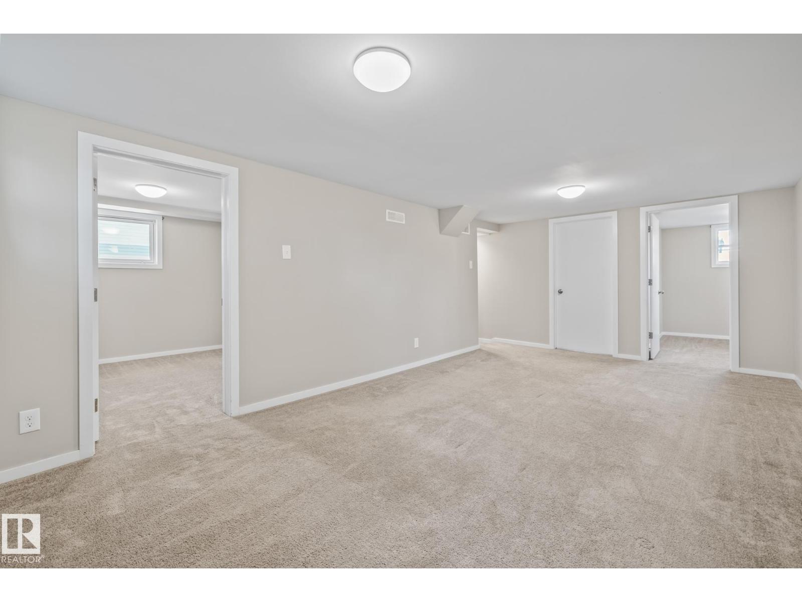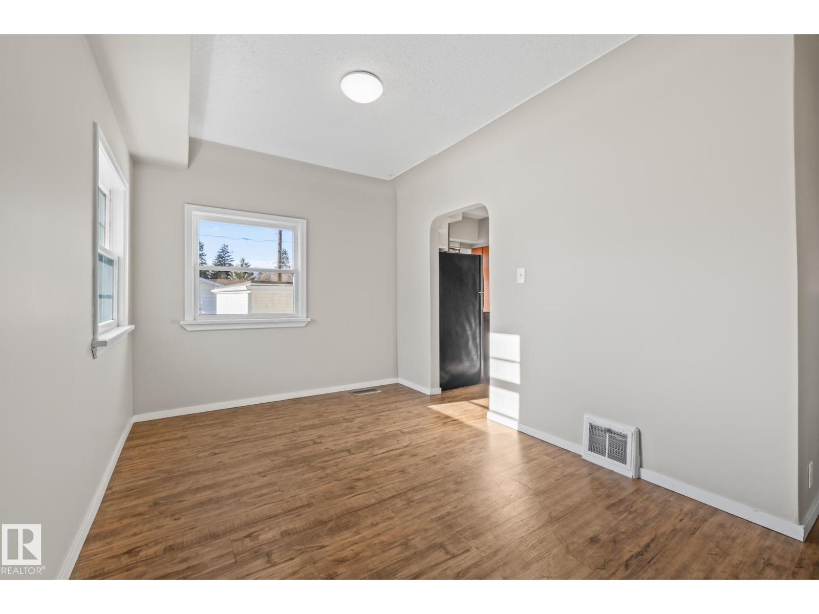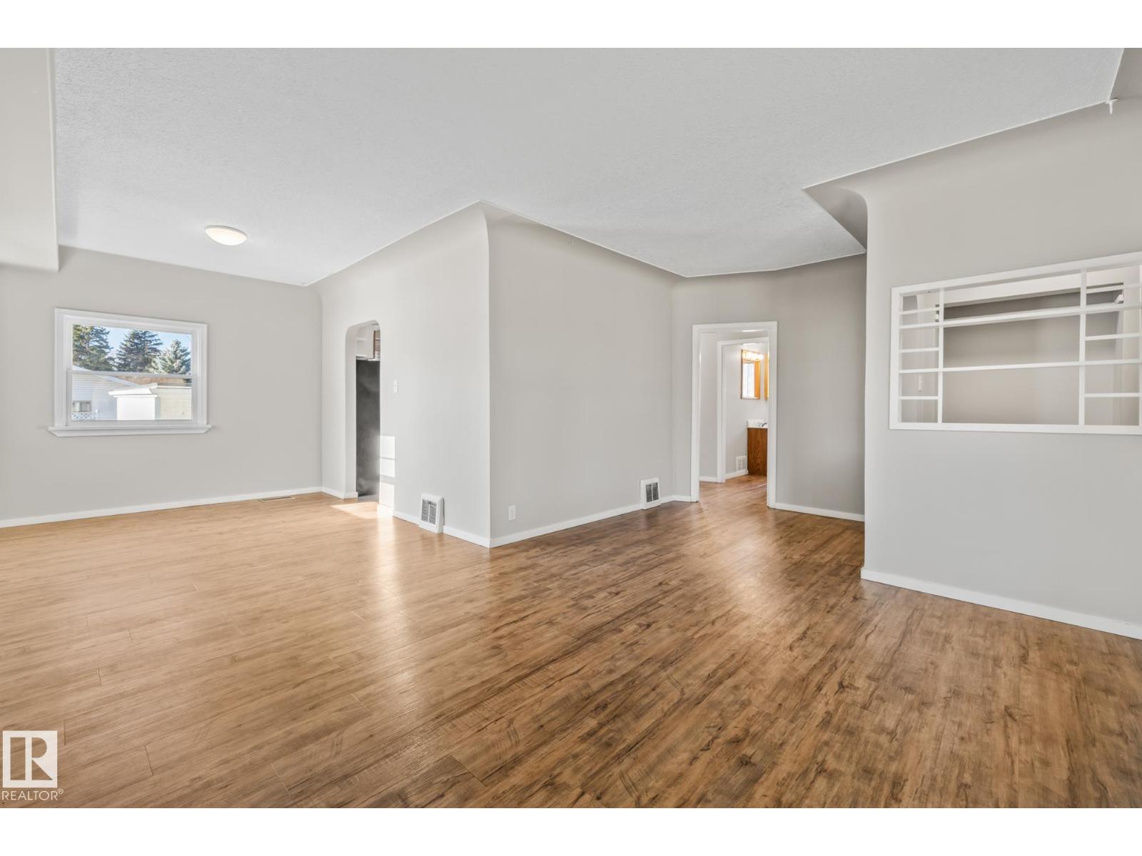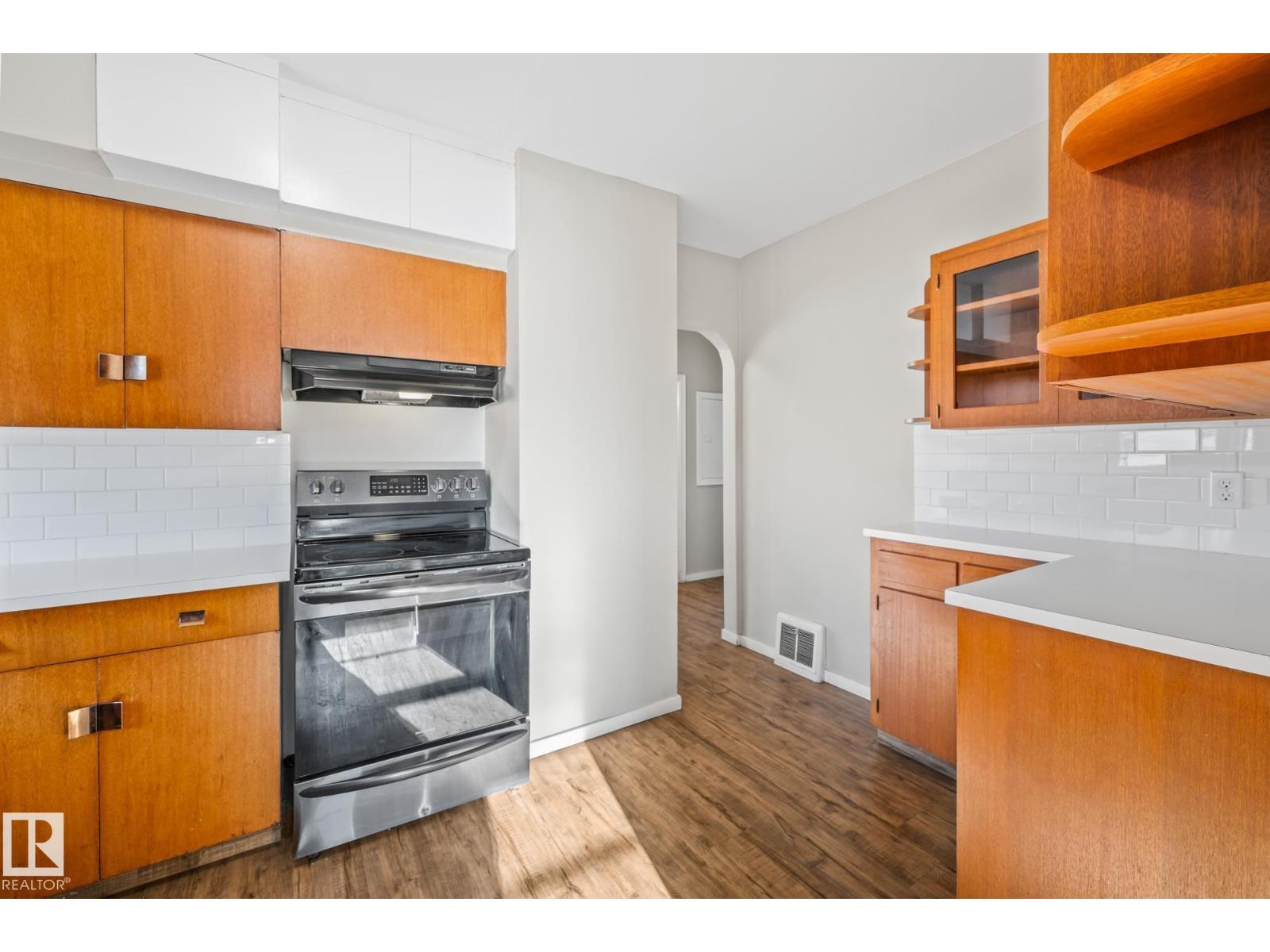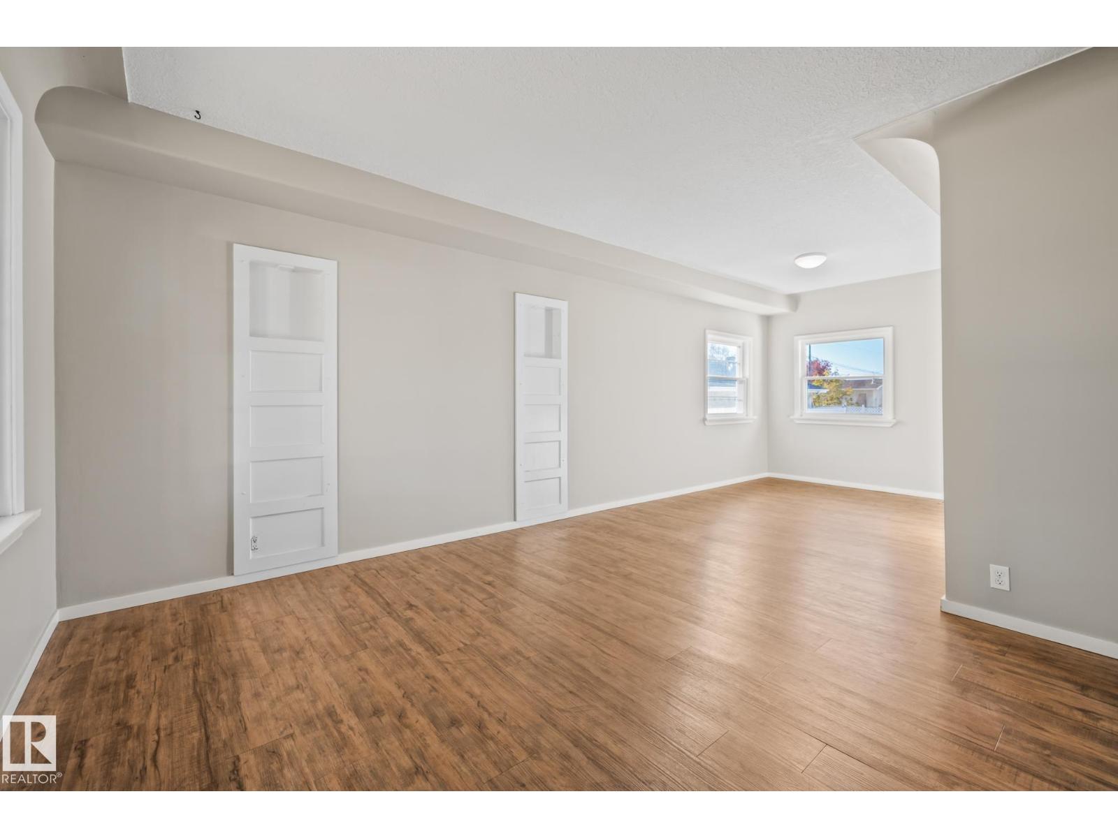 This cozy 940 sq ft bungalow is situated on a large corner lot in mature Beverly Heights, known for its large trees and wide streets. Features include an open floor plan and has been recently upgraded throughout. It offers 4 bedrooms (2 up+2 down) and 2 full bathrooms. A separate entrance allows easy access to the basement. The exterior boasts a coveted west-facing backyard designed for entertaining featuring a pergola, vegetable garden, and ample space. Parking includes a double detached garage (with a new flat commercial roof), an additional parking pad, and abundant street parking. Location is everything, with proximity to schools and just minutes from the Edmonton River Valley and Rundle Park, alongside nearby golf courses and a ski hill. A quick trip to Downtown Edmonton, Anthony Henday Drive, and Yellowhead Trail. The corner lot configuration also offers great future development potential. Enjoy one of the city's hidden gems in historic Beverly Heights. (id:42720)