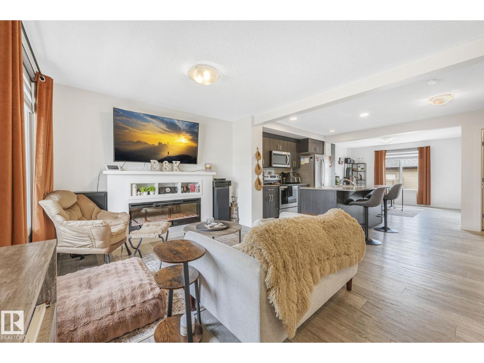 Welcome to this charming townhome with NO CONDO FEES in the heart of Cy Becker! The main floor offers an open concept chef’s kitchen with quartz countertops, stainless steel appliances, a spacious dining area, a living room w/ electric fireplace, luxury vinyl plank flooring & a convenient half bath. Upstairs, the primary suite offers a walk-in closet & a spa like 4-pc ensuite. Two additional bedrooms, a second 4-pc bath & upstairs laundry complete the upper level. Custom blinds throughout & recently completed backyard landscaping make this home move in ready. Ideal for investors or buyers looking for a turnkey property in a prime location near public transportation, schools, trails & all major amenities. Don’t miss out on this one! Shows 10/10! (id:42720)