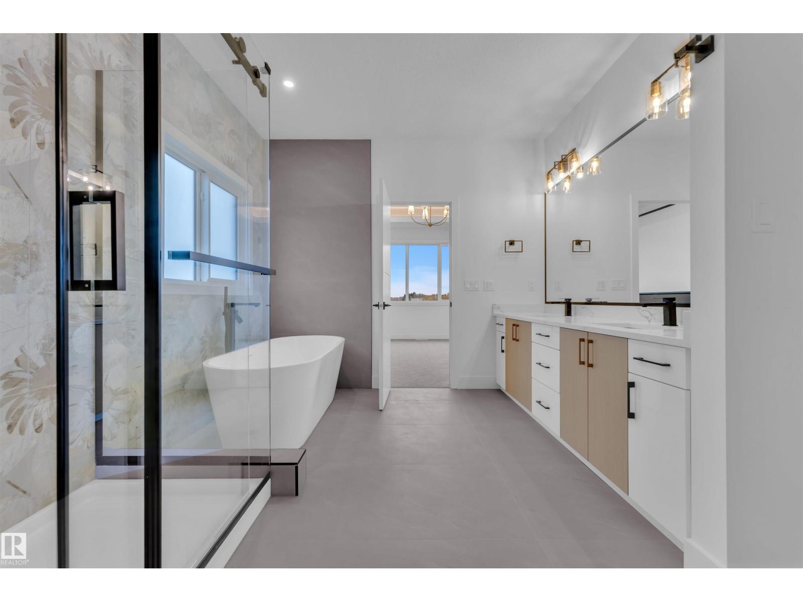 This stunning backing on to green pre-construction custom 2-story single-family home is nestled in the heart of Erin Ridge, St. Albert, AB. Ideally located near schools, parks, grocery stores (including Costco), transit, and numerous amenities, this home offers exceptional value. It features 9-10-20 ft ceilings, including the basement, enhancing the spacious and airy feel. The main level boasts a spice kitchen with a pantry, a cozy fireplace with an open-to-above concept. Altogether, you’ll find 4 spacious bedrooms, including 2 master suites, 4 full baths, a versatile bonus room, and multiple large walk-in closets—perfect for ample storage.—some lots back onto ponds or offer larger yards.**Photos are from a similar home built by the builder; actual finishes & layout may vary.** (id:42720)