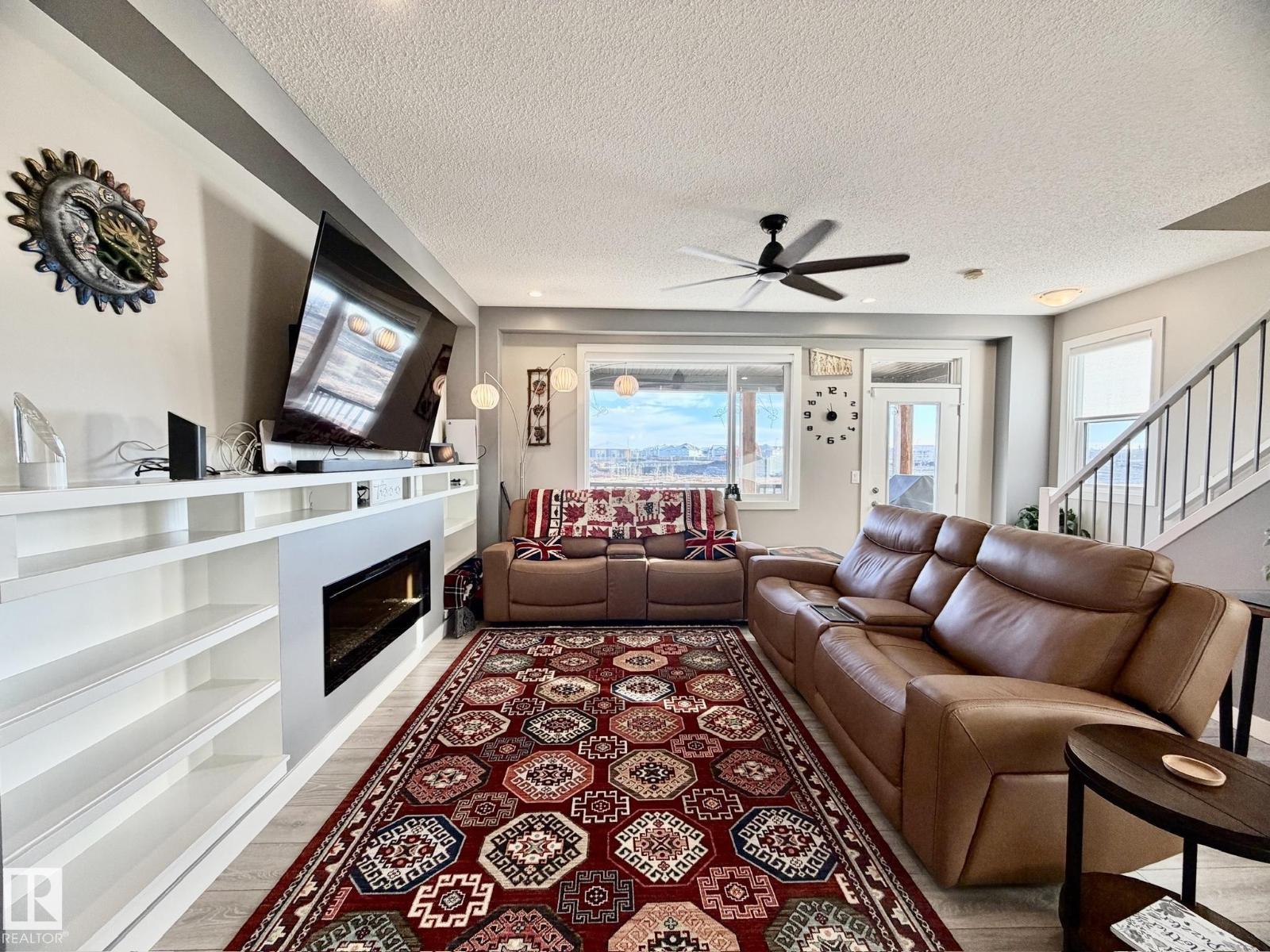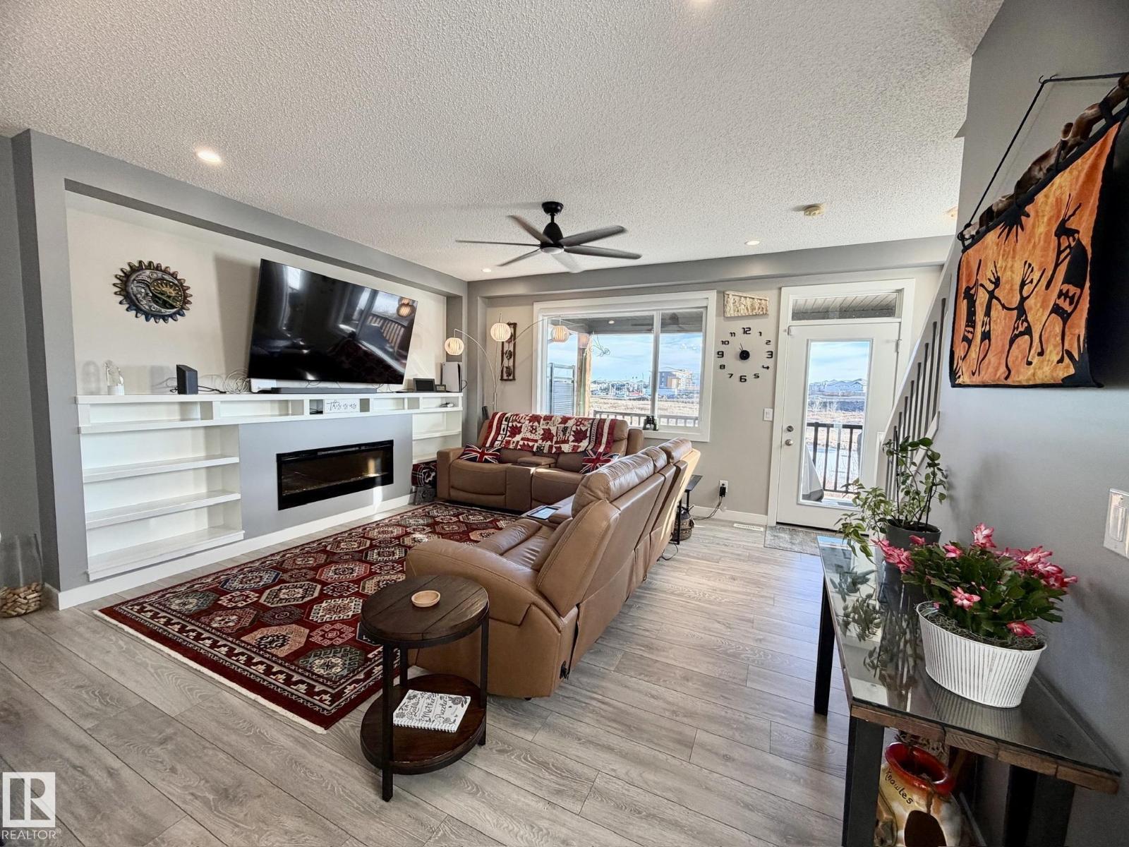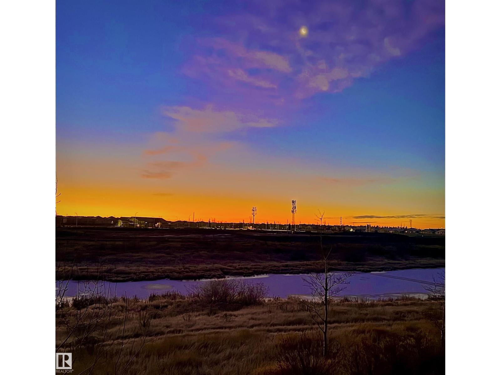 This stunning END UNIT, 3-storey townhome in Allentown offers modern style, thoughtful upgrades & an unbeatable location! Overlooking a tranquil wetland in vibrant Schonsee, this beautifully maintained home features a spacious kitchen with ample cabinetry, upgraded stainless steel appliances & a huge island that seamlessly connects the dining & living areas. Enjoy the cozy electric fireplace or step onto your private balcony—enhanced with a phantom screen—for morning coffee while watching the gorgeous sunrises or evening relaxation by the fire pit. The upper floor boasts TWO PRIMARY SUITES, each with its own ensuite & walk-in closet, plus a convenient desk nook. The updated laundry room offers smart built-in storage, and the bright above-grade flex space is perfect for a home office, gym, or play area. With a dbl attached HEATED garage, tons of natural light & quick access to shopping, parks, and the Anthony Henday, this exceptional end unit delivers comfort, convenience & incredible value. A must-see! (id:42720)