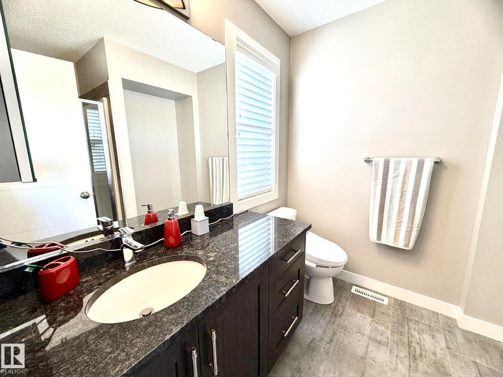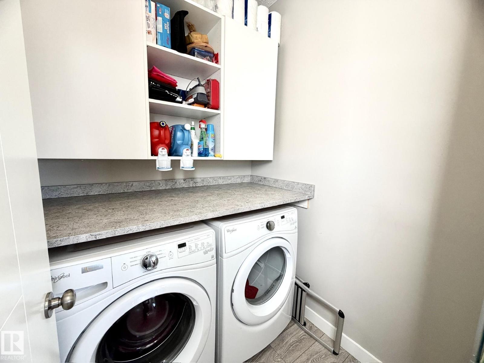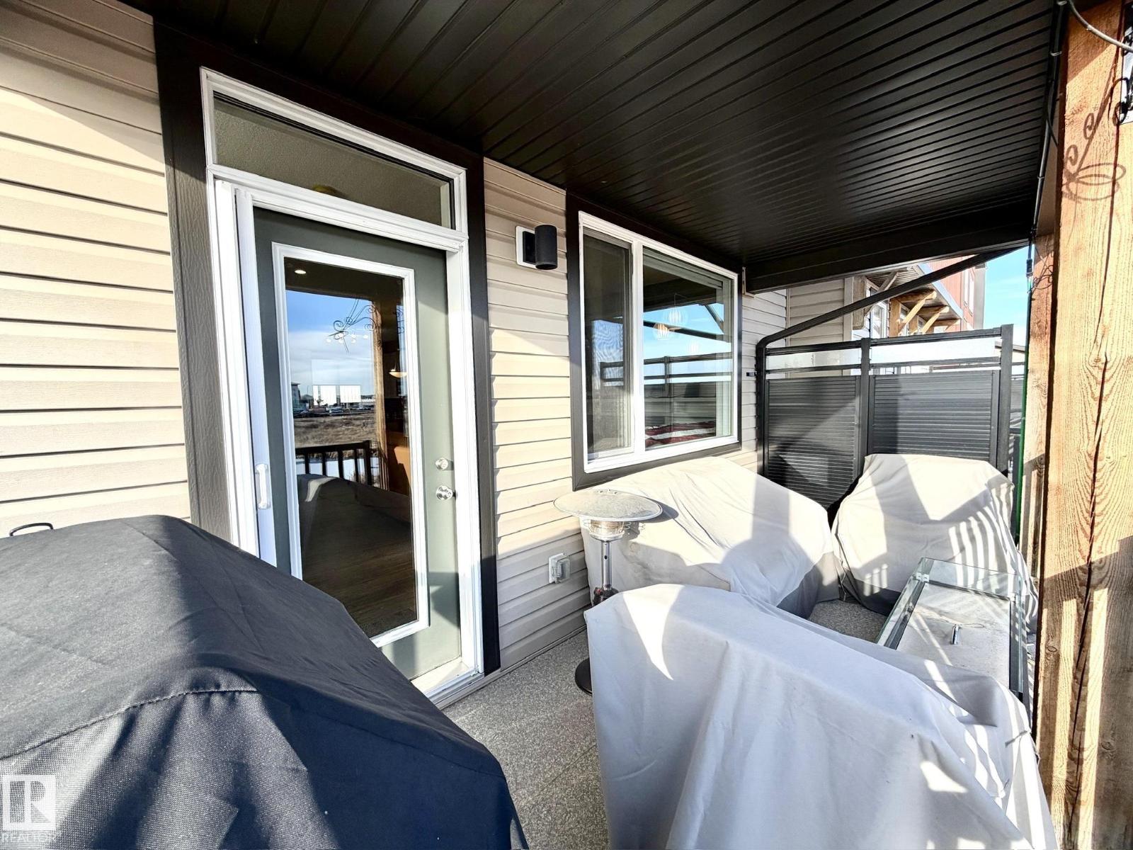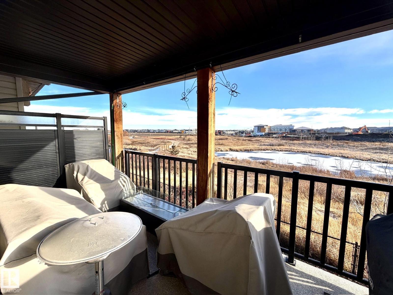 This stunning END UNIT, 3-storey townhome in Allentown offers modern style, thoughtful upgrades & an unbeatable location! Overlooking a tranquil wetland in vibrant Schonsee, this beautifully maintained home features a spacious kitchen with ample cabinetry, upgraded stainless steel appliances & a huge island that seamlessly connects the dining & living areas. Enjoy the cozy electric fireplace or step onto your private balcony—enhanced with a phantom screen—for morning coffee while watching the gorgeous sunrises or evening relaxation by the fire pit. The upper floor boasts TWO PRIMARY SUITES, each with its own ensuite & walk-in closet, plus a convenient desk nook. The updated laundry room offers smart built-in storage, and the bright above-grade flex space is perfect for a home office, gym, or play area. With a dbl attached HEATED garage, tons of natural light & quick access to shopping, parks, and the Anthony Henday, this exceptional end unit delivers comfort, convenience & incredible value. A must-see! (id:42720)
