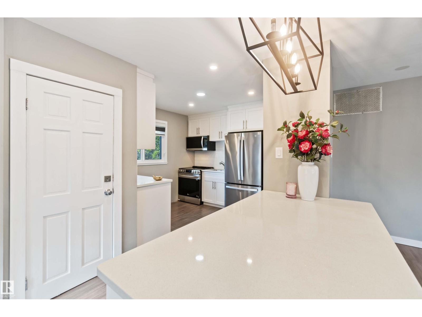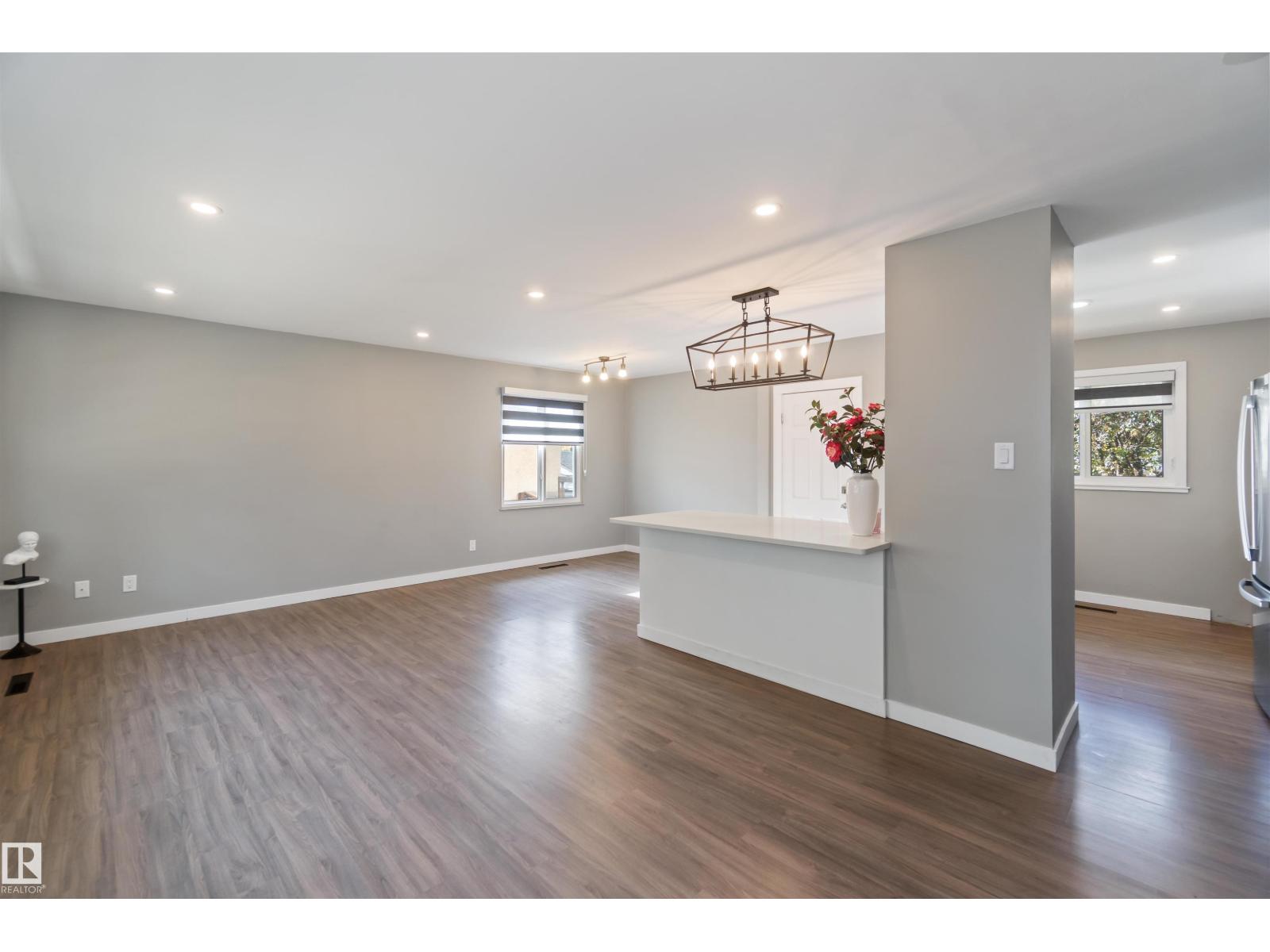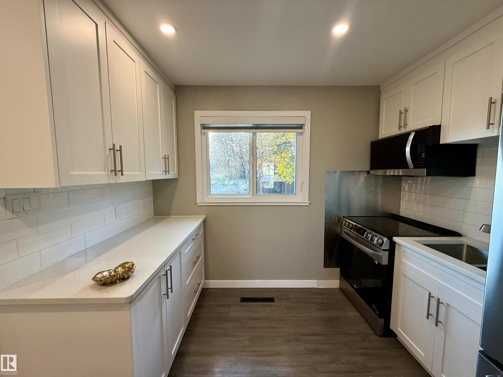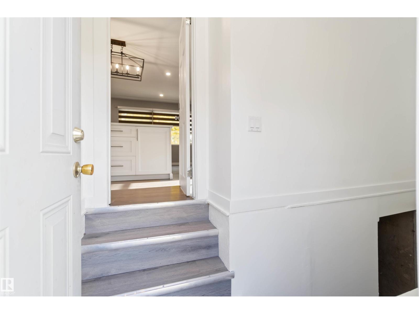ATTENTION FIRST TIME HOME BUYERS! MODERN 3-BEDROOM RENOVATED BUNGALOW! Located in the family-friendly neighborhood of Sherbrooke, this home is just steps from schools, Westmount Mall, Groat Road with access to the Southside, Yellowhead Trail, and St. Albert Trail. 50 X 130 Lot. Discover this renovated bungalow with its modern 3-bedroom layout on the main floor, updated 4-piece bathroom, main-floor laundry, upgraded lighting, & open-concept kitchen featuring a quartz island/breakfast nook. There is plenty of storage space w/ newer sleek white cabinets & SS appliances. The basement landing & stairway has been renovated w/ fresh paint & vinyl flooring. The basement is ready for your finishing touches w/ back door entry. Bonus upgrades include newer double-pane windows, newer roof shingles, 120-amp electrical panel, blinds, & garage opener. Entertain in the large fenced backyard & park your vehicle in the single garage w/ new shingles 2025. Welcome Home. (id:42720)