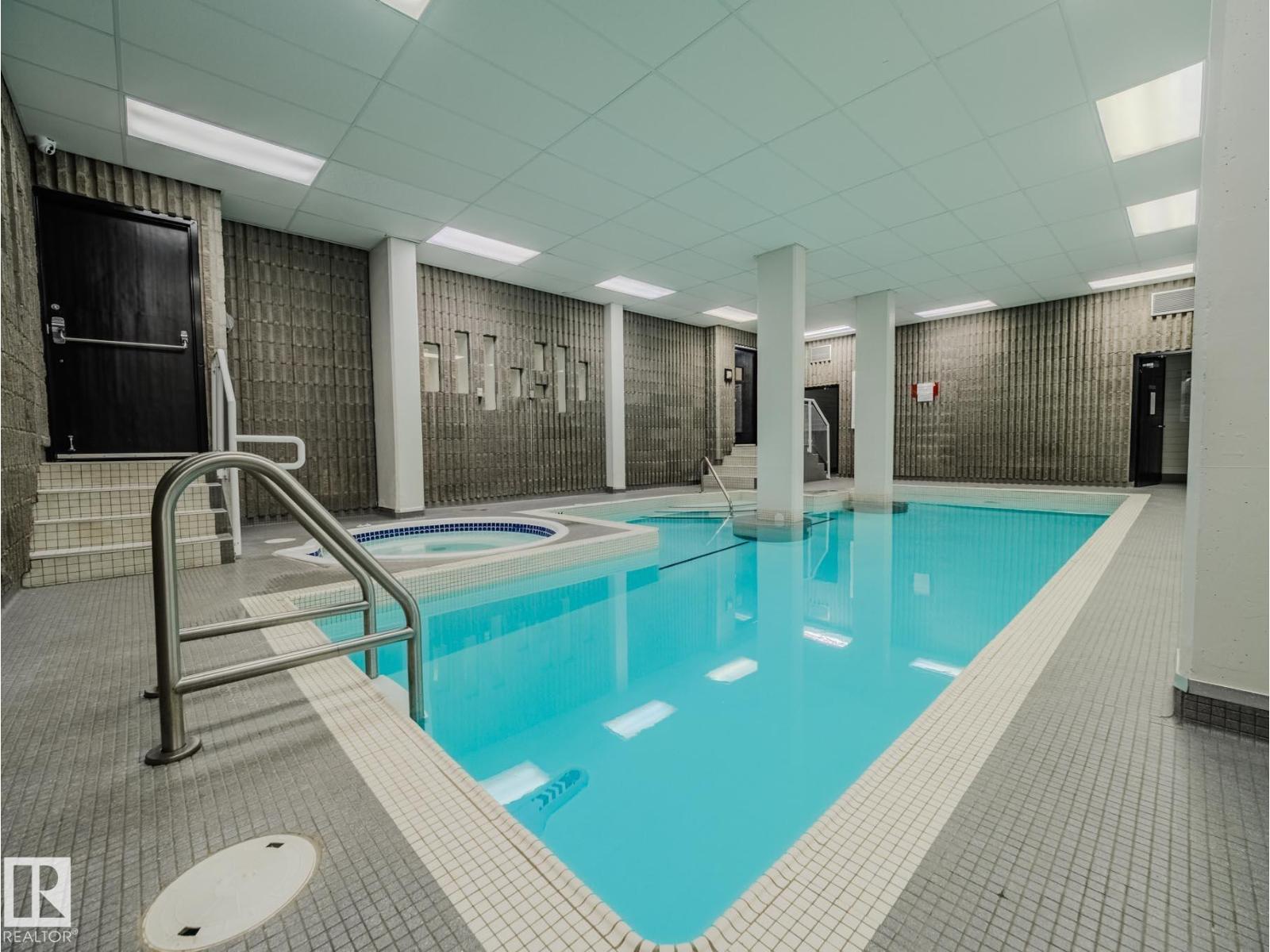 Prestigious Hyde Park where you will experience urban luxury in this remarkably large 1,350 square foot corner unit, nestled in Edmonton’s vibrant Wîhkwêntôwin neighborhood. This unit has been updated with flat-finished ceilings & walls. The residence offers a white-tiled kitchen with tile flooring, pantry & ample cabinetry. The expansive living room has parquet flooring with incredible views of downtown Edmonton. Floor-to-ceiling SW-facing windows flood the space with natural light & lead to a sprawling 34-foot private balcony. The layout features a spacious primary bedroom with a walk-in closet and ensuite, plus two additional bedrooms perfect for guests or home office. The front entry has three closets; two for storage & one for laundry. A stunning glass block wall & leather bench are unique features. Residents enjoy resort-style living with access to both indoor and outdoor pools, a sauna, fitness centre, tennis courts & garden areas. Includes titled underground heated parking. Immediate possession. (id:42720)