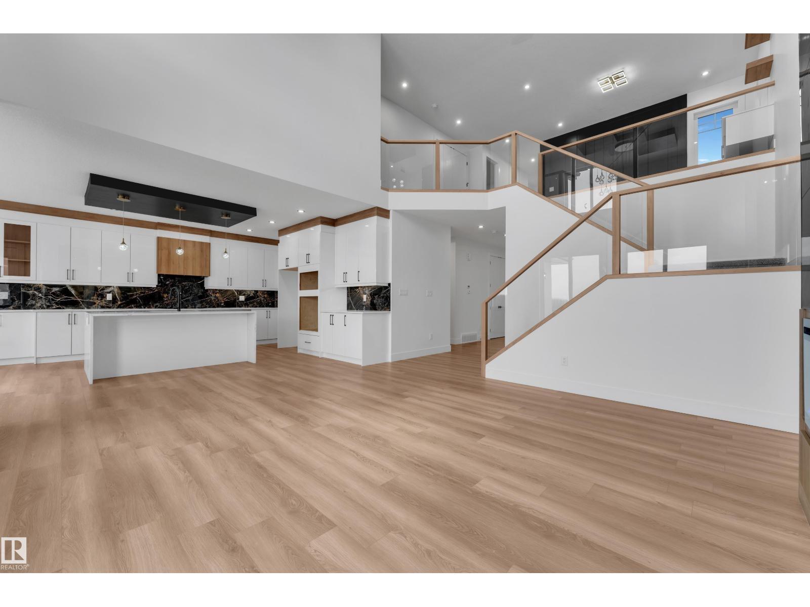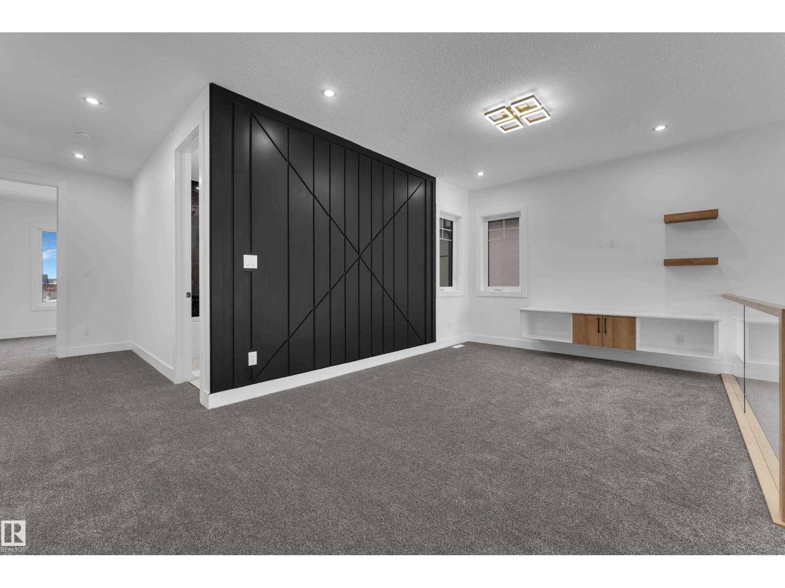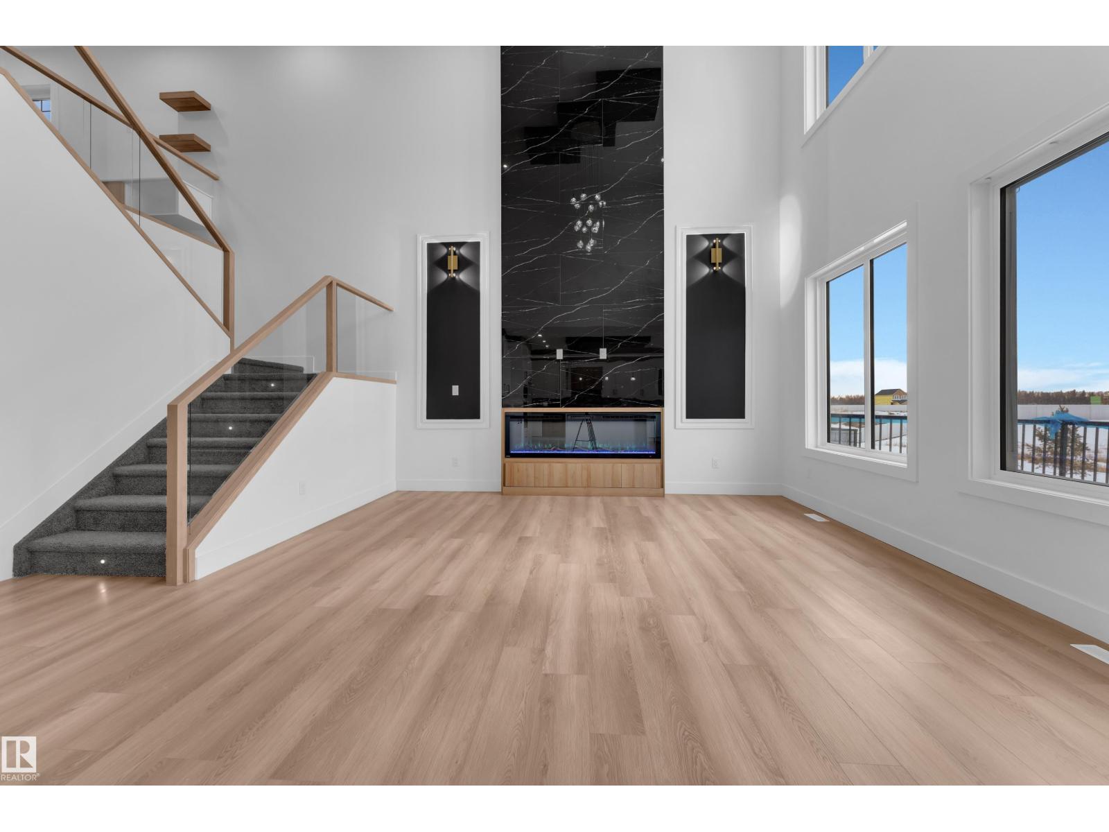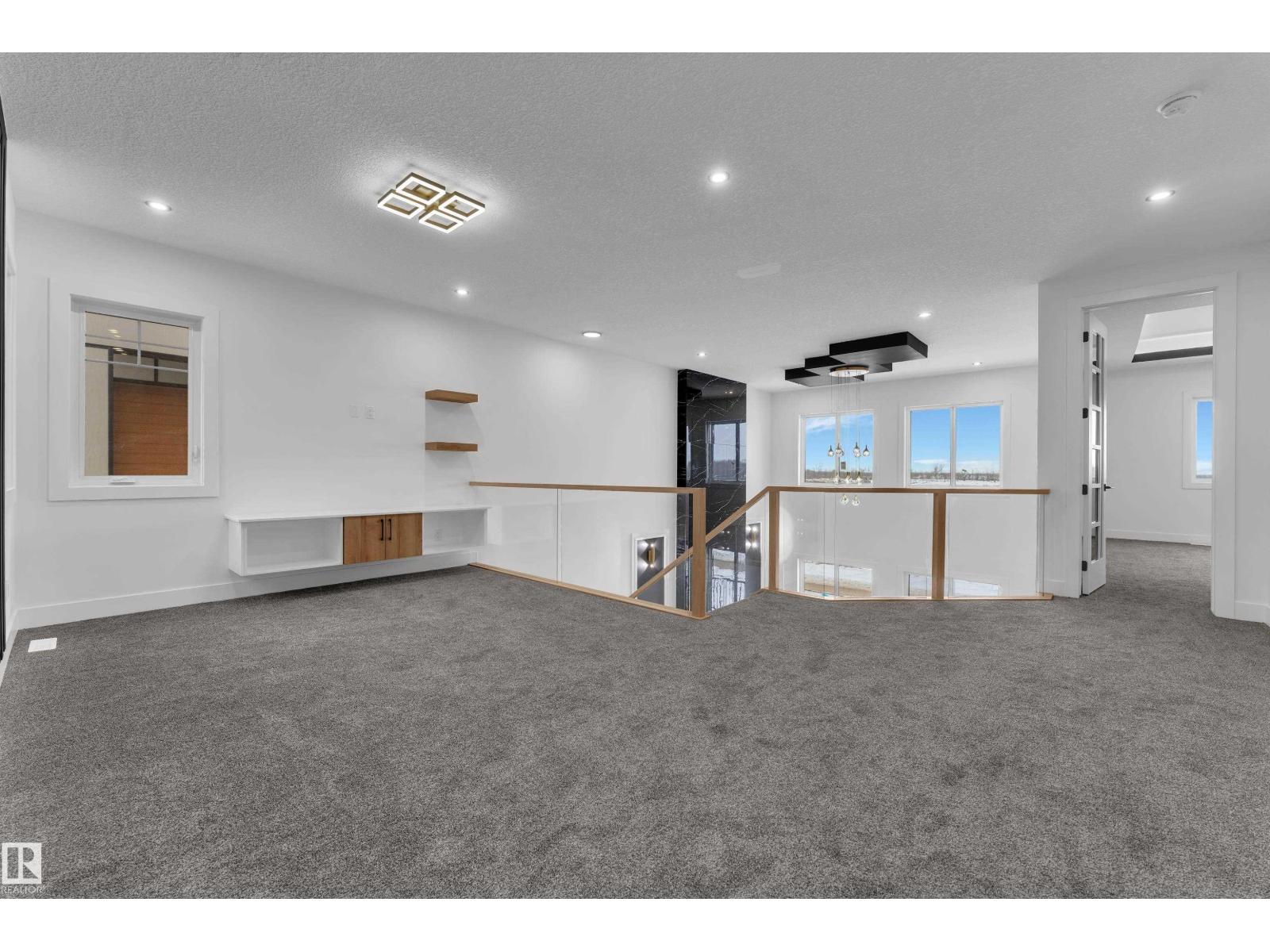 WALKOUT HOME || BACKING TO TRAIL || TRIPLE TANDEM CAR GARAGE || BEAUTIFUL VIEWS OF PARK IN FRONT || This beautifully styled home offers a main floor den with a full bathroom, perfect for guests or a home office. The chef’s kitchen features high-end quartz countertops, a stunning two-sided waterfall island, a pantry with MDF shelving, and an extended kitchen layout flowing into the dining area. The open-to-above living room showcases a tiled feature wall, an electric fireplace, and oversized windows that flood the space with natural light.Elegant glass railings lead to the upper level, where you’ll find a bonus room with a feature wall. Primary bedroom with feature wall, indent ceiling , 5-piece ensuite, and a walk-in closet with built-in shelving. 3 additional bright and spacious bedrooms with full bathroom. Laundry on upper level. The unfinished WALKOUT basement offers endless potential to design your ideal custom living space. (id:42720)