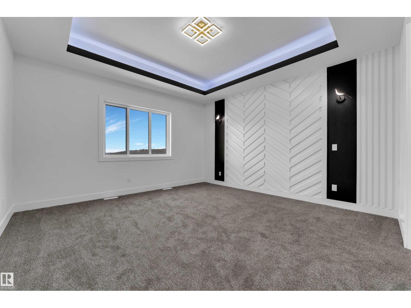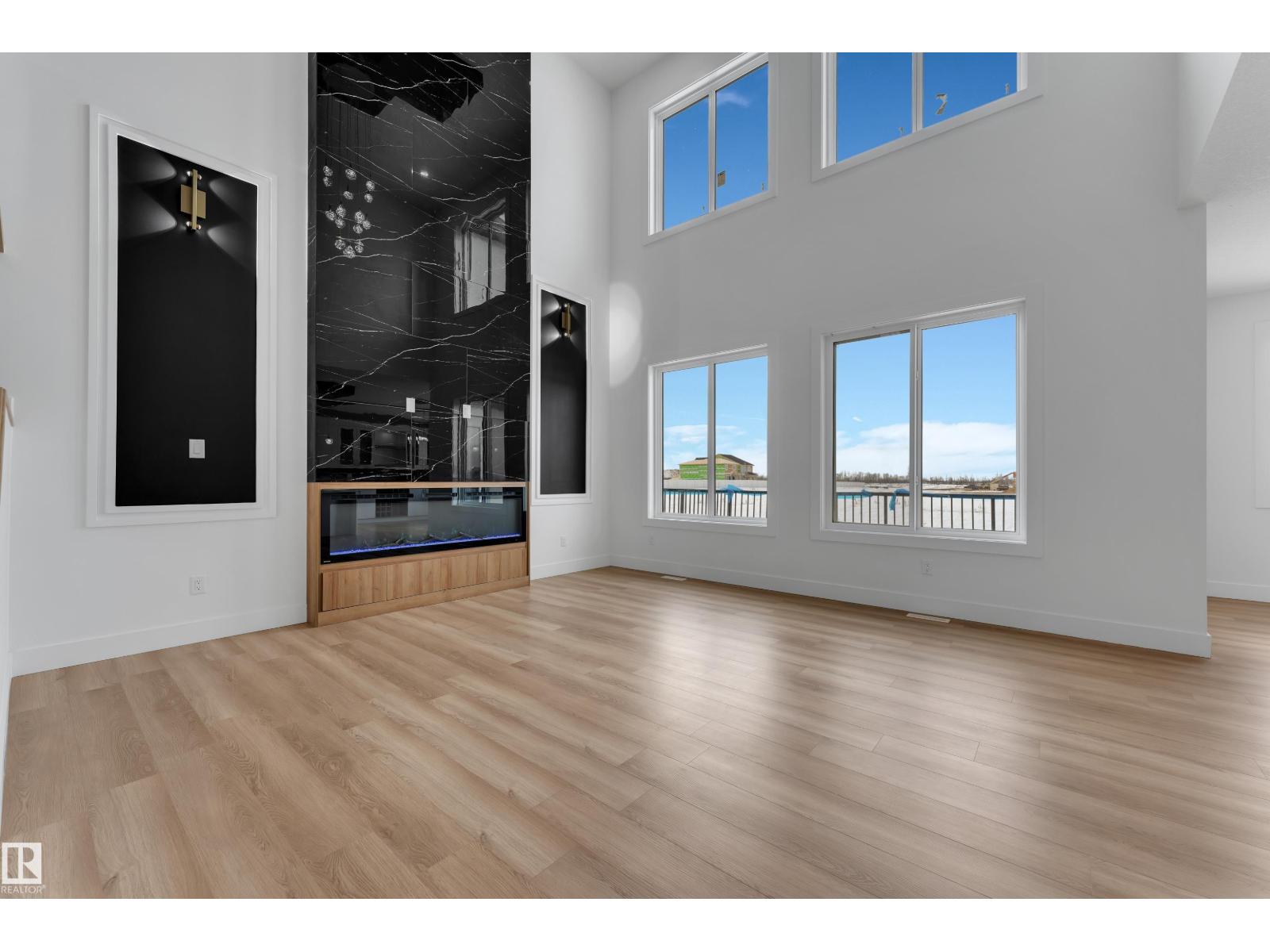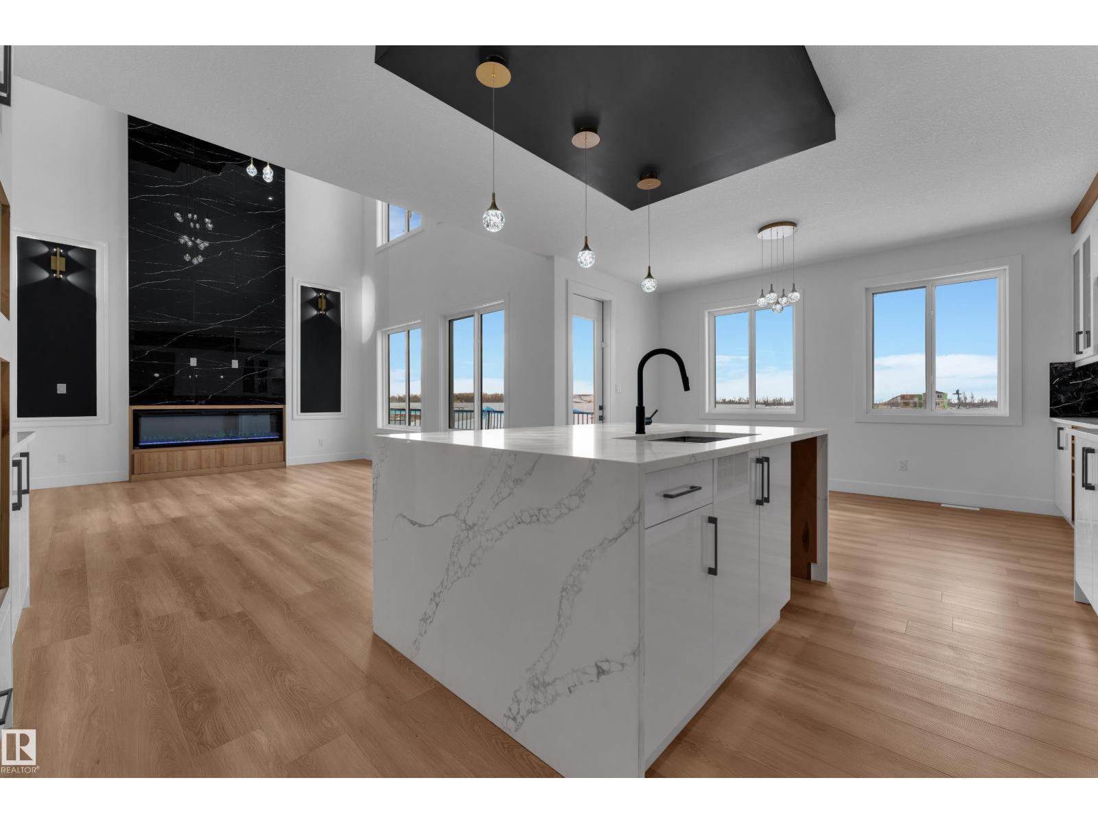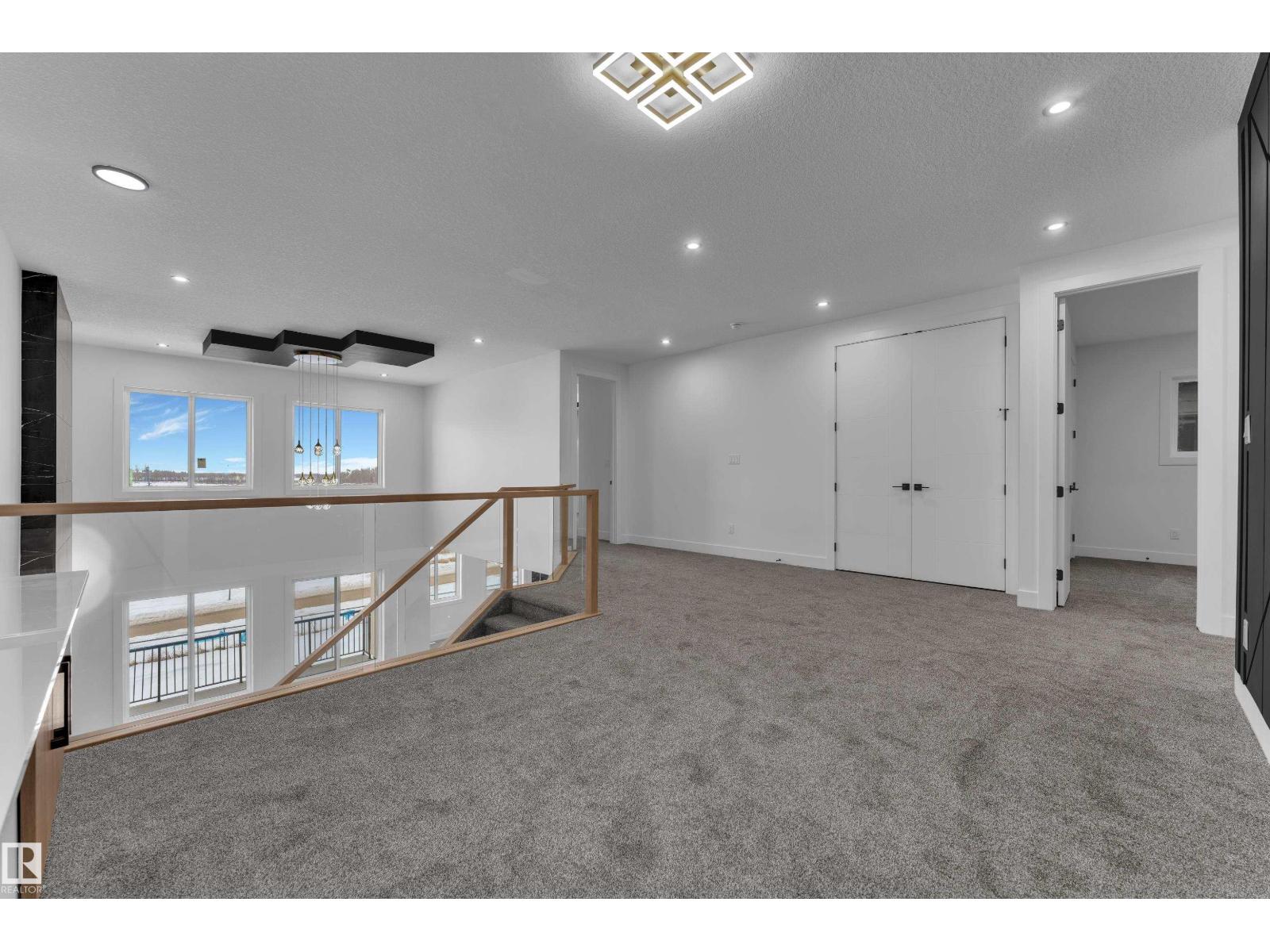 WALKOUT HOME || BACKING TO TRAIL || TRIPLE TANDEM CAR GARAGE || BEAUTIFUL VIEWS OF PARK IN FRONT || This beautifully styled home offers a main floor den with a full bathroom, perfect for guests or a home office. The chef’s kitchen features high-end quartz countertops, a stunning two-sided waterfall island, a pantry with MDF shelving, and an extended kitchen layout flowing into the dining area. The open-to-above living room showcases a tiled feature wall, an electric fireplace, and oversized windows that flood the space with natural light.Elegant glass railings lead to the upper level, where you’ll find a bonus room with a feature wall. Primary bedroom with feature wall, indent ceiling , 5-piece ensuite, and a walk-in closet with built-in shelving. 3 additional bright and spacious bedrooms with full bathroom. Laundry on upper level. The unfinished WALKOUT basement offers endless potential to design your ideal custom living space. (id:42720)