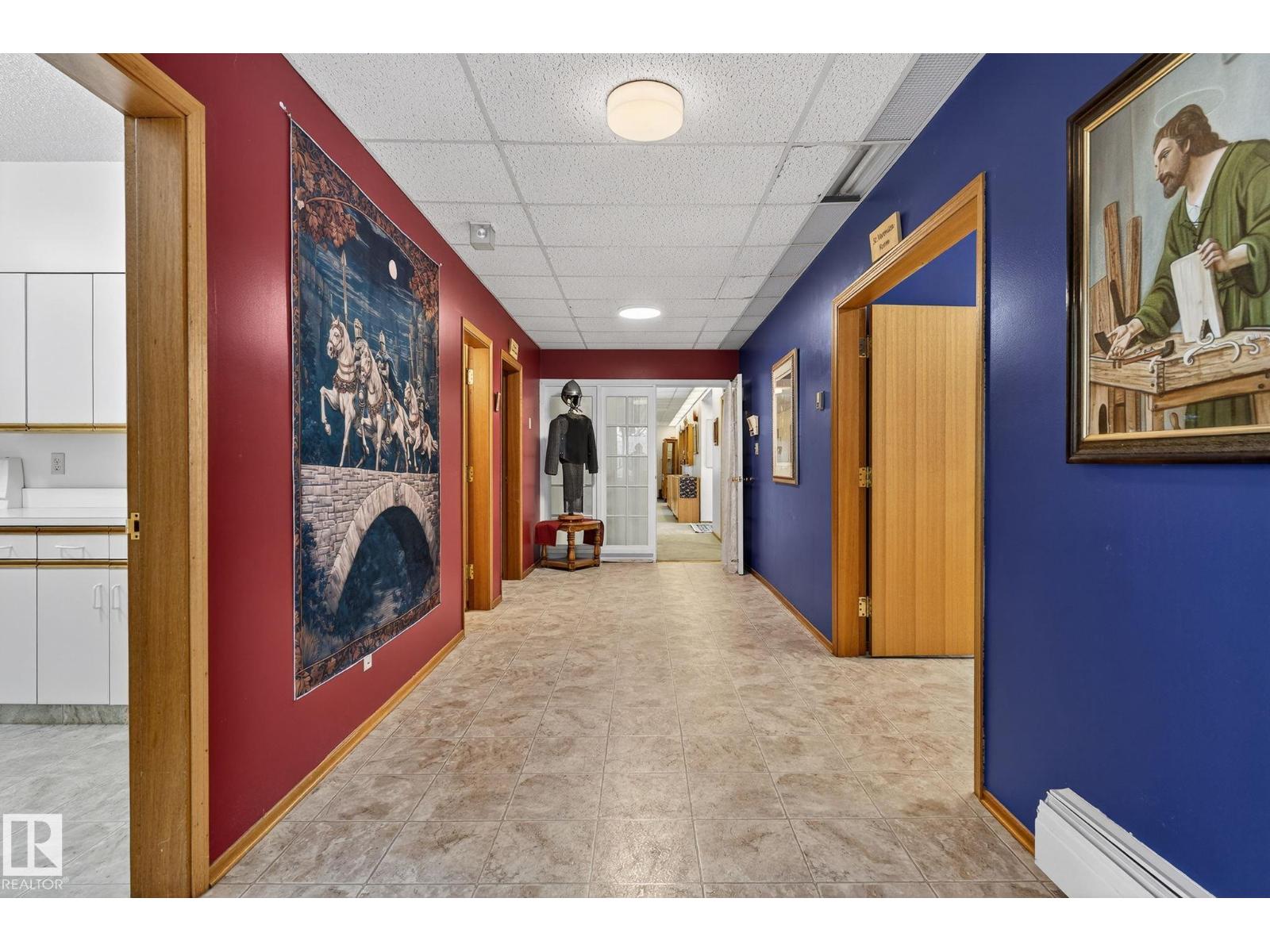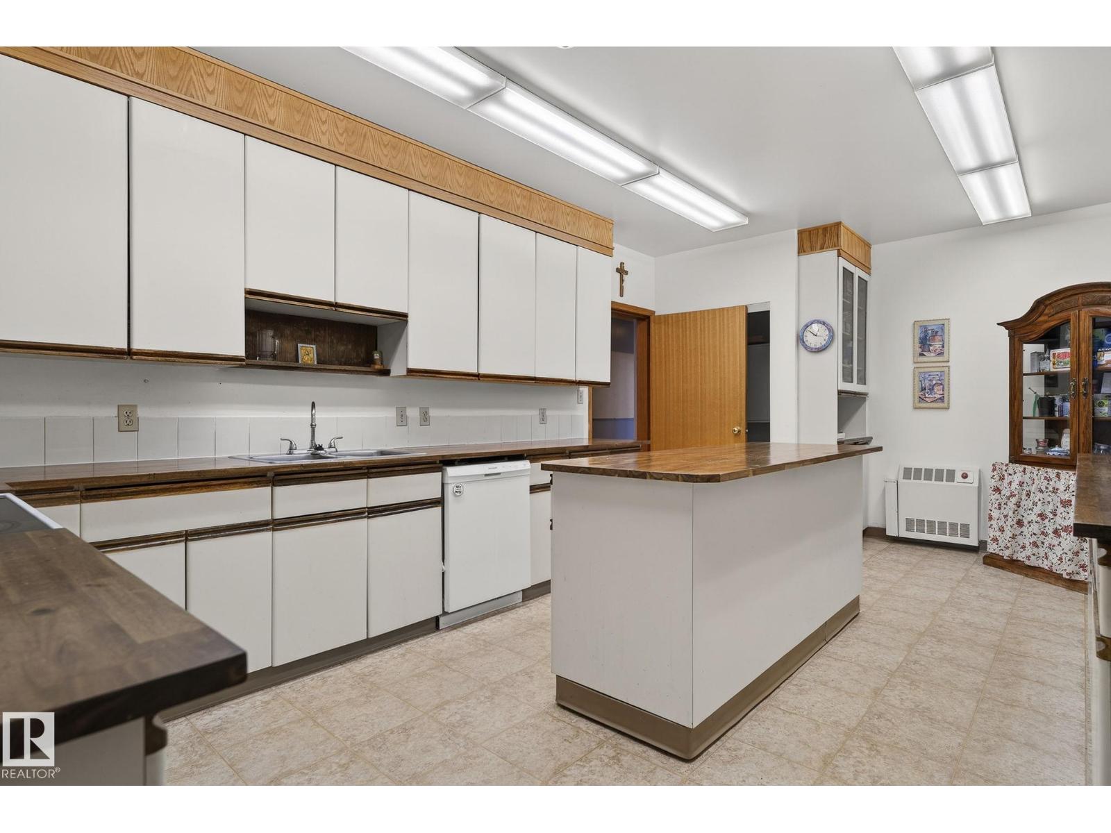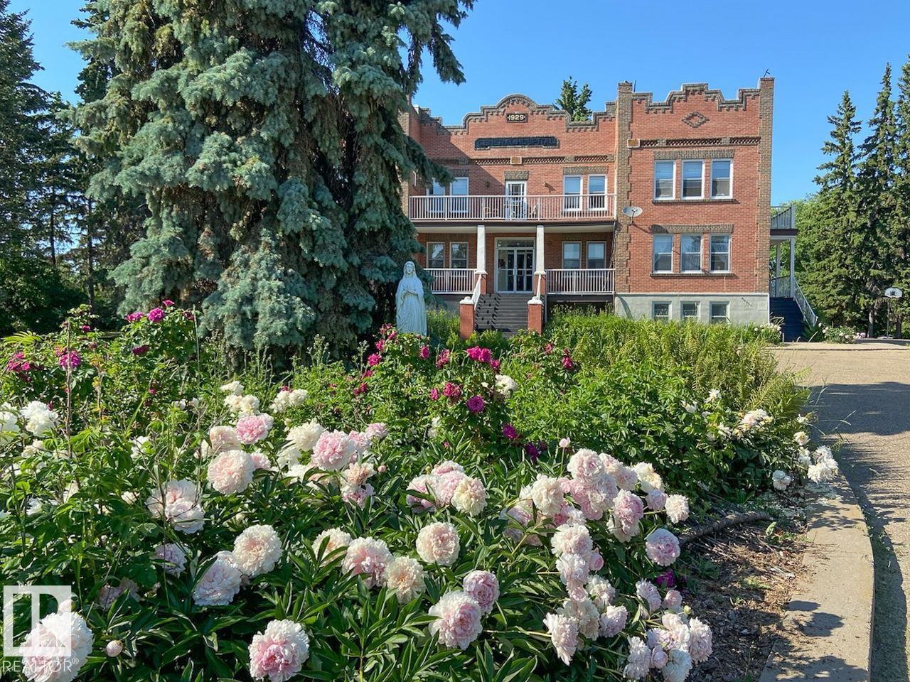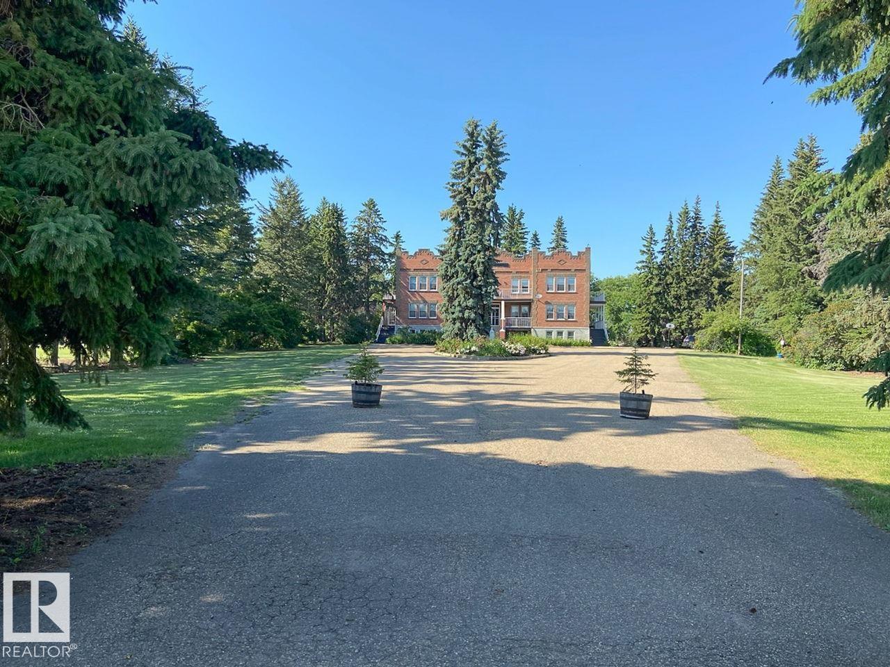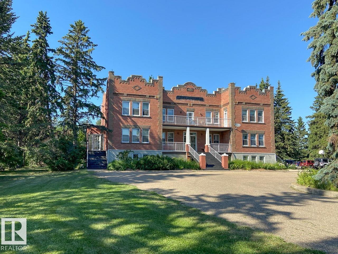One-of-a-kind 1929 character property in Mundare blending stunning original exterior architecture with thoughtful 1980s interior updates and meticulous care by the current owners since 2015. Set on 3.24 acres, this expansive residence offers 12+ bedrooms—most with private-bathroom access—two kitchens, a large dining room, library, enormous living area and abundant ADAPTABLE spaces. Connected to municipal water and sewer, it’s ideally suited for large families, events, multi-generational living or creative redevelopment! Additional highlights include a bright sunroom, an attached bungalow long used as a chapel that provides private space and flexibility, and what is likely Alberta’s oldest working ELEVATOR! Previously operated as a health care facility and a rooming home, the County has been very receptive to various uses in the past. If you need room to comfortably house many people, this rare property presents extraordinary POTENTIAL—don’t miss it! (id:42720)