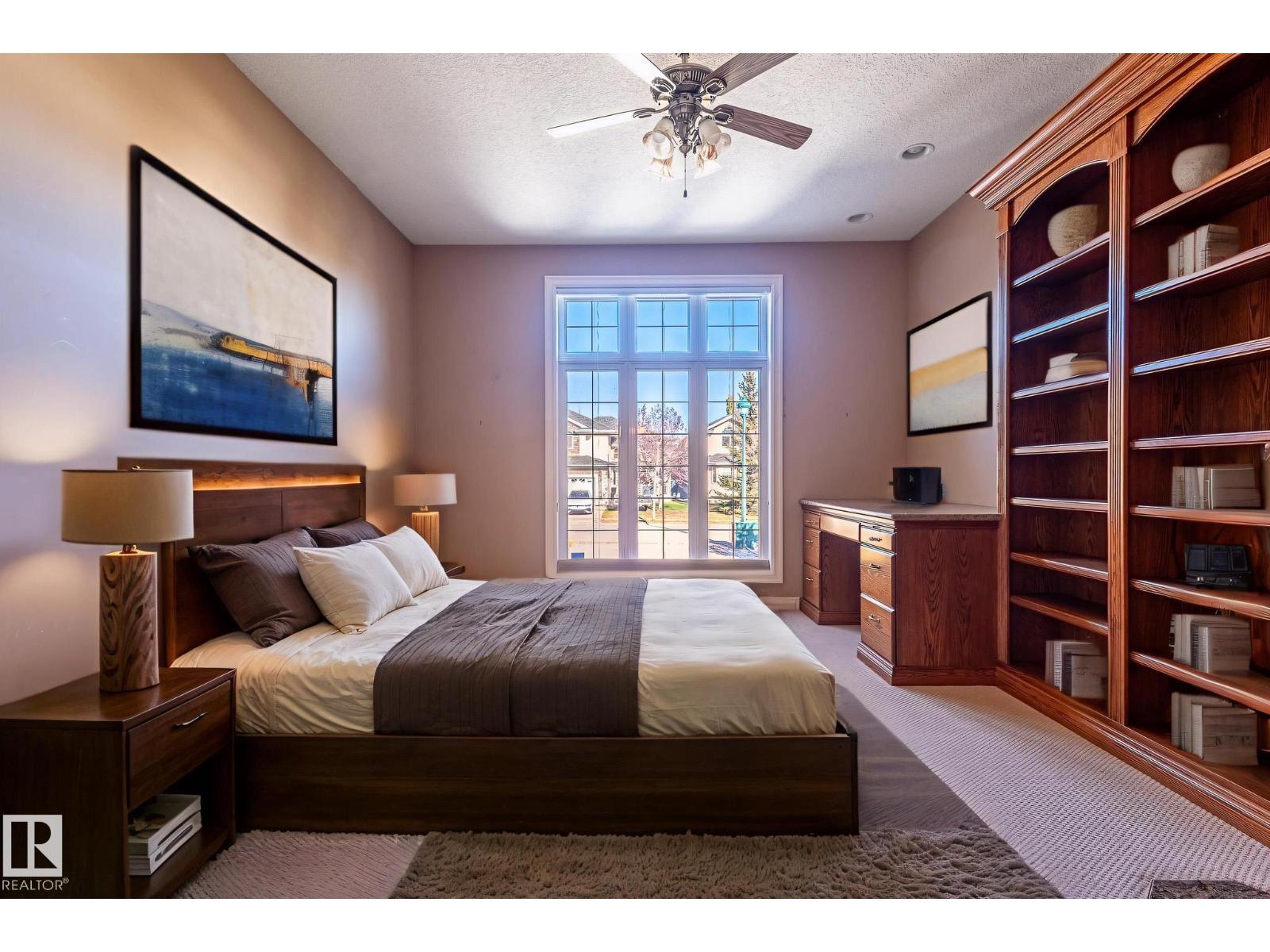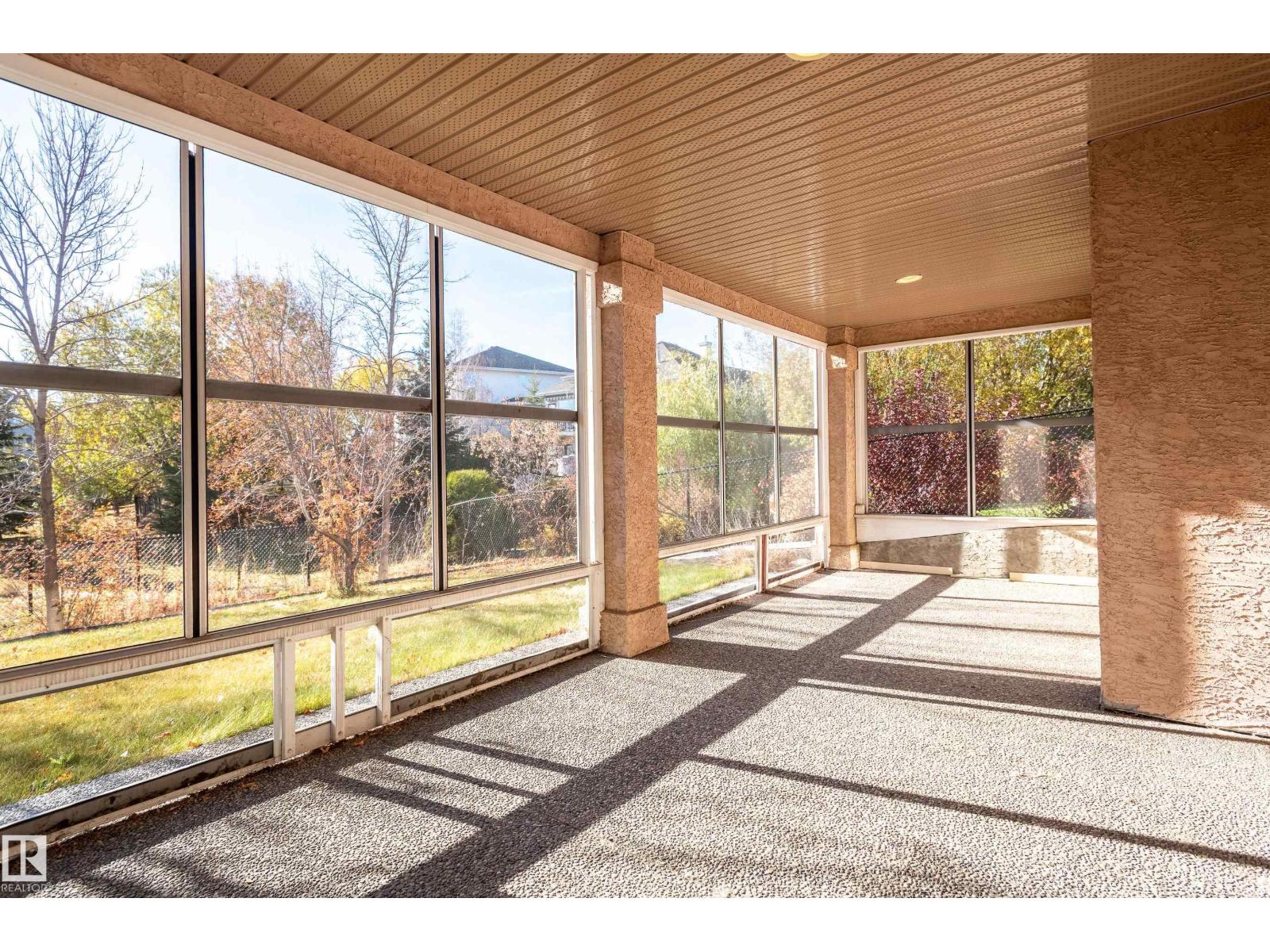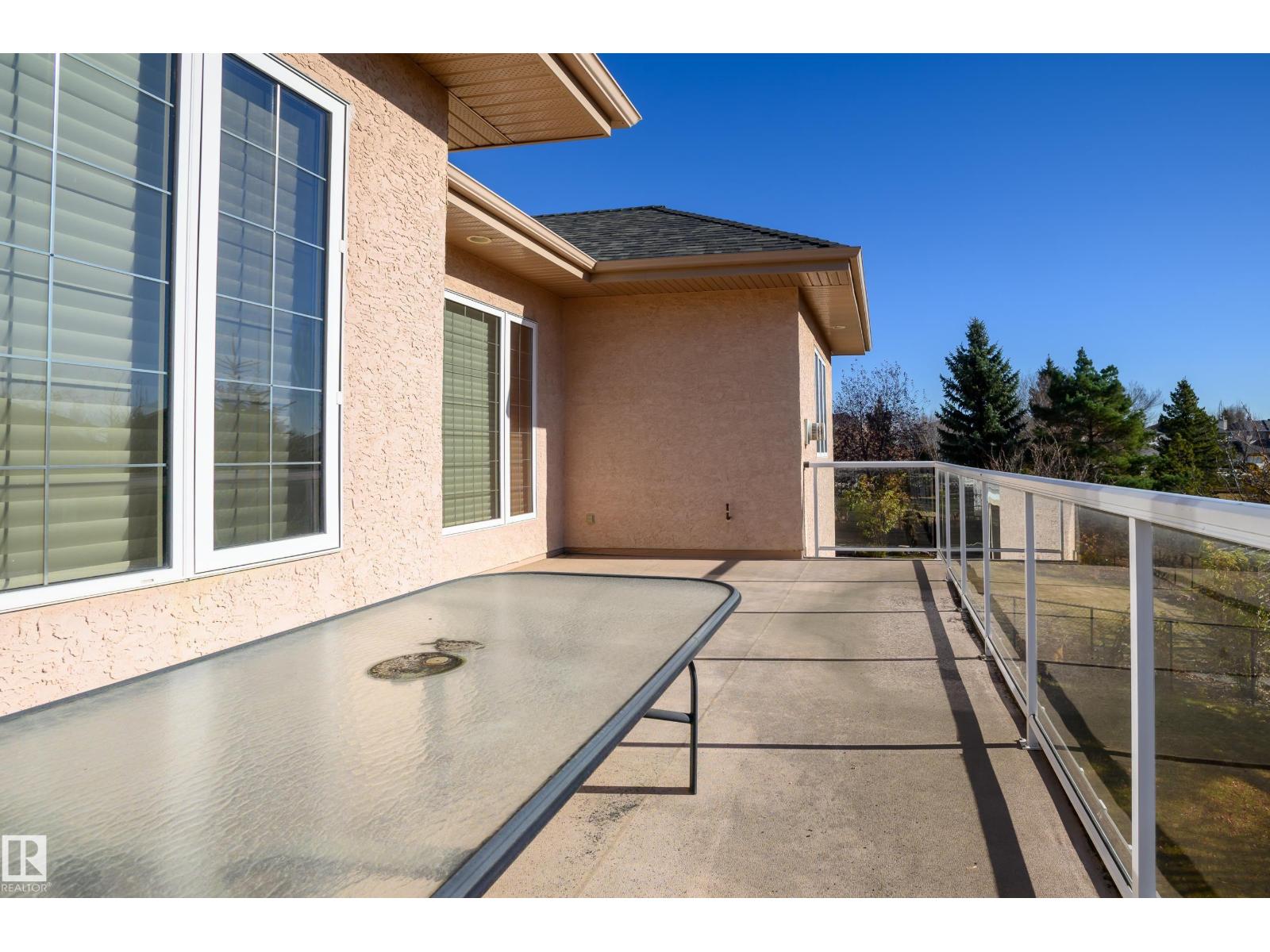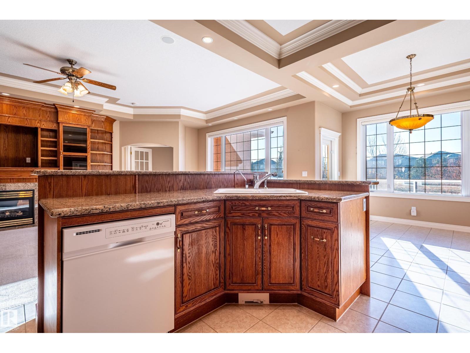 Walk-out bungalow backing onto a dry pond! Custom-built by Darren Homes with quality craftsmanship throughout. Main floor offers two primary suites, each with its own ensuite and walk-in closet. Granite kitchen counters, four fireplaces, and a garden door to a large raised deck with sunny southern exposure. Walk-out basement includes a spacious rec room, two additional bedrooms, and an enclosed atrium. Triple attached garage (approx. 844 sq. ft.) provides ample parking and storage. Located on a quiet crescent next to Haddow Park and the community centre with quick access to major routes. Some of the photos virtually staged with furniture. (id:42720)