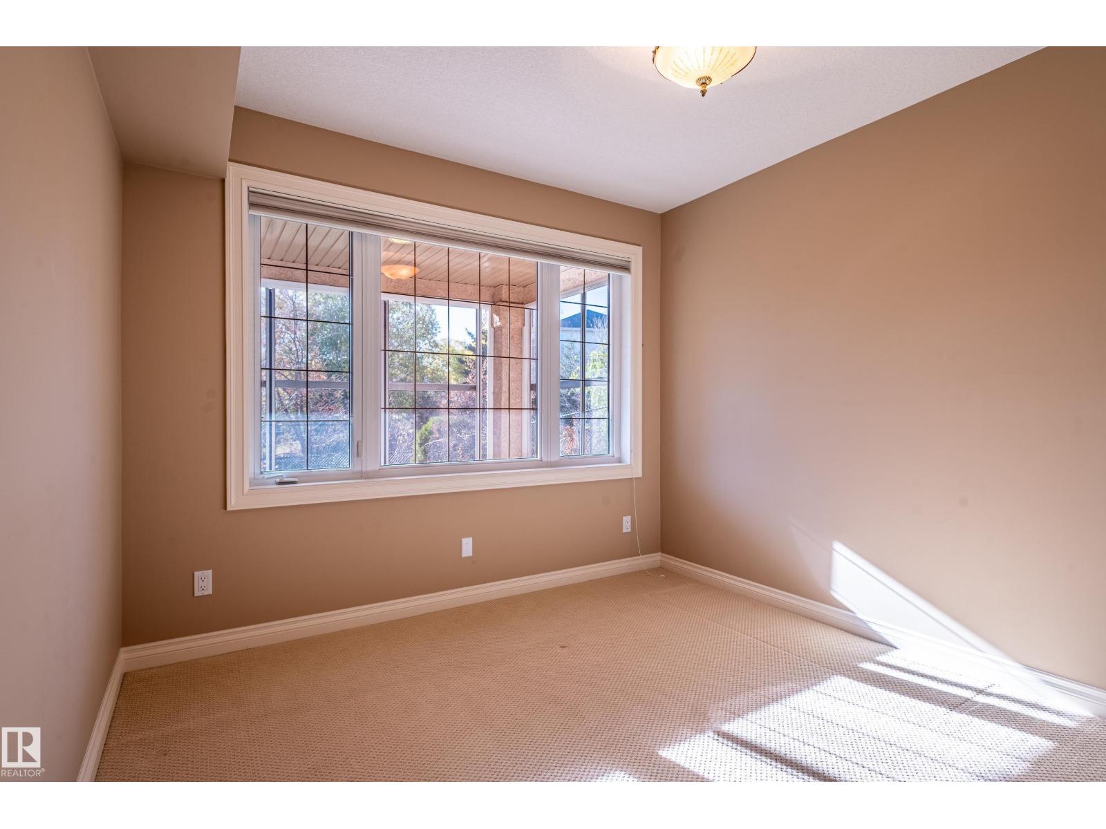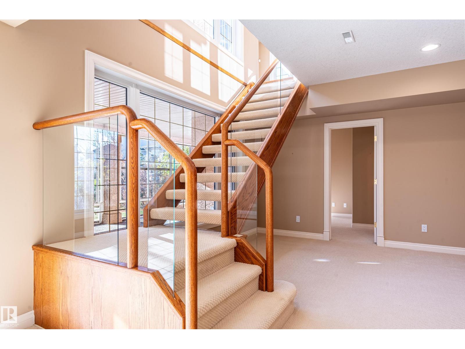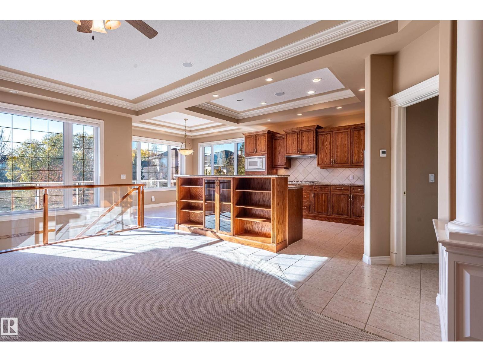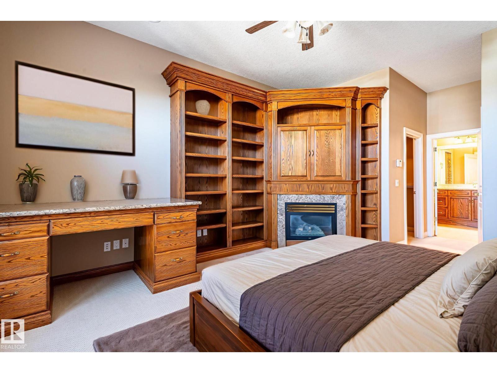 Walk-out bungalow backing onto a dry pond! Custom-built by Darren Homes with quality craftsmanship throughout. Main floor offers two primary suites, each with its own ensuite and walk-in closet. Granite kitchen counters, four fireplaces, and a garden door to a large raised deck with sunny southern exposure. Walk-out basement includes a spacious rec room, two additional bedrooms, and an enclosed atrium. Triple attached garage (approx. 844 sq. ft.) provides ample parking and storage. Located on a quiet crescent next to Haddow Park and the community centre with quick access to major routes. Some of the photos virtually staged with furniture. (id:42720)