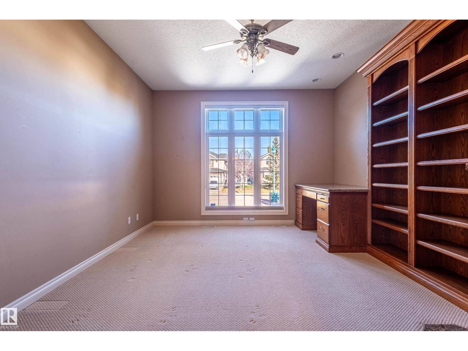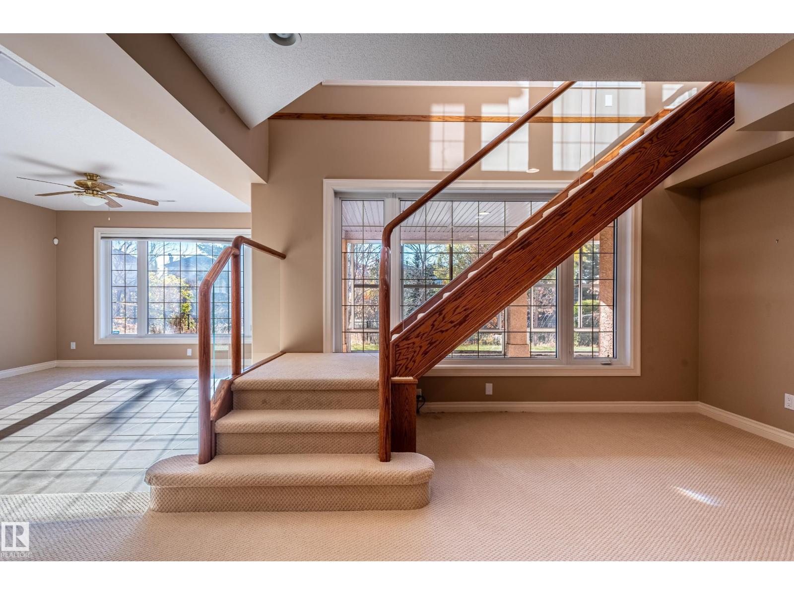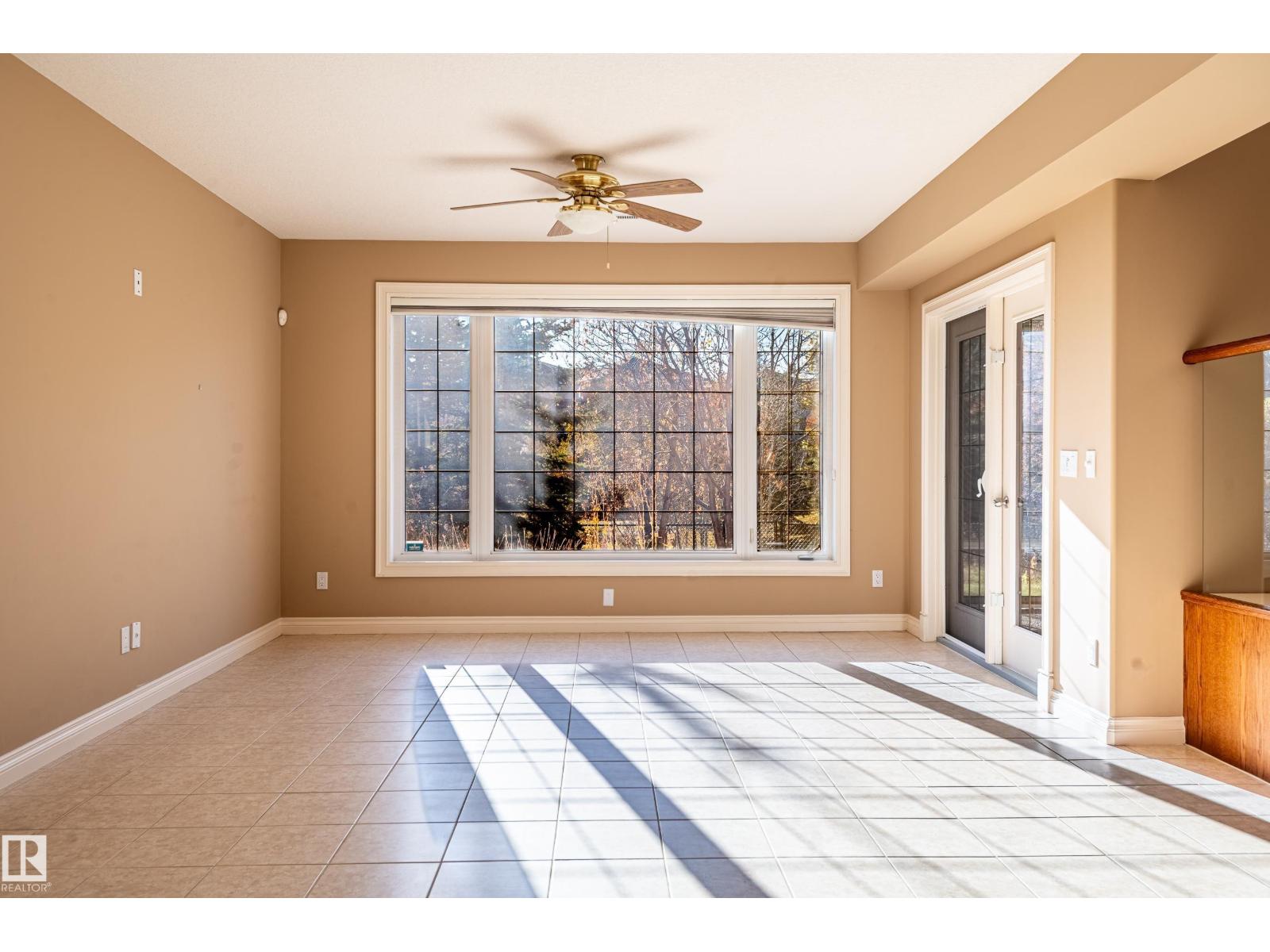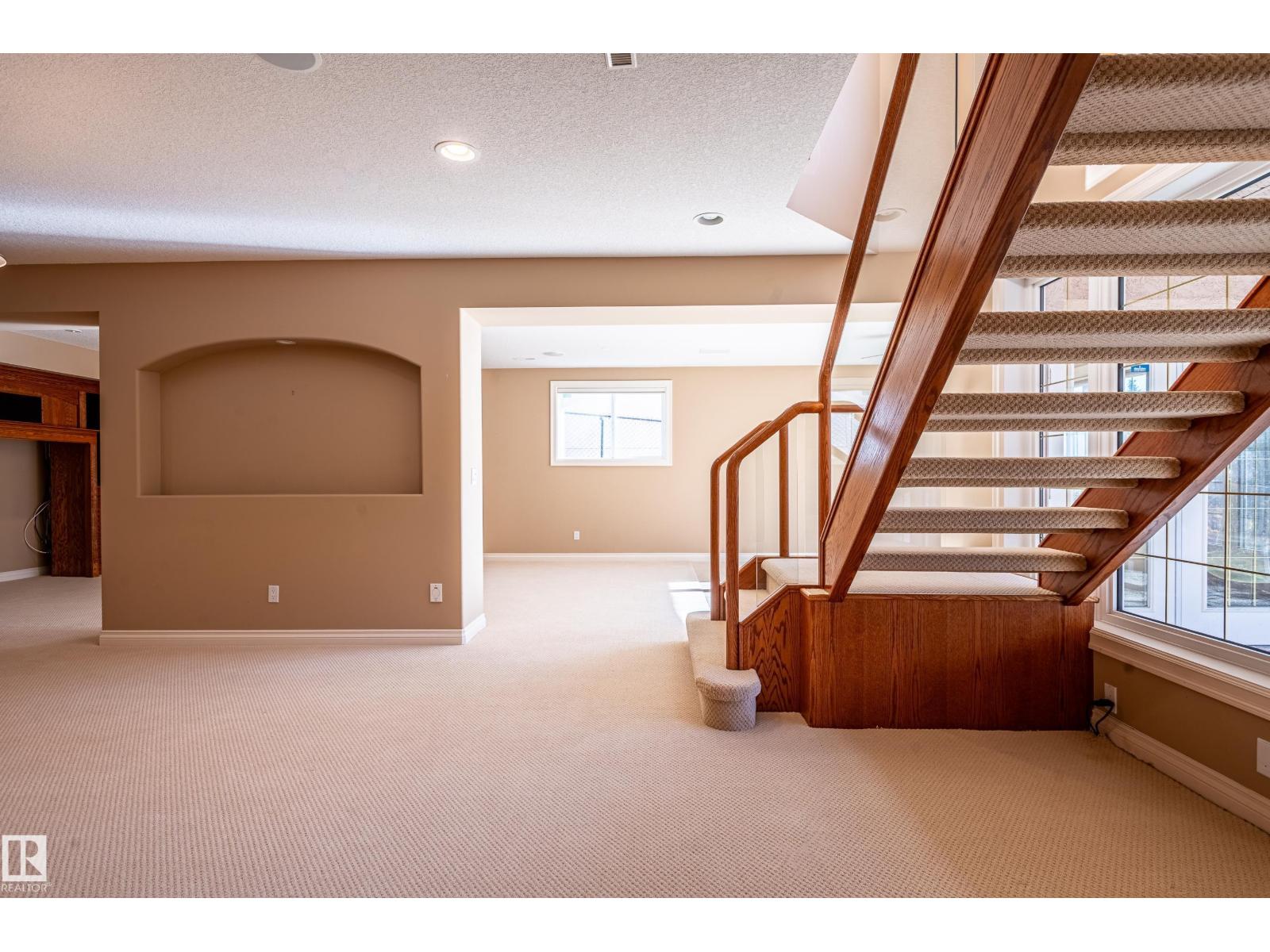 Walk-out bungalow backing onto a dry pond! Custom-built by Darren Homes with quality craftsmanship throughout. Main floor offers two primary suites, each with its own ensuite and walk-in closet. Granite kitchen counters, four fireplaces, and a garden door to a large raised deck with sunny southern exposure. Walk-out basement includes a spacious rec room, two additional bedrooms, and an enclosed atrium. Triple attached garage (approx. 844 sq. ft.) provides ample parking and storage. Located on a quiet crescent next to Haddow Park and the community centre with quick access to major routes. Some of the photos virtually staged with furniture. (id:42720)