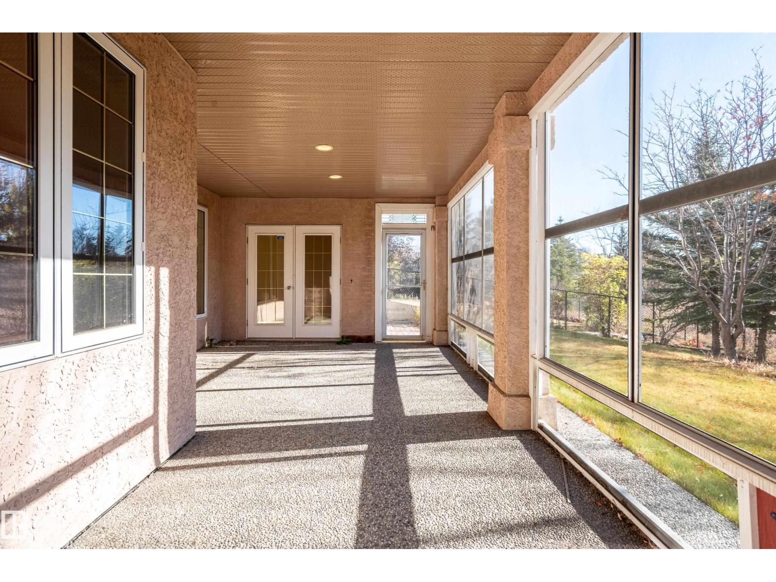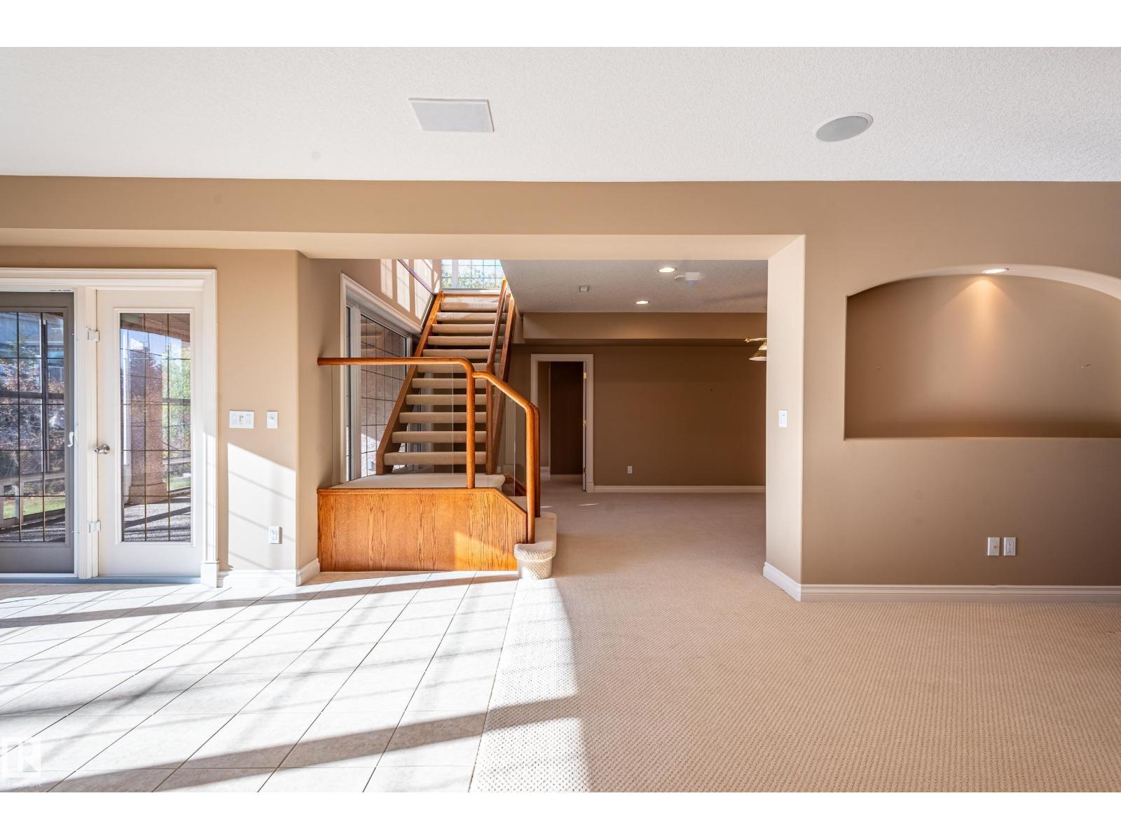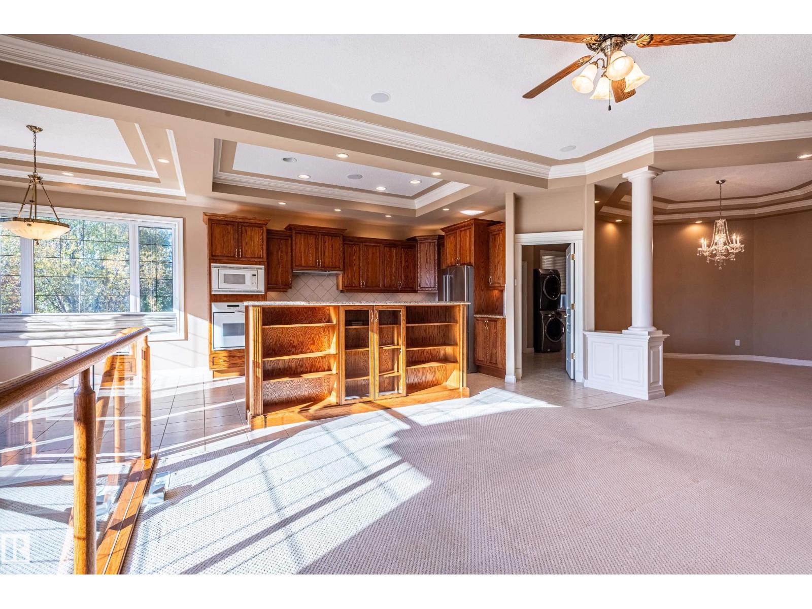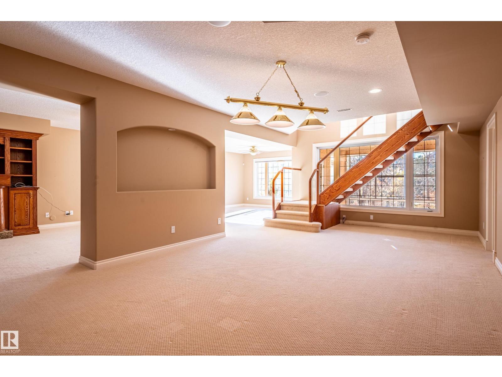 Walk-out bungalow backing onto a dry pond! Custom-built by Darren Homes with quality craftsmanship throughout. Main floor offers two primary suites, each with its own ensuite and walk-in closet. Granite kitchen counters, four fireplaces, and a garden door to a large raised deck with sunny southern exposure. Walk-out basement includes a spacious rec room, two additional bedrooms, and an enclosed atrium. Triple attached garage (approx. 844 sq. ft.) provides ample parking and storage. Located on a quiet crescent next to Haddow Park and the community centre with quick access to major routes. Some of the photos virtually staged with furniture. (id:42720)