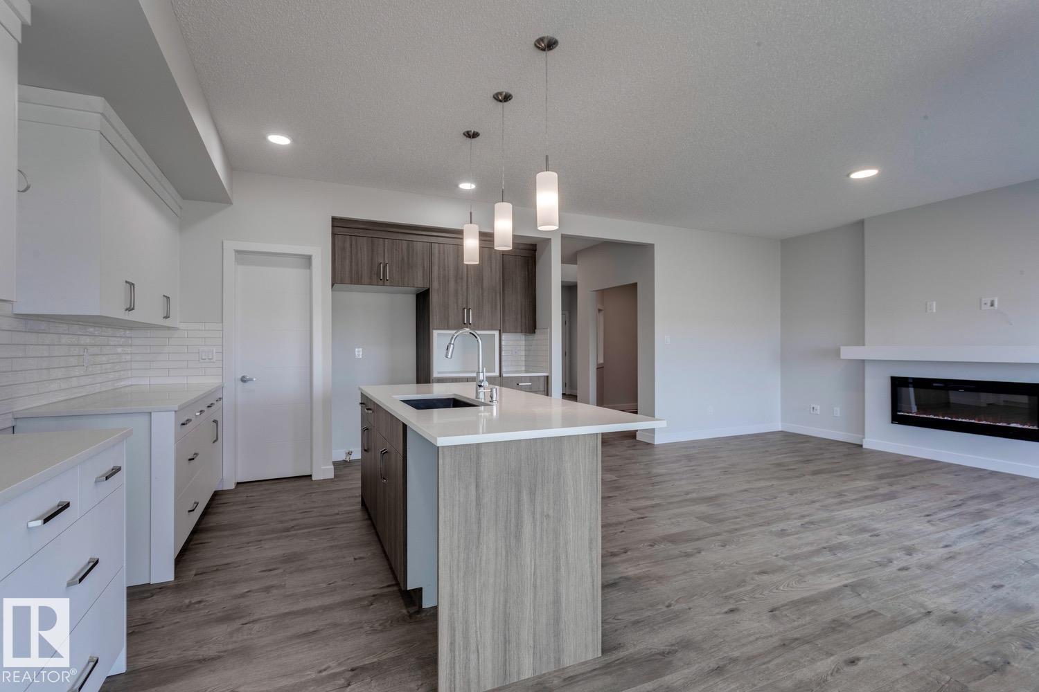 Welcome to the Apparition by Look Master Builder! This stunning 3-bedroom, 2.5-bath two-story home sits on a large pie-shaped lot in a quiet cul-de-sac in Rivers Edge. Features an open-to-above foyer, main floor den, stylish kitchen with island and walk-through pantry, and a cozy great room with electric fireplace. Upstairs offers a bonus room and a luxurious primary suite with raised sitting area, vaulted ceiling, double sinks, tiled shower, and freestanding soaker tub. Added upgrades include 9’ foundation walls, 2 basement windows, railing with metal spindles, window coverings, 200 AMP electrical panel, and an extended garage. Modern design and thoughtful details throughout! Quick possession available! (id:42720)