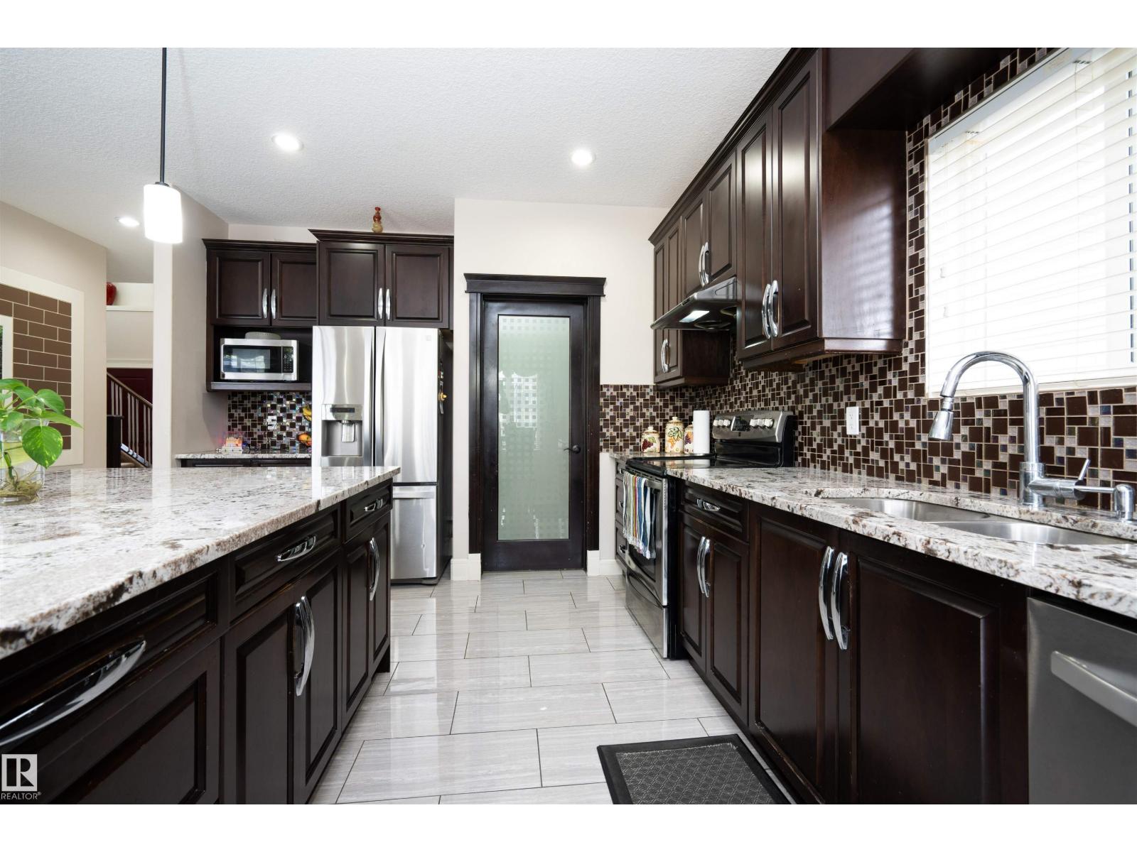 Welcome to this stunning 7-bedroom, 3.5-bath home in Summerside, offering over 2,500 sq ft of living space. Perfect for growing or multi-generational families, it features a main floor bedroom, a bonus room upstairs, no back neighbours, and a low-maintenance half-concrete backyard. Pride of ownership shows—this is a first-owner home, well cared for and move-in ready. Recent updates include a furnace cleaning and a new hot water boiler tank (6 months old). This home also offers a separate side entrance to the basement, complete with 2 additional bedrooms and a second kitchen, providing excellent flexibility for extended family. Enjoy built-in speakers throughout, exterior lighting, and a side door to the garage for added convenience. There’s also ample road parking for guests. Ideally located just steps from Summerside Lake, schools, shopping, and amenities — this is a rare opportunity in one of Edmonton’s most sought-after communities! (id:42720)