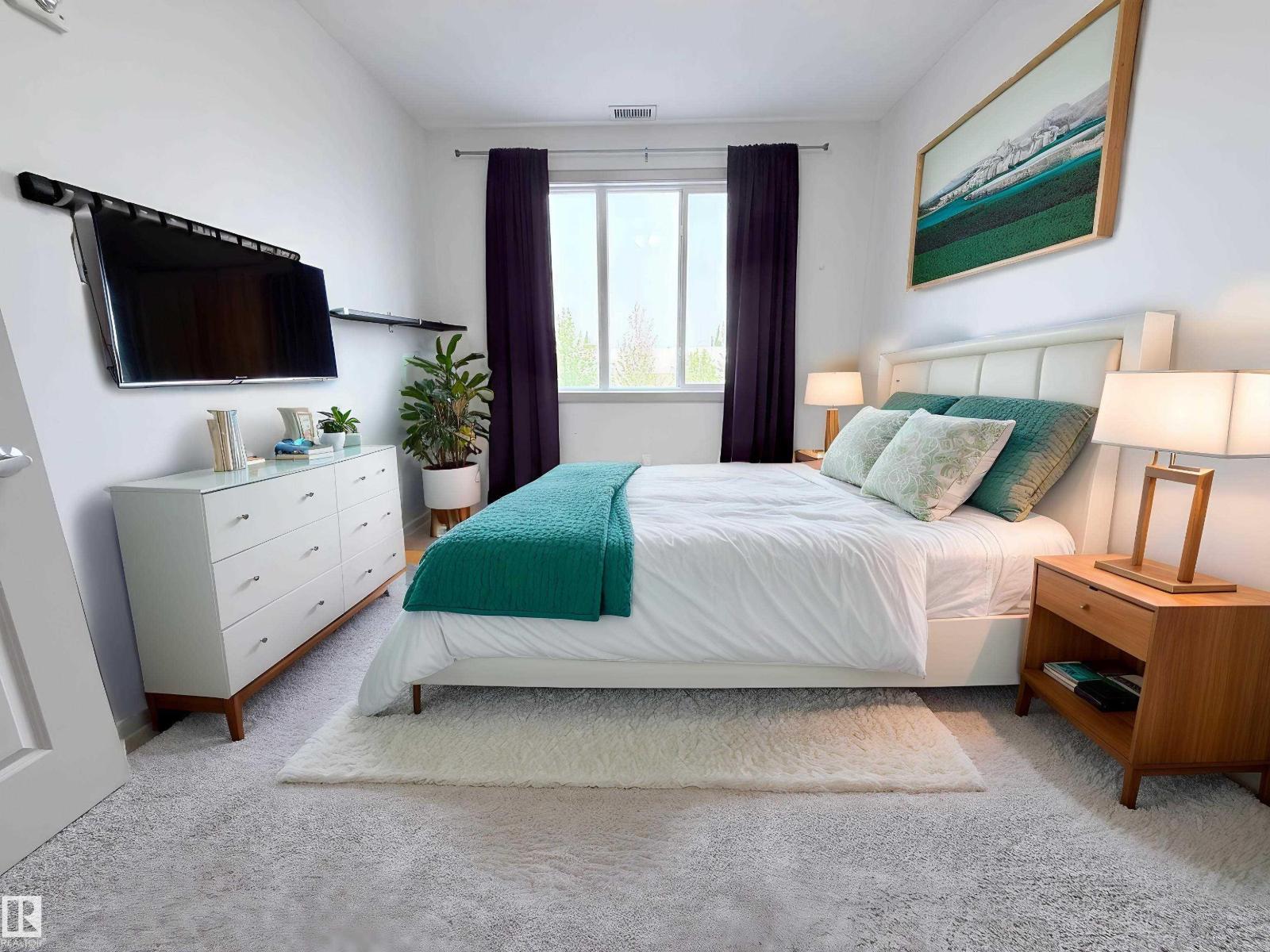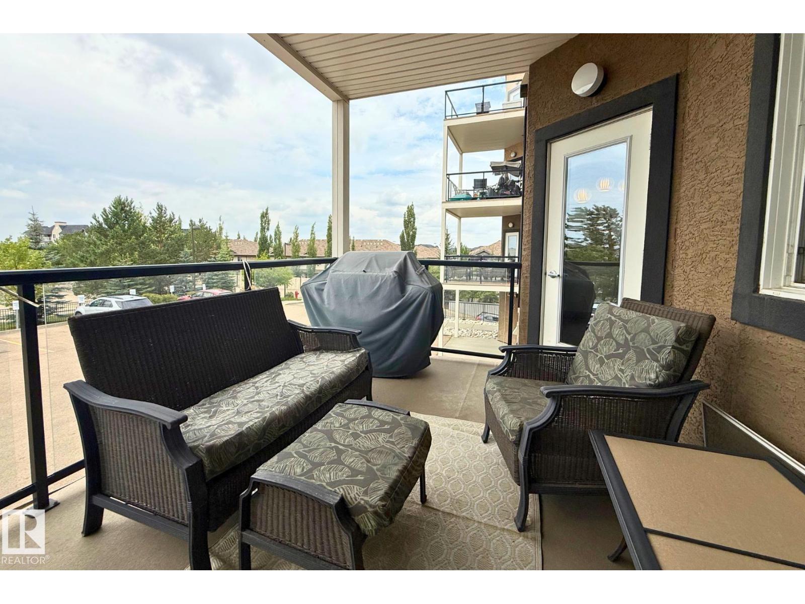 ELEGANT CONDO LIVING… 3 TITLED PARKING STALLS INCLUDED! TWO LARGE BEDROOMS, TWO FULL BATHROOMS, AIR CONDITIONING, and a setup that makes life easy... ~WELCOME HOME!~ Out back, enjoy GREEN SPACE for morning coffee, dog walks, or just a little fresh air. Out front, SHOPS, CAFES, and everyday conveniences are right at your doorstep... no car required! But if you have wheels, you’ll love the rare THREE STALLS: two surface spots plus an UNDERGROUND stall with a CAR WASH BAY. Bring your toys, keep one for guests, or simply enjoy the freedom of choice. Inside, the layout is SMART, with bedrooms on opposite sides for privacy, a BRIGHT living area in the middle, and WEST-FACING WINDOWS that frame nightly SUNSETS from your balcony, filling the space with a golden glow. The kitchen is both stylish and functional with stone countertops, a corner pantry, and plenty of cabinetry—perfect for easy weeknight dinners or weekend entertaining. OPEN CONCEPT design keeps it all connected in this Sherwood Park gem! (id:42720)