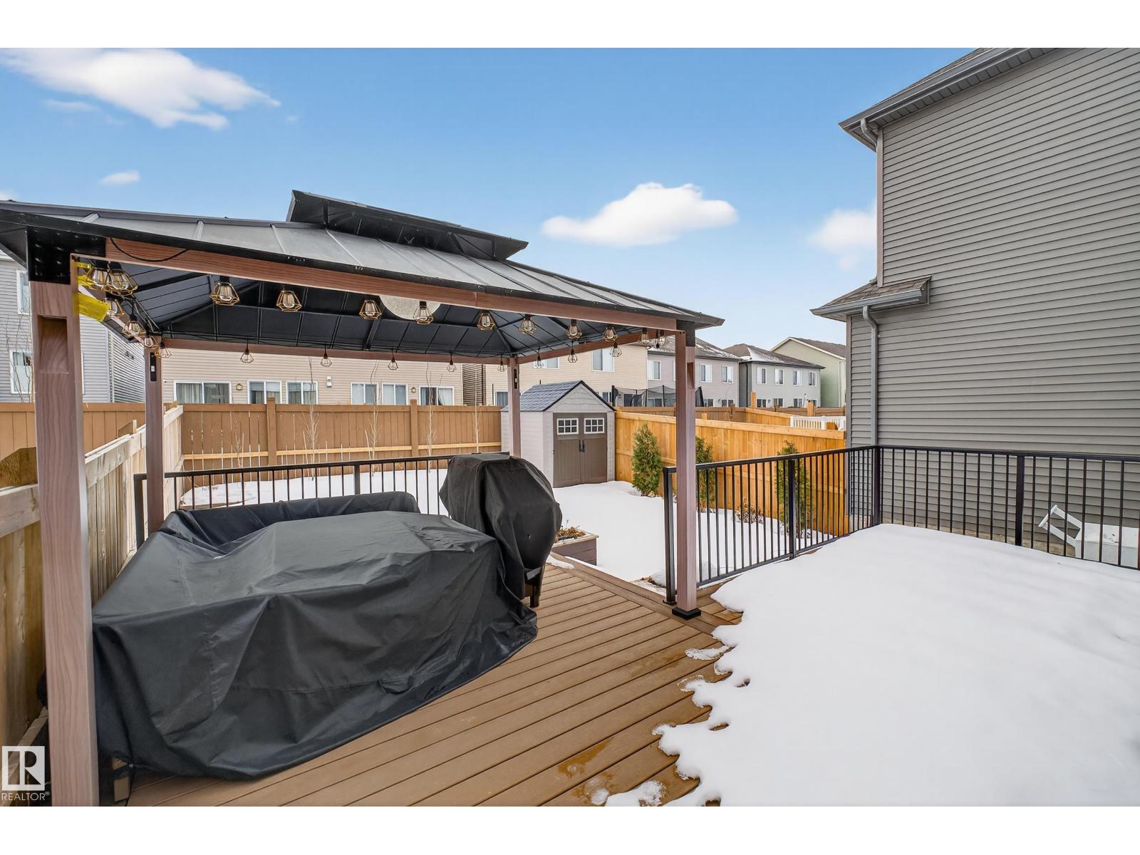 Looking for a nearly new and truly turn-key home with minimal traffic exposure, this 2022 Graydon Hill Honey offers over 2,000 sq. ft. of premium finished living space with all the modern touches you’ll love. The open-concept main floor features a gourmet kitchen with quartz countertops, an island with undermount sink, stainless steel appliances and hood fan, bright south-facing windows, 9-foot ceilings, and a floor plan that could accommodate a future separate basement entrance with minor interior modifications. Upstairs you’ll find a spacious bonus room, large laundry room, and three bedrooms. The primary suite is generously sized and includes a walk-in closet and a 5-piece ensuite with double sinks, a separate shower, and soaker tub. Your family is guaranteed to enjoy the warmer months in the custom landscaped backyard, complete with a large composite deck, gazebo, and beautiful Swedish Aspen trees. (id:42720)