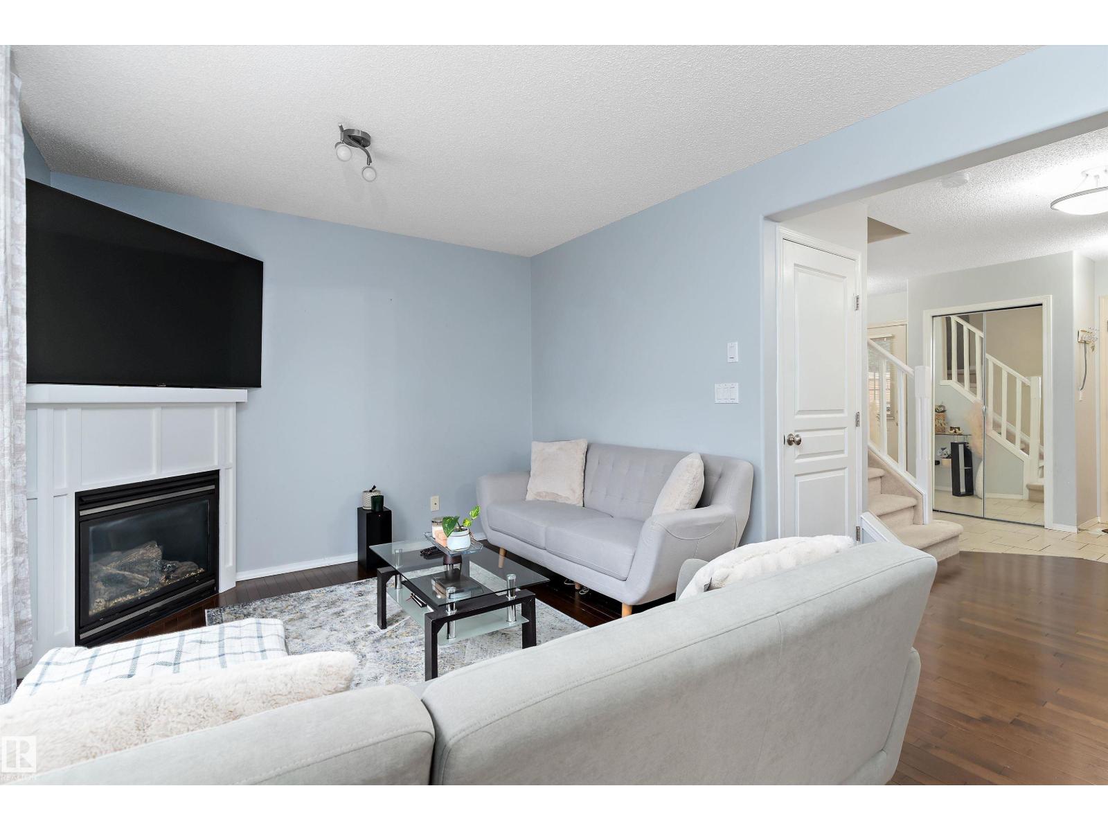 Lovely family home located in peaceful OXFORD! Convenient access to the Anthony Henday, bus stops, schools, walking paths, and Oxford Lake! Featuring a DOUBLE CAR GARAGE, 3 Bedrooms, 3.5 Baths, and a FULLY FINISHED BASEMENT! The kitchen is complete with a pantry, STAINLESS STEEL APPLIANCES, eating bar, Water Filtration System under sink, and TONS OF CABINET SPACE! The LARGE WINDOWS allow tons of natural light to flow throughout the OPEN-CONCEPT main floor design! A corner gas fireplace in the living room, HARDWOOD FLOORS, 2 piece bath, and laundry room finish off the main floor. Upstairs is a spacious primary suite with a WALK-IN CLOSET and 4 piece ENSUITE! 2 Additional bedrooms and a 4 piece bathroom complete the upper level. Downstairs you'll find a LARGE FAMILY ROOM, 3 piece bath, and TONS OF STORAGE SPACE! Condo fees include the maintenance of the outside including professional snow removal and lawn care! (id:42720)