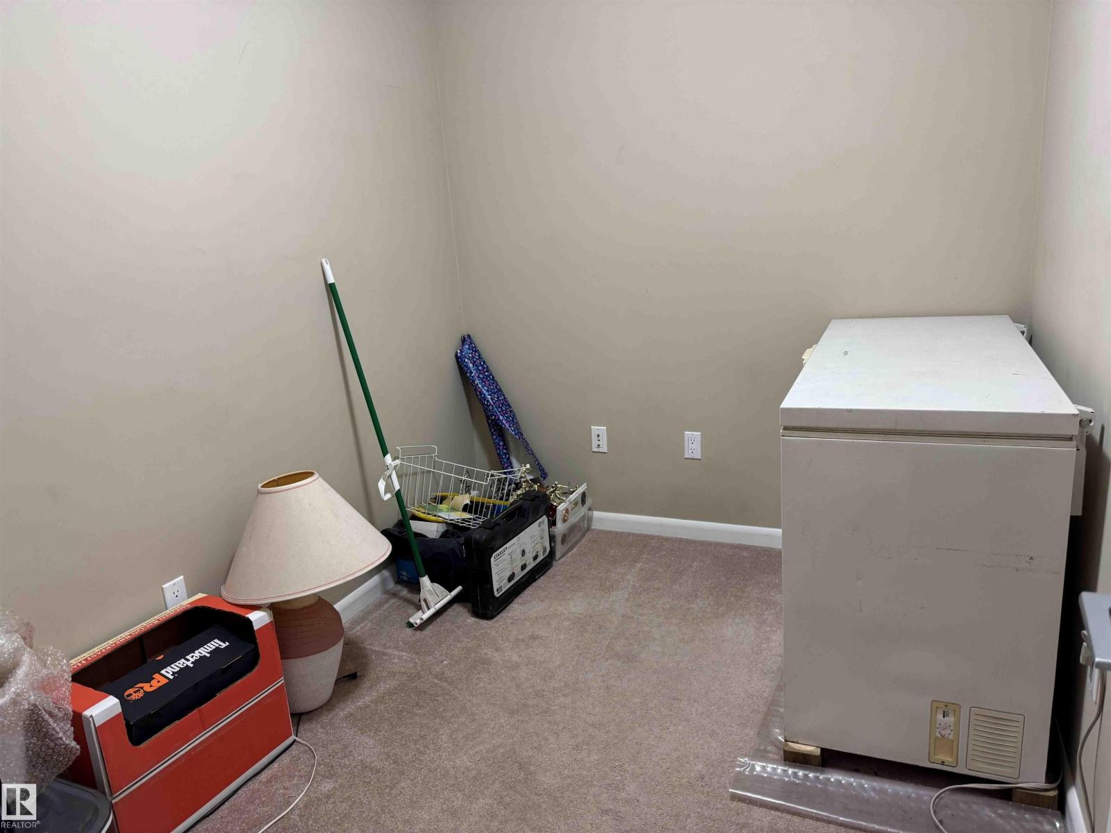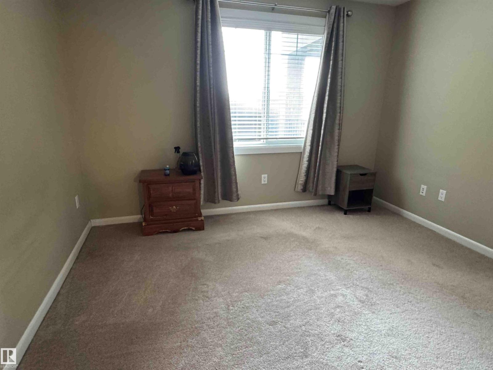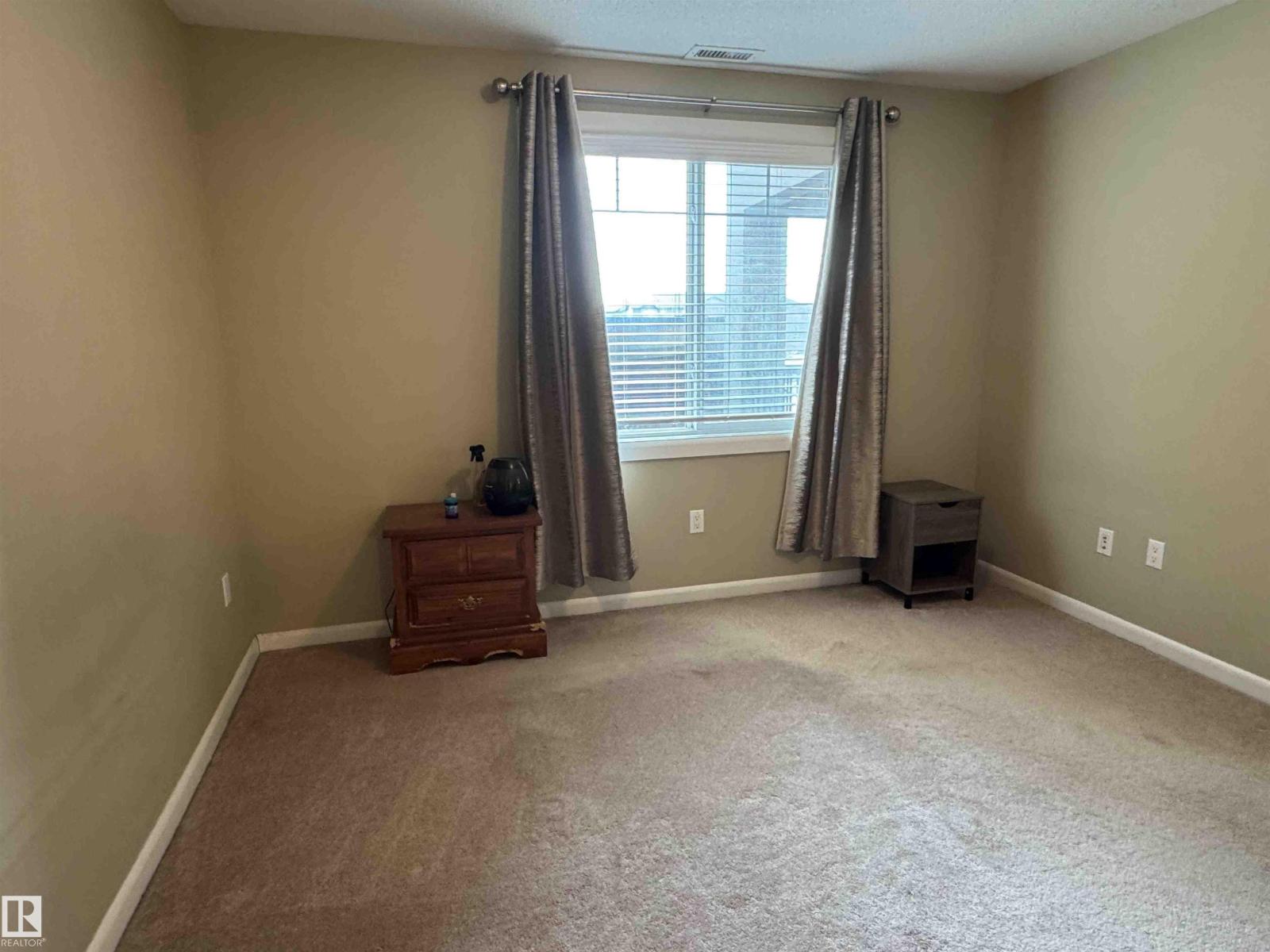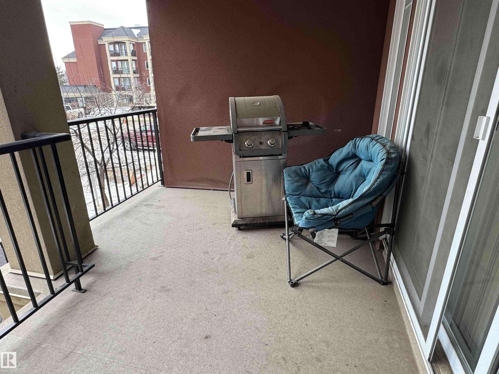 Amazing location in Sherwood Park! This second-floor unit in the sought-after Palisades (300 building) offers 1 bedroom plus den in a well-maintained 18+ complex. The modern open-concept layout features a U-shaped kitchen with eat-up bar and ample counter space, flowing into the dining and living areas. The primary bedroom includes a walk-in closet with direct access to the full 4-piece bath. Enjoy the convenience of in-suite laundry with stacking washer/dryer and additional in-suite storage. The versatile den is ideal for a home office or exercise space. Fan coil system replaced in 2021 providing both A/C and heat. Includes one titled heated underground parking stall with caged storage (Stall 141). Exceptional amenities include car wash, gym with steam & sauna, social room with pool table, and theatre room. Close to transit, parks, rec center, shopping, and easy access to Hwy 16. (id:42720)