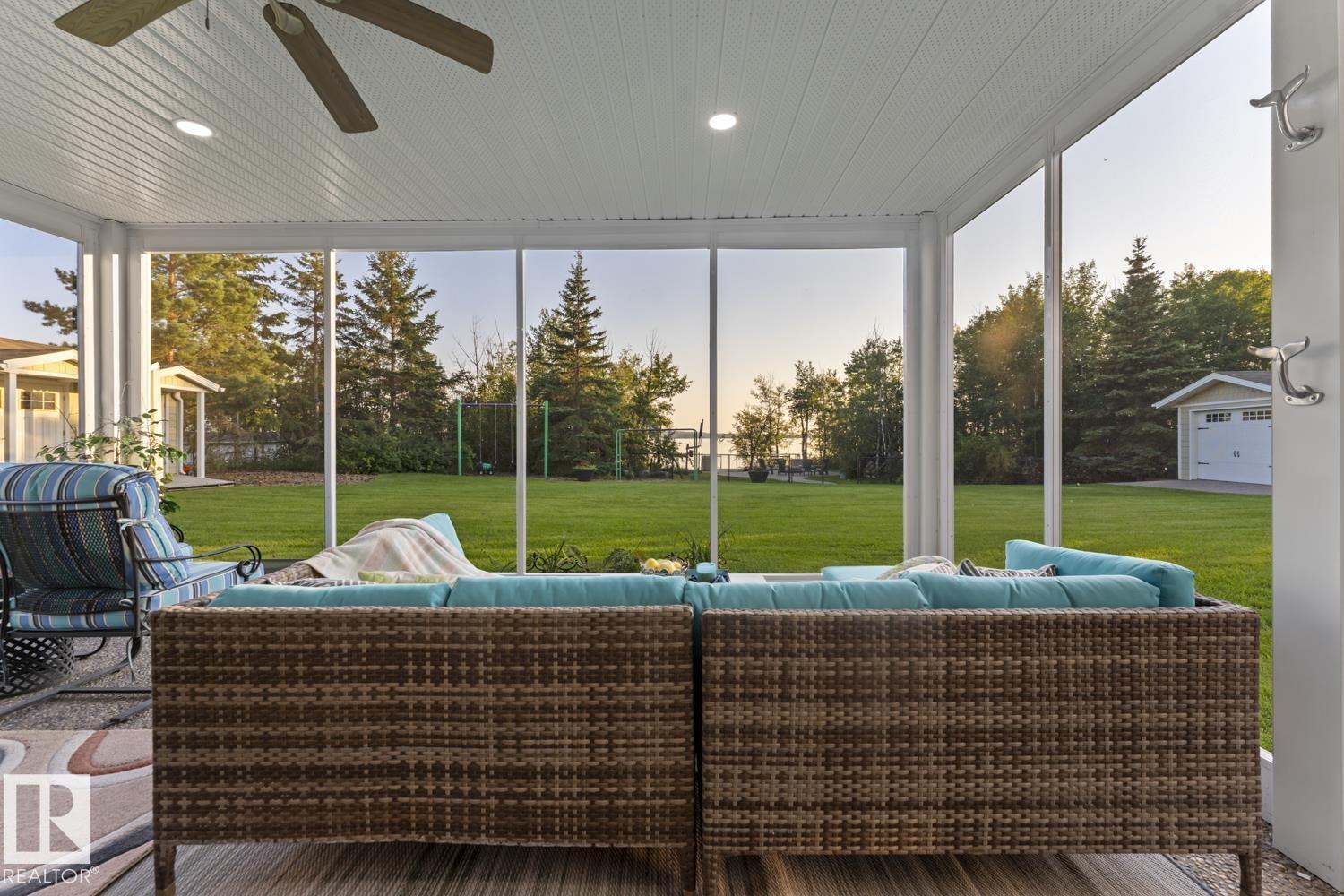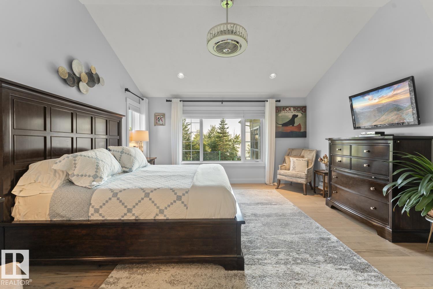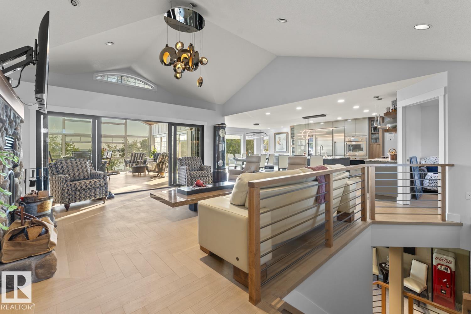 Lakefront Masterpiece of Design. Extensively modernized & expanded, this bungalow in Chateau Estates- Moose Lake features custom finishings throughout. Inviting porch opens to an open-concept layout w/ vaulted ceilings. Living rm showcases hardwood floors & wood f/p. State-of-the-art kitchen boasts built-ins, hi-end appliances, huge eat-at island & extras galore. 4-season sunrm w/ gas BBQ hookups & ventilation. 4 beds, 3 baths incl. luxurious primary suite w/ 5pc ensuite including dbl sinks, huge tiled shower, freestanding tub w/ electric f/p, spacious closet & heated floors. Main flr laundry, A/C, central vac & surround sound. Fully dev’d walkout bsmt w/ rec rm, wet bar, flex rm, wine cellar, storage, underslab heat & screened patio. Beautifully landscaped yard w/ mature trees, circular drive, fountain, fenced yard, 2 sheds, lakeside firepit, UG sprinklers & no-maintenance deck. Heated att’d dbl garage + 30'x60' heated shop w/ 220 power,3pc bath & mezz. Close to town, golf course & parks. Live the Dream! (id:42720)