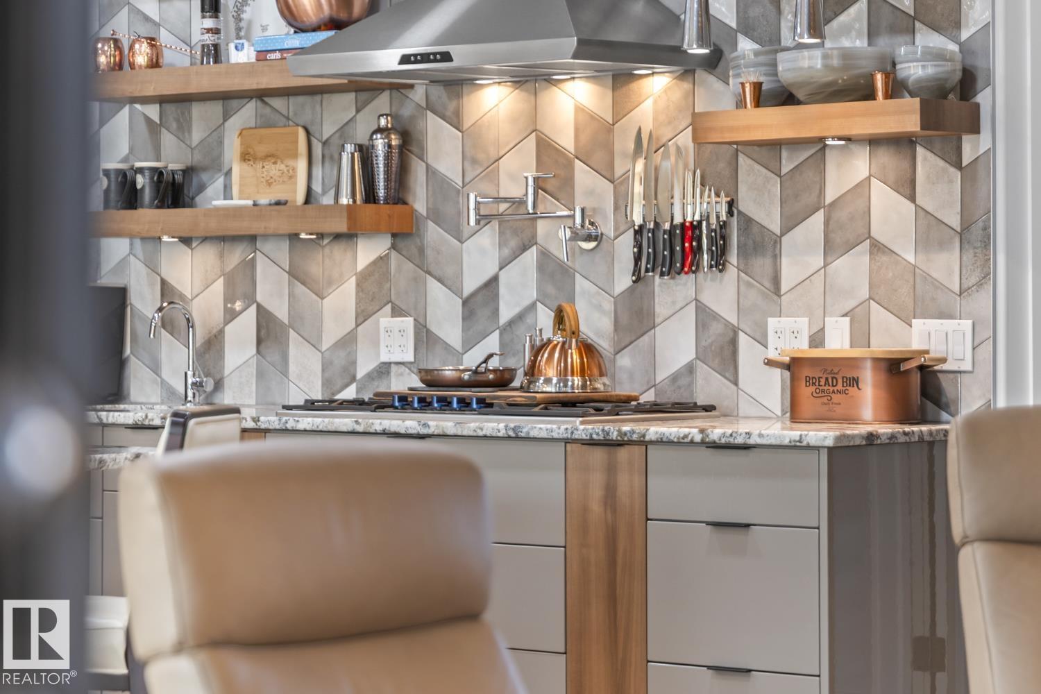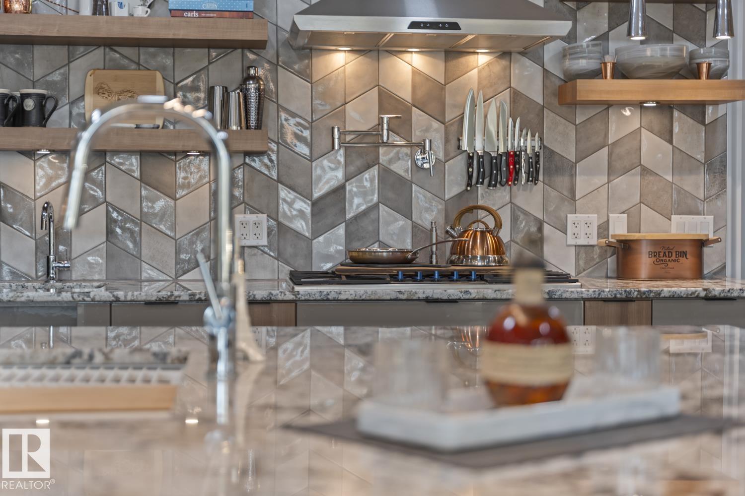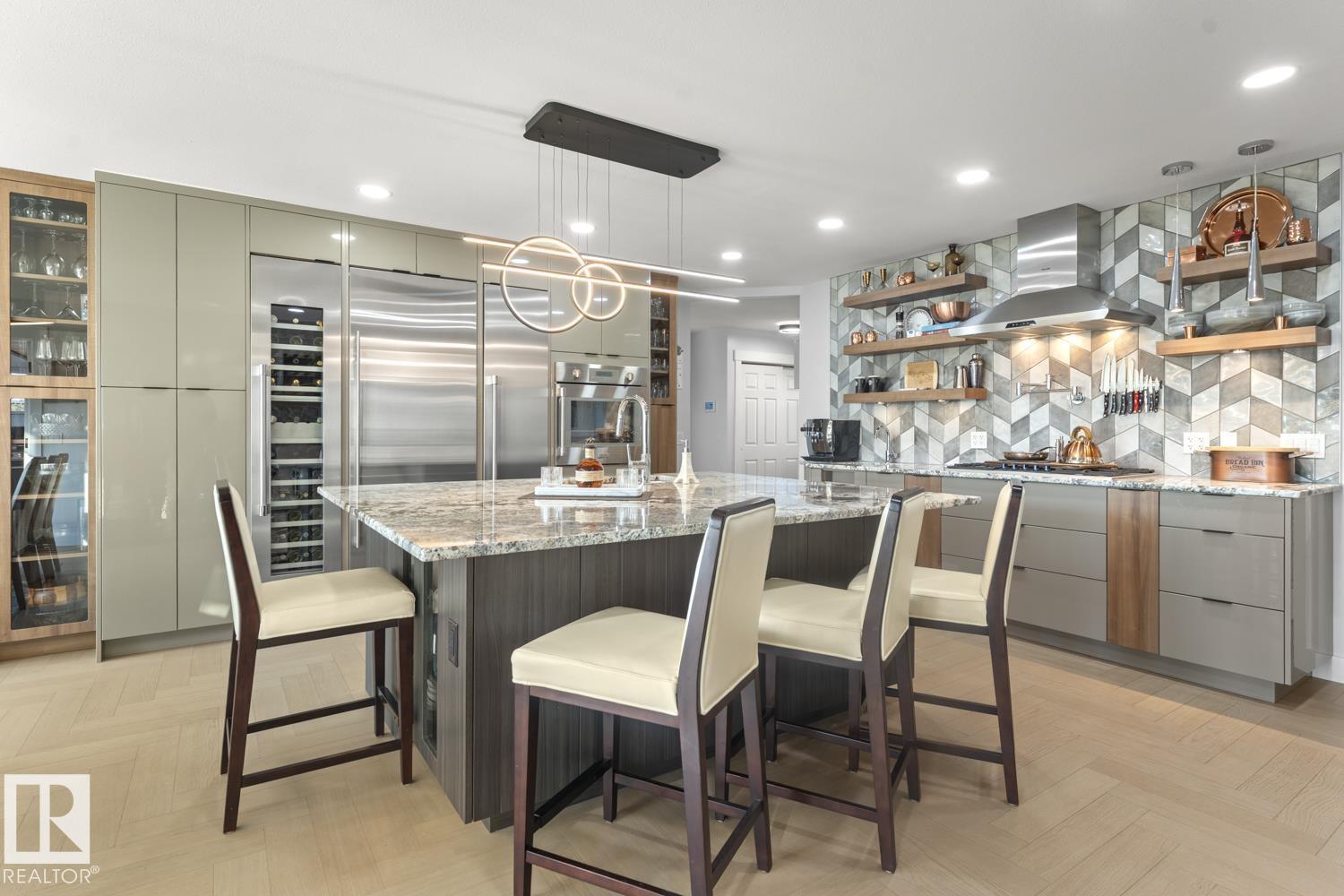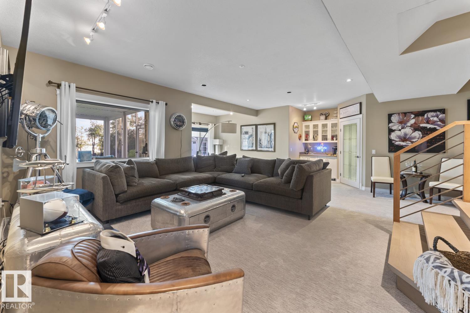Lakefront Masterpiece of Design. Extensively modernized & expanded, this bungalow in Chateau Estates- Moose Lake features custom finishings throughout. Inviting porch opens to an open-concept layout w/ vaulted ceilings. Living rm showcases hardwood floors & wood f/p. State-of-the-art kitchen boasts built-ins, hi-end appliances, huge eat-at island & extras galore. 4-season sunrm w/ gas BBQ hookups & ventilation. 4 beds, 3 baths incl. luxurious primary suite w/ 5pc ensuite including dbl sinks, huge tiled shower, freestanding tub w/ electric f/p, spacious closet & heated floors. Main flr laundry, A/C, central vac & surround sound. Fully dev’d walkout bsmt w/ rec rm, wet bar, flex rm, wine cellar, storage, underslab heat & screened patio. Beautifully landscaped yard w/ mature trees, circular drive, fountain, fenced yard, 2 sheds, lakeside firepit, UG sprinklers & no-maintenance deck. Heated att’d dbl garage + 30'x60' heated shop w/ 220 power,3pc bath & mezz. Close to town, golf course & parks. Live the Dream! (id:42720)