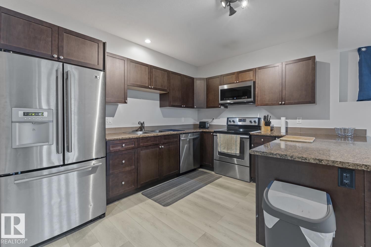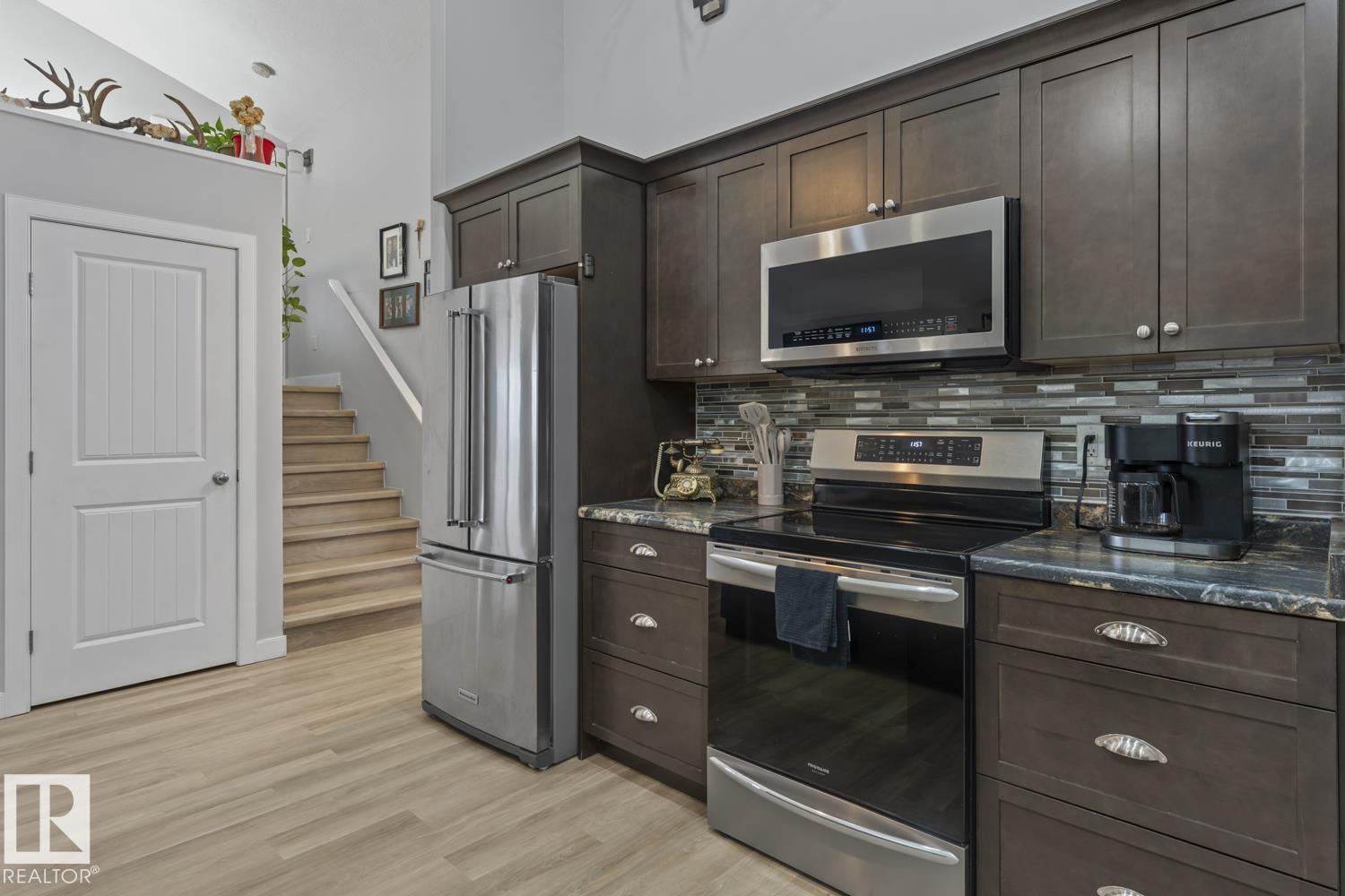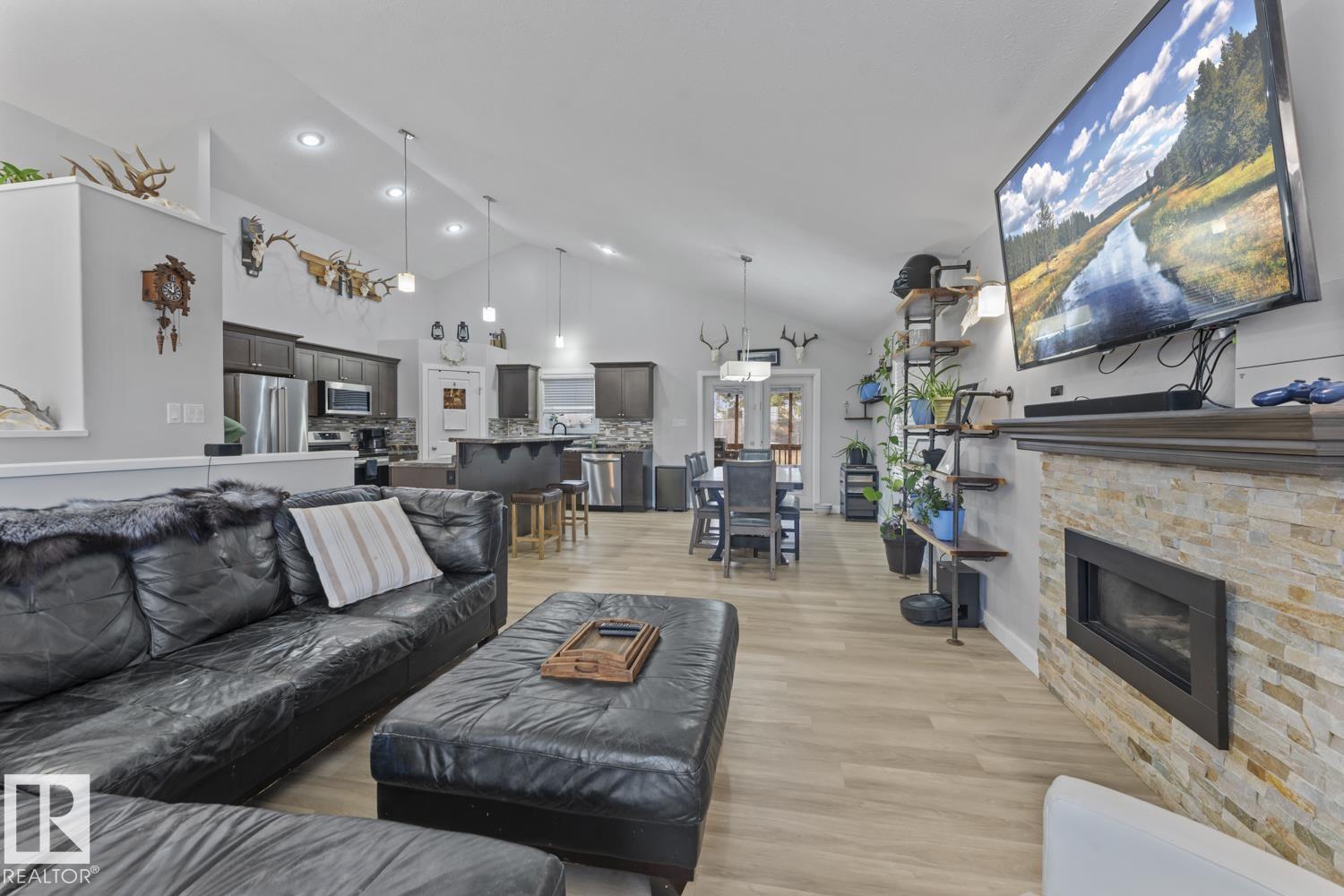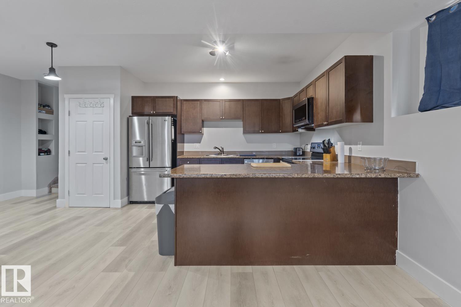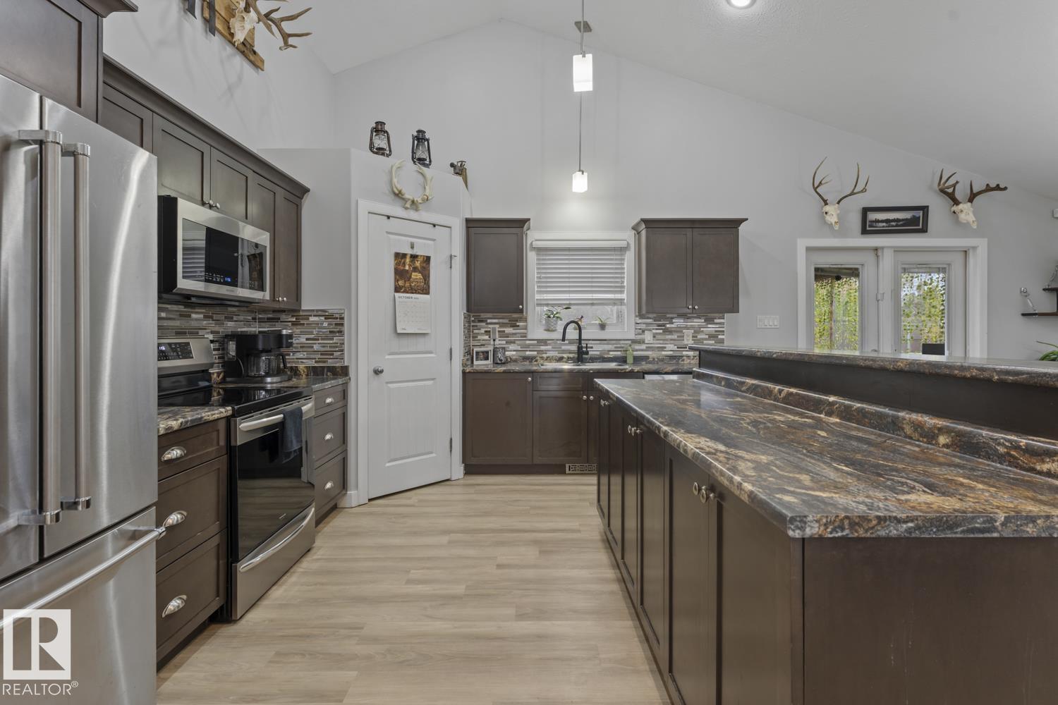 Modern feel Hailey style home with 3 bedrooms & garage access off the top 2 levels PLUS AN IN-LAW SUITE IN BASEMENT( with separate entry, full kitchen + laundry!) ASPEN RIDGE, a family friendly subdivision! Open concept with vaulted ceilings! Main level with new flooring. Large windows through-out this home! Livingroom with gas fireplace, spacious dining area with patio doors leading to a covered back deck! Kitchen with dark cabinetry, pantry, all appliances included plus island with eating bar. 2 bedrooms and 4 piece bathroom complete main level. Primary bedroom just up a few stairs (king size bed large with walkin closet and 4 piece ensuite). Access to utility room with laundry as well. THE BASEMENT has a separate side entrance and includes: 2 bedrooms + 3 piece bathroom. Open livingroom, dining and a full modern 2nd kitchen with appliances. PLUS laundry of its own. Basement roughed-in for underslab heat, garage has a gas line installed for a future heater+yard is fenced. Concrete drive. Welcome home! (id:42720)