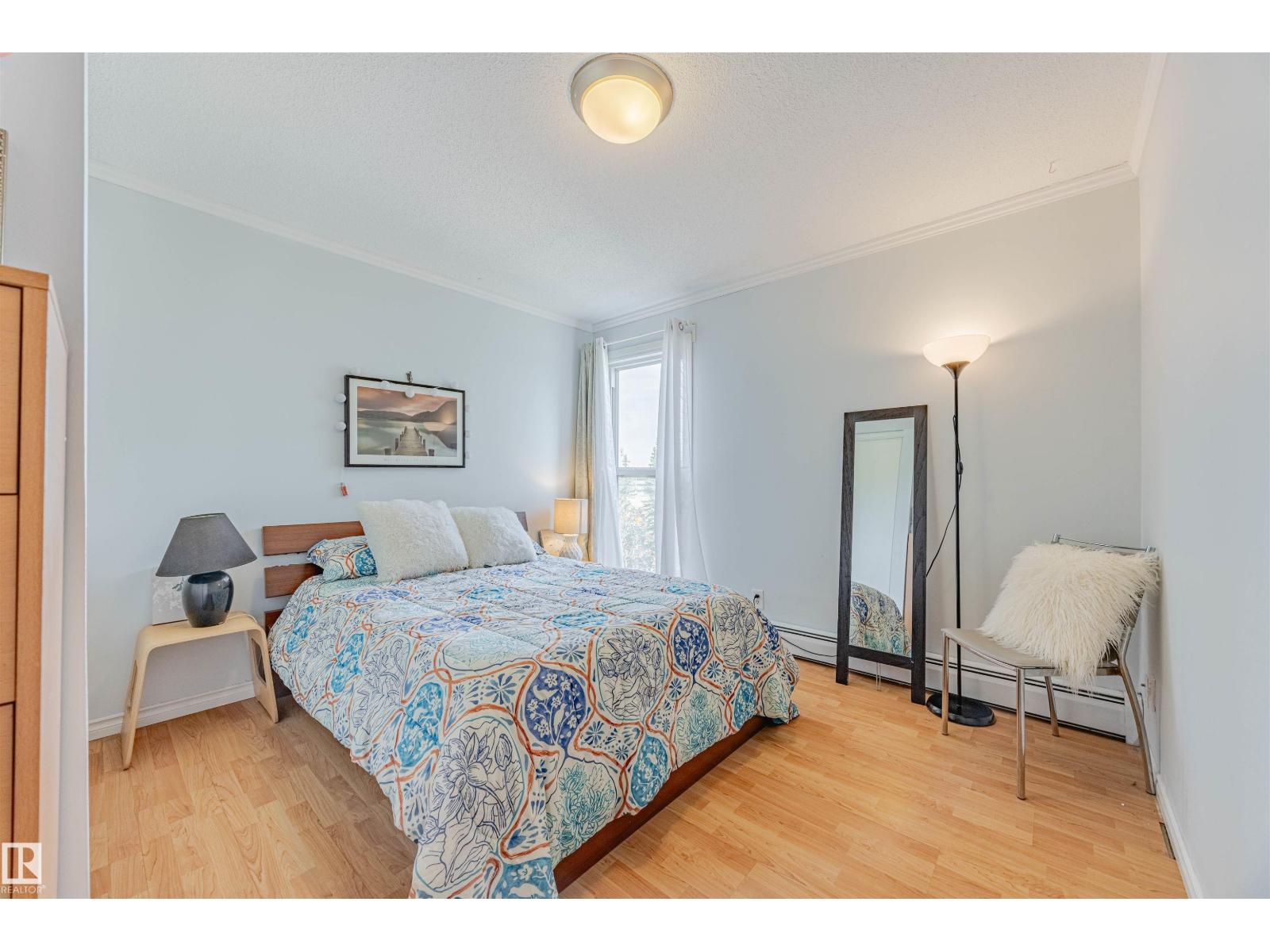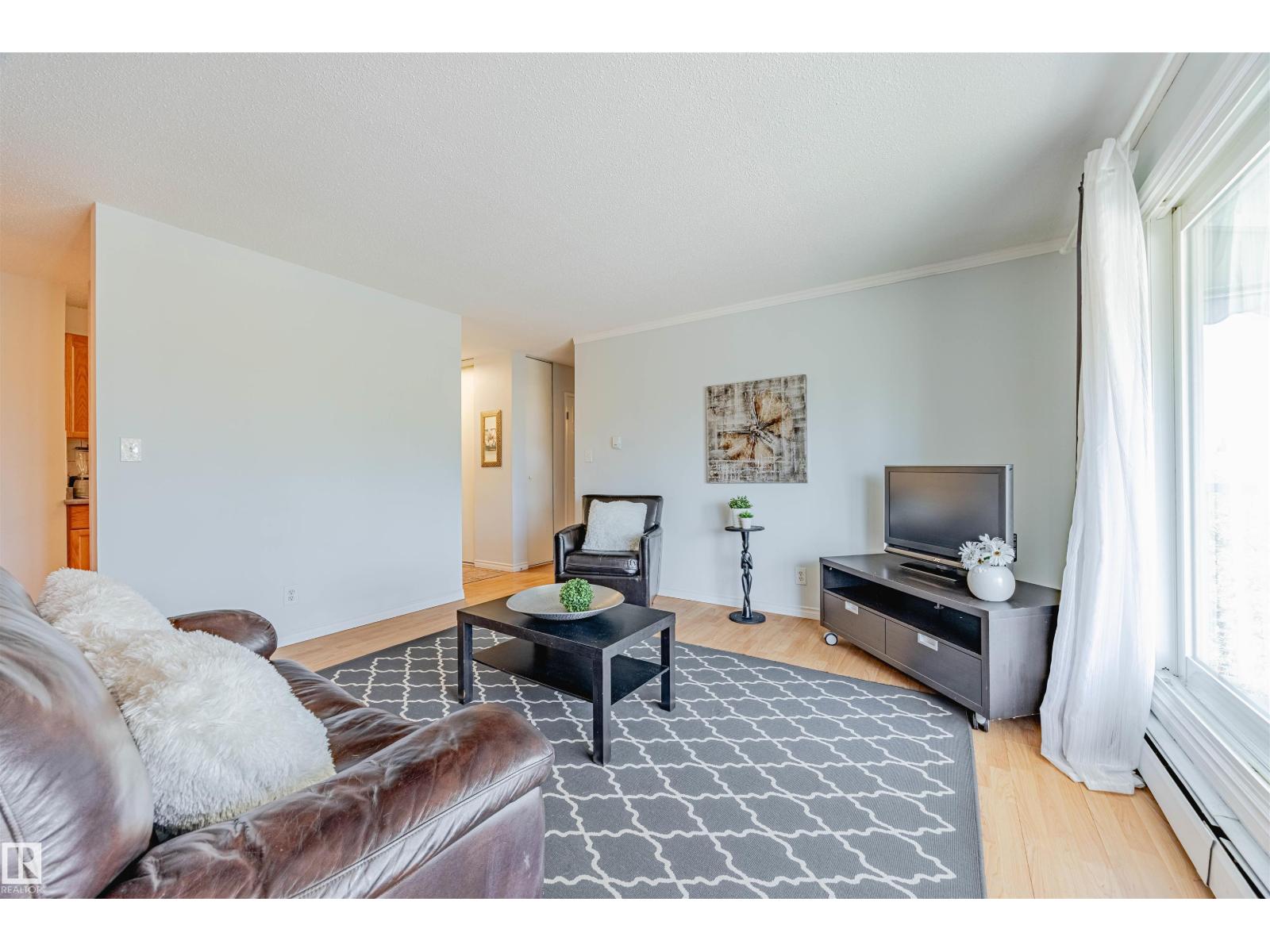 Super location with a park view, Move-In Ready or Investment Opportunity Welcome to this bright and spacious one-bedroom condo in a quiet, well-managed building with LOW CONDO FEES. Perfect for first-time buyers, downsizers, or investors—this unit is move-in ready, or easily rentable. Enjoy a thoughtfully designed living space featuring a sun-filled layout with large windows and a private balcony overlooking a peaceful park, well-maintained, with fresh paint and upgraded plumbing (2024). The building has seen recent upgrades, including Newer balconies, windows, and a roof, ensuring long-term peace of mind, and an assigned parking stall with a plug-in for your convenience. It is situated in a prime location with direct access to the University of Alberta, Whitemud Drive, and the Anthony Henday. Just steps from public transit, LRT, shopping, medical services, the Century Park Rec Centre, and scenic walking trails.A rare opportunity to own a well-maintained top-floor suite in a super location. (id:42720)