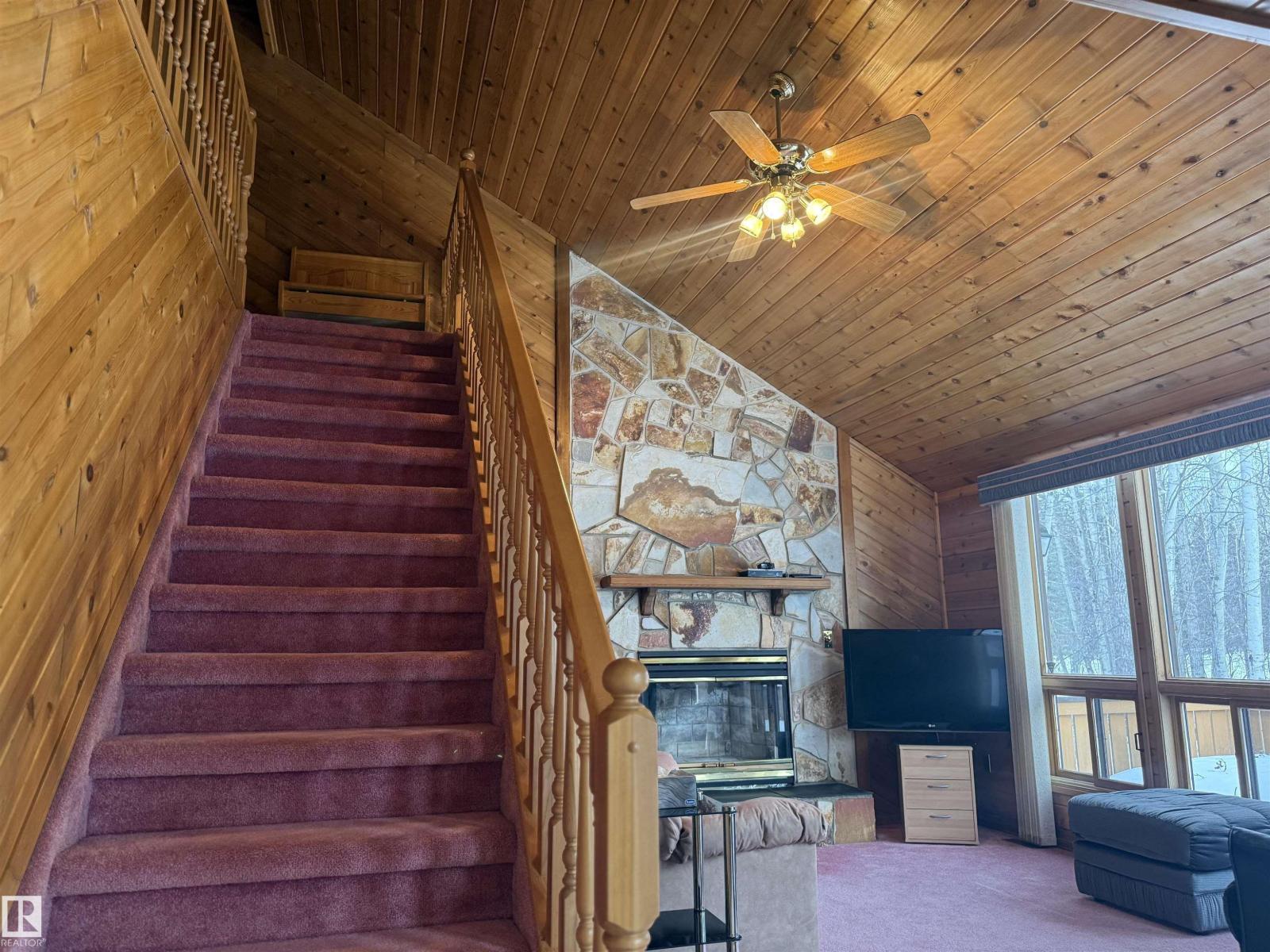 Welcome to this quaint and beautifully maintained lake cottage, perfectly positioned on a private half-acre back lot with reserve land behind, offering peace, privacy, and the best of lake life without the crowds. This charming 11/2-storey home is just steps from the boat launch, with paved access right to the driveway, and includes exclusive access to a stunning beachfront and playground—ideal for families, guests, and summer memories. Inside, you’ll immediately feel the care and pride of ownership. A wood-burning fireplace anchors the main living space, while large windows frame gorgeous nature views, filling the home with natural light. The lush, manicured yard creates a serene outdoor retreat, perfect for morning coffee or evening fires under the stars. The layout is thoughtful and inviting: • Primary suite on the main level • Two spacious bedrooms and a full bathroom upstairs • Basement featuring a recreation room, wet bar, and versatile flex room—perfect for guests, games. (id:42720)