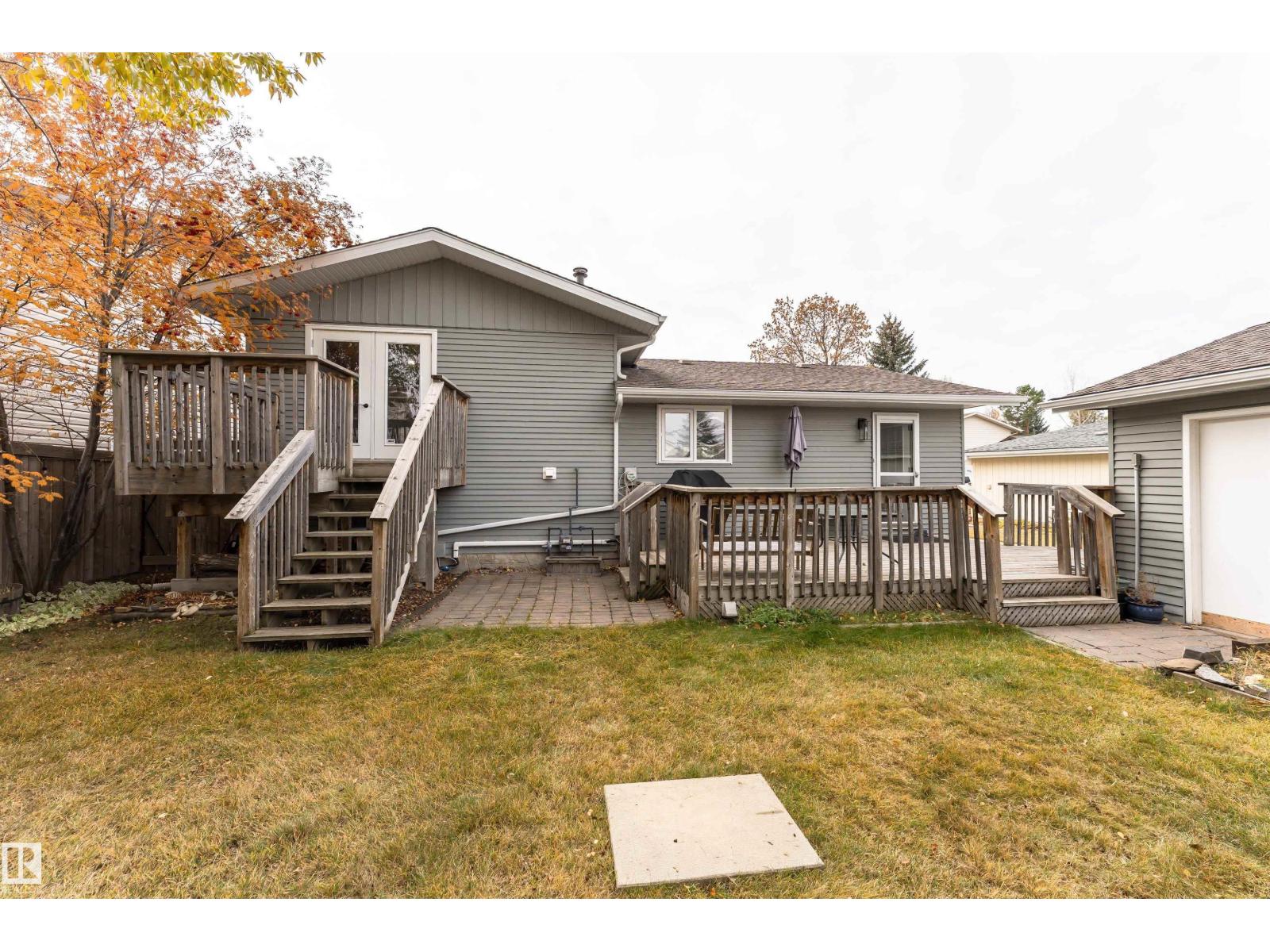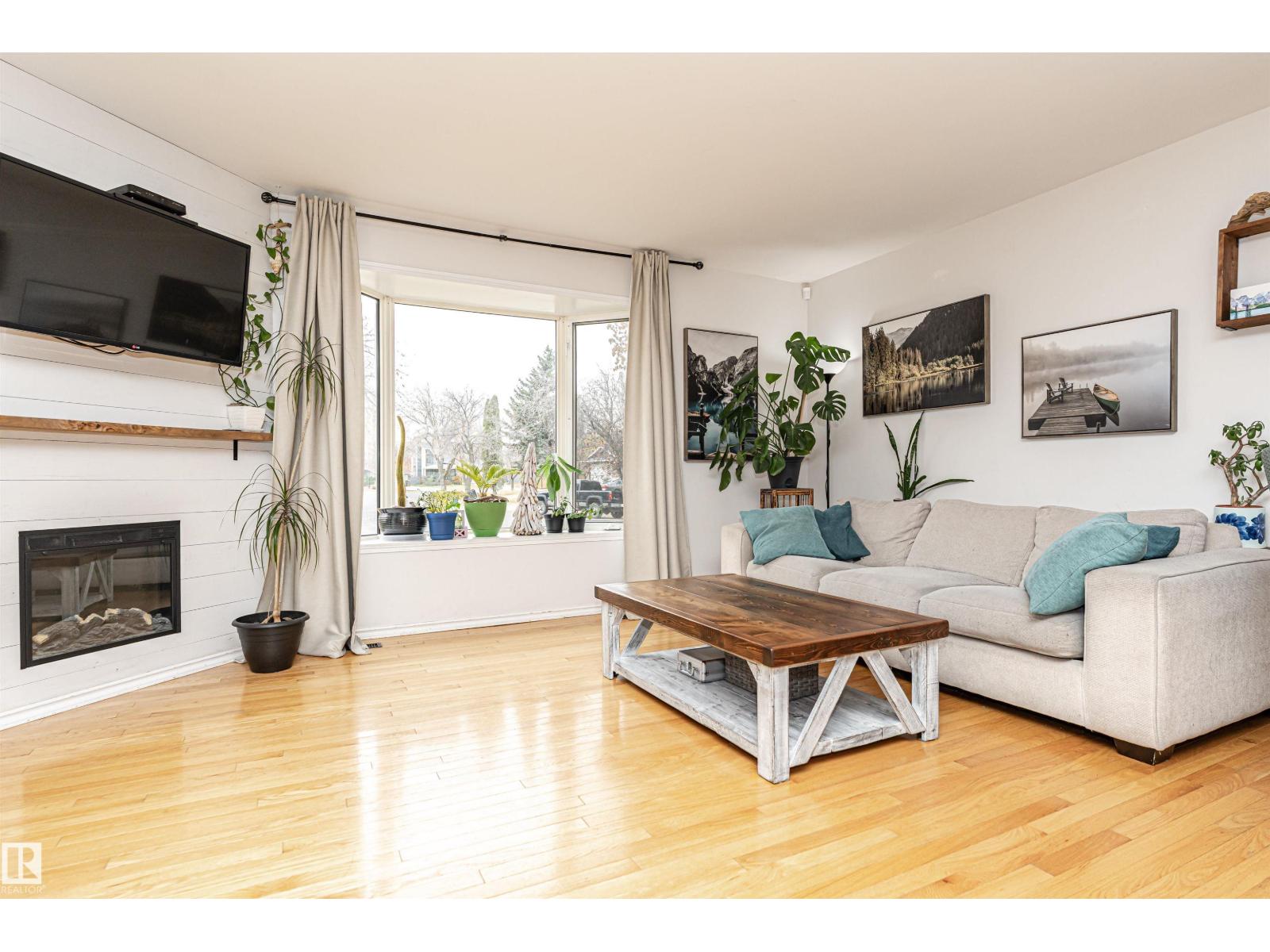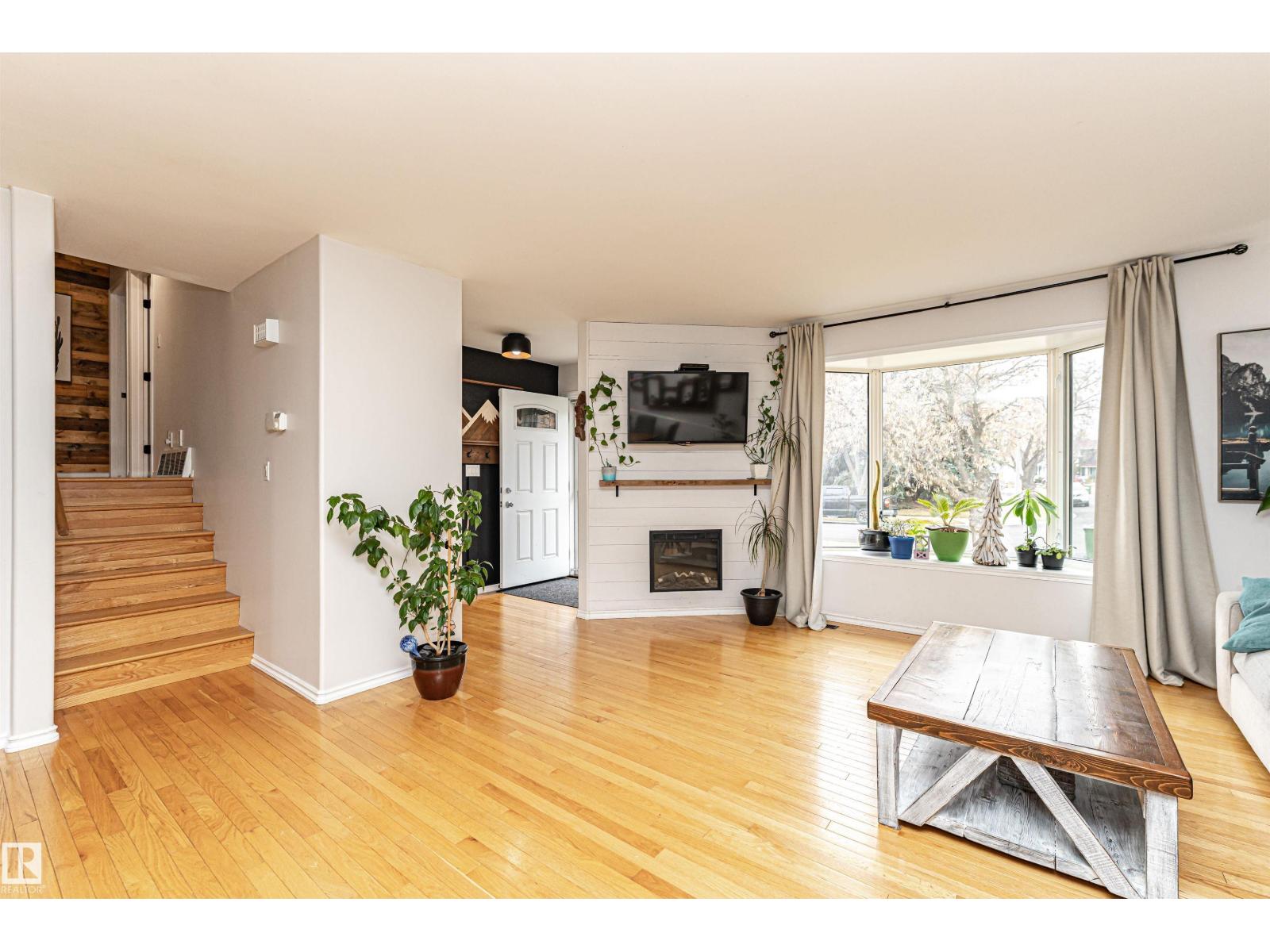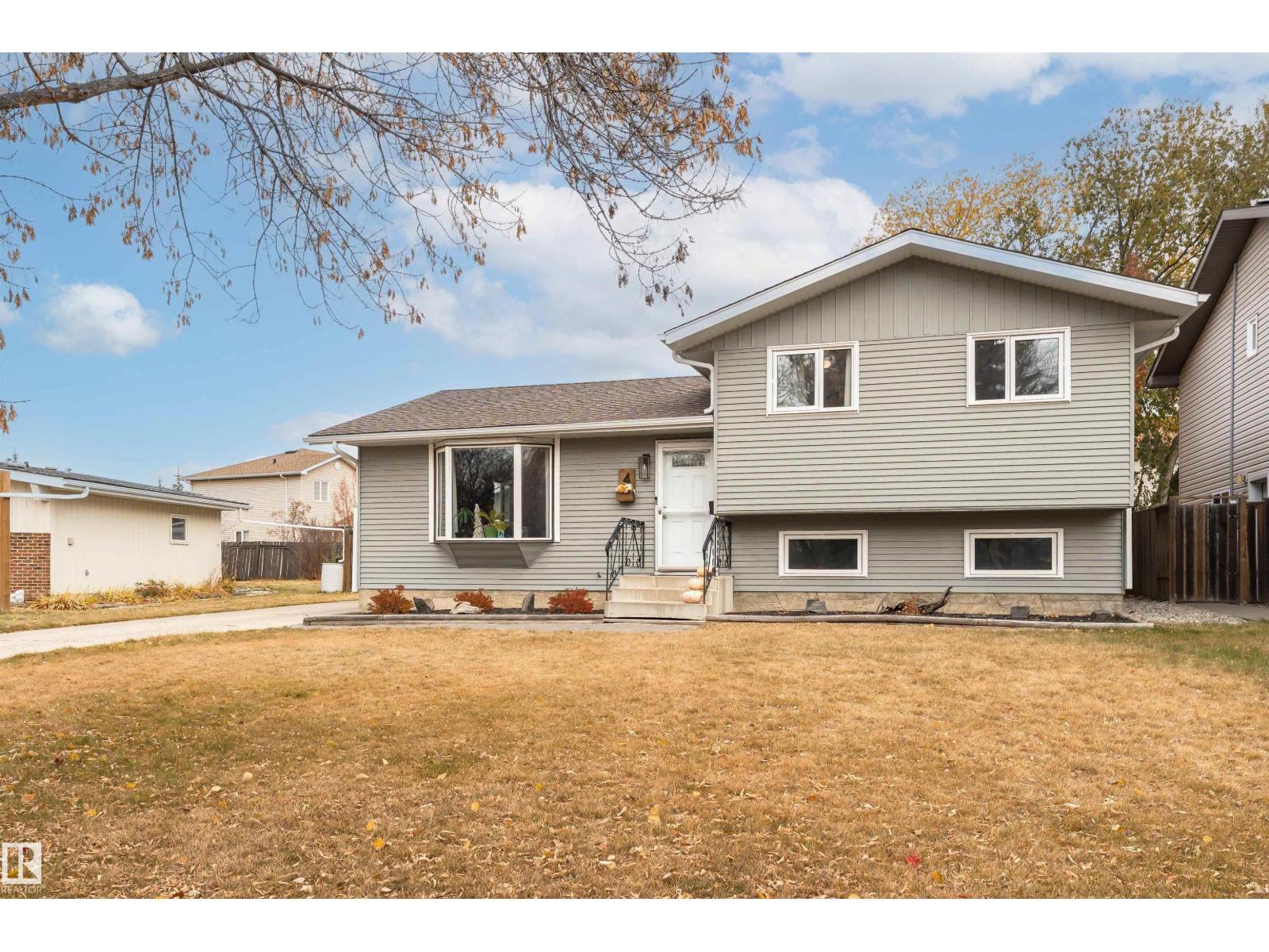 Quietly nestled on a peaceful cul-de-sac in Akinsdale, this fully RENOVATED 4-level split boasts STUNNING curb appeal & thoughtful modern updates throughout. The bright main floor features a cozy electric fireplace, BAY window, OAK hardwood floors & a CHEF-inspired kitchen W/a huge island, QAURTZ countertops, MOSAIC backsplash, soft-close cabinets W/modern hardware, OVERSIZED uppers, SS appliances & abundant storage—perfect for family living or entertaining. Upstairs, the primary suite offers double French doors leading to a private deck surrounded by mature trees, a 3-pc ensuite, plus two spacious bedrooms & an updated main bath. The first lower level includes a fourth bedroom & a 3-pc bath, while the lowest level highlights a SOUNDPROOFED media room & tidy laundry area. Outside, enjoy a private landscaped yard W/NEW fascia, soffit, gutters & downspouts, an OVERSIZED detached single garage & A/C for year-round comfort. Ideally located near schools, parks & trails this MOVE IN ready home truly has it all! (id:42720)