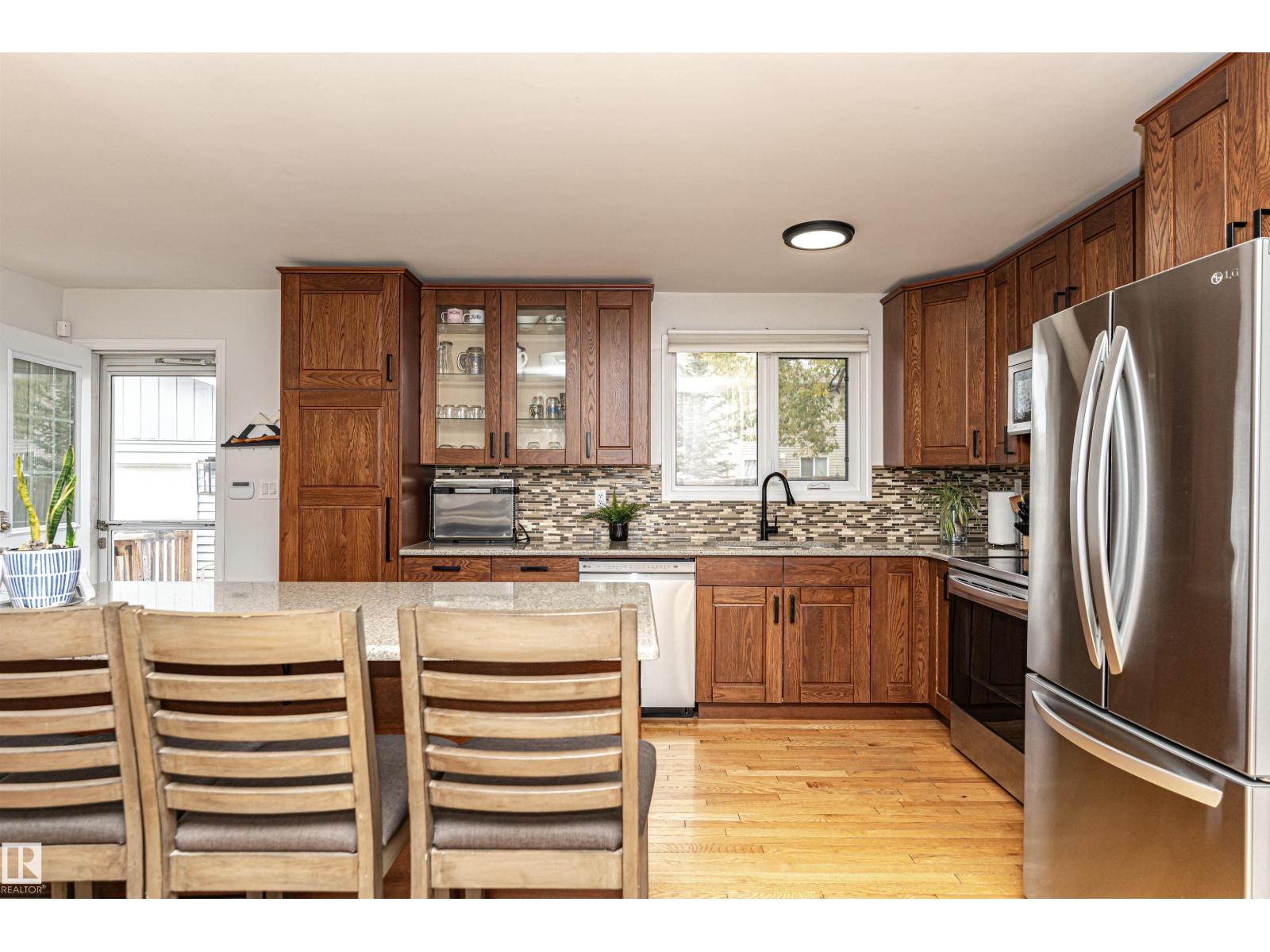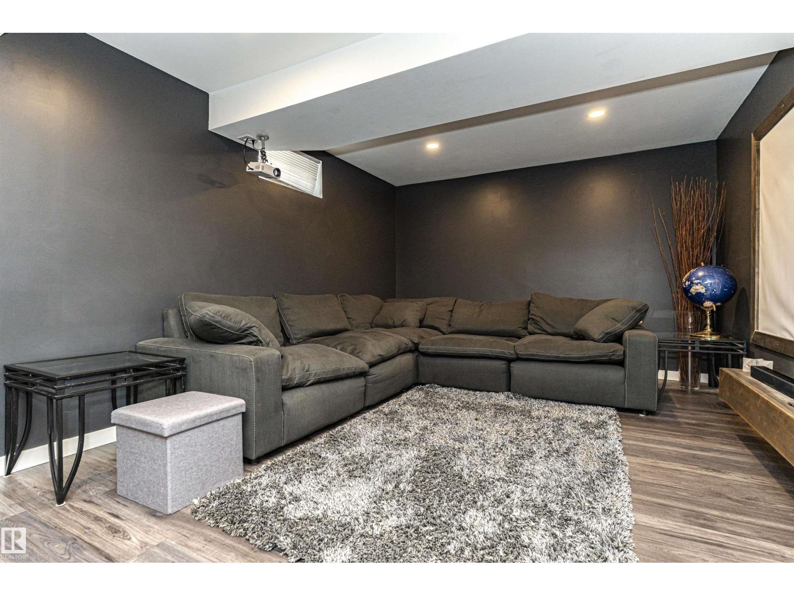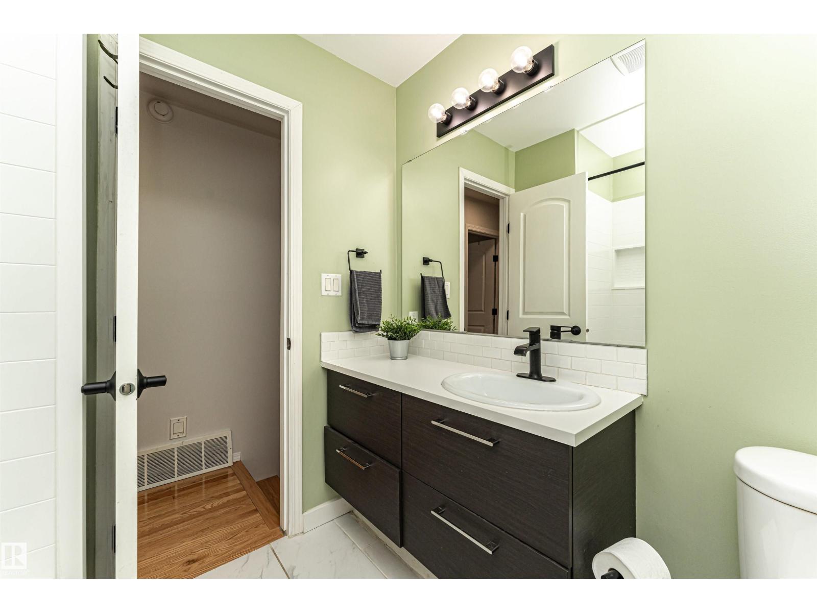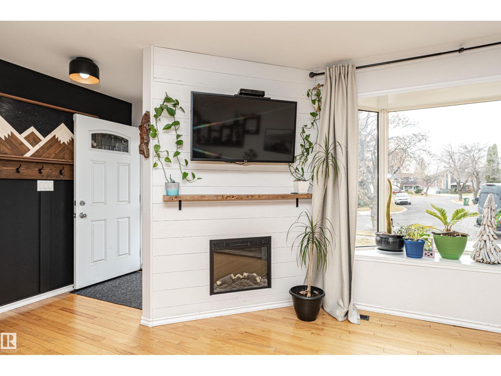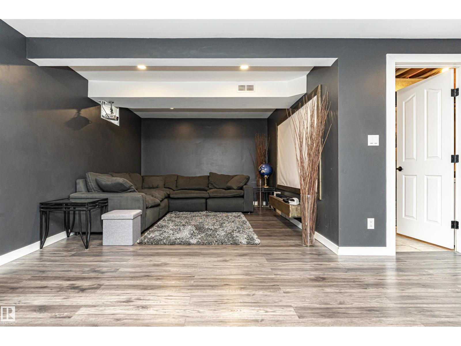 Quietly nestled on a peaceful cul-de-sac in Akinsdale, this fully RENOVATED 4-level split boasts STUNNING curb appeal & thoughtful modern updates throughout. The bright main floor features a cozy electric fireplace, BAY window, OAK hardwood floors & a CHEF-inspired kitchen W/a huge island, QAURTZ countertops, MOSAIC backsplash, soft-close cabinets W/modern hardware, OVERSIZED uppers, SS appliances & abundant storage—perfect for family living or entertaining. Upstairs, the primary suite offers double French doors leading to a private deck surrounded by mature trees, a 3-pc ensuite, plus two spacious bedrooms & an updated main bath. The first lower level includes a fourth bedroom & a 3-pc bath, while the lowest level highlights a SOUNDPROOFED media room & tidy laundry area. Outside, enjoy a private landscaped yard W/NEW fascia, soffit, gutters & downspouts, an OVERSIZED detached single garage & A/C for year-round comfort. Ideally located near schools, parks & trails this MOVE IN ready home truly has it all! (id:42720)