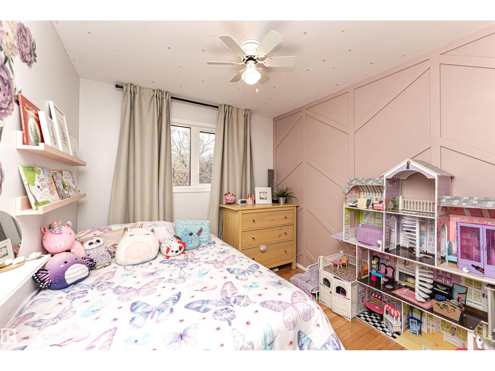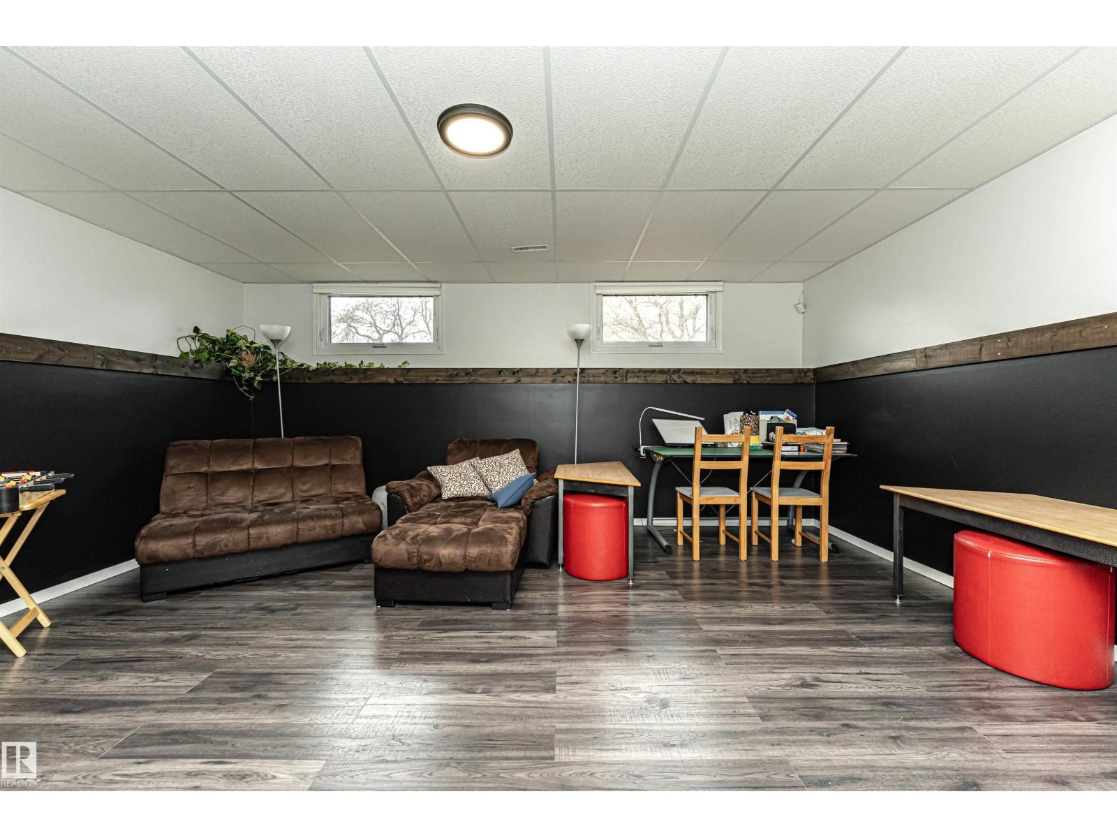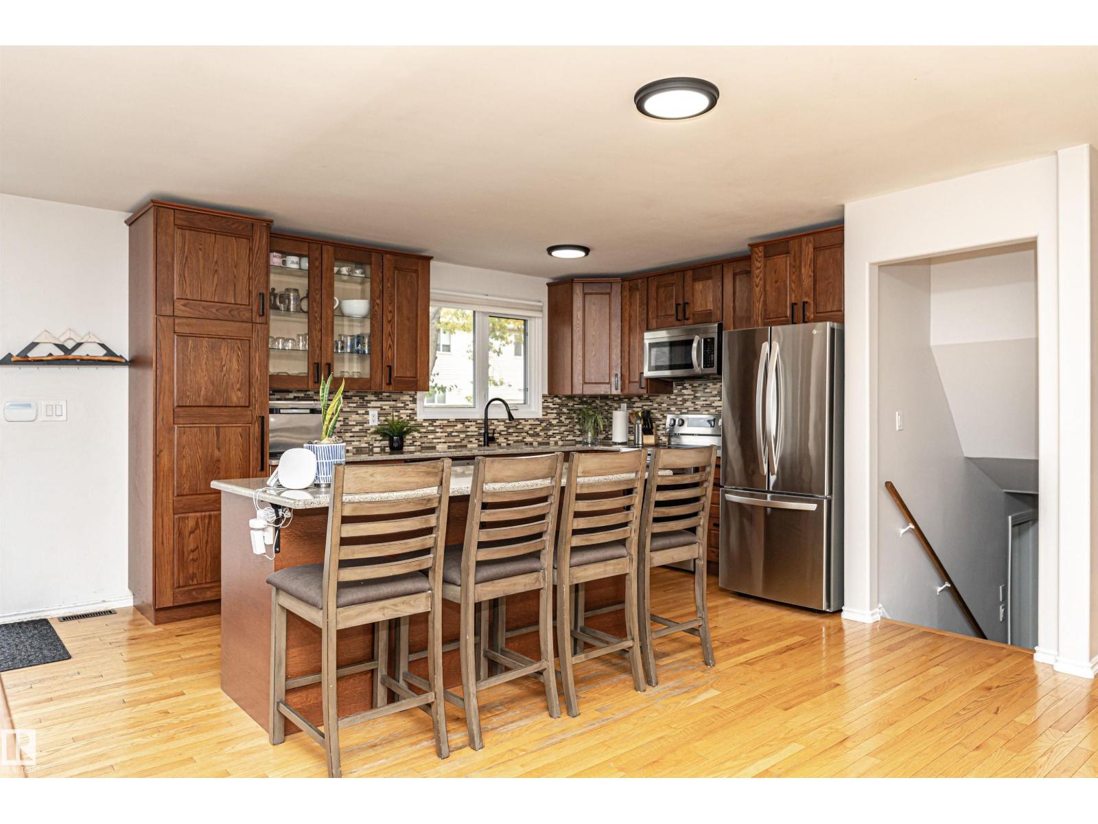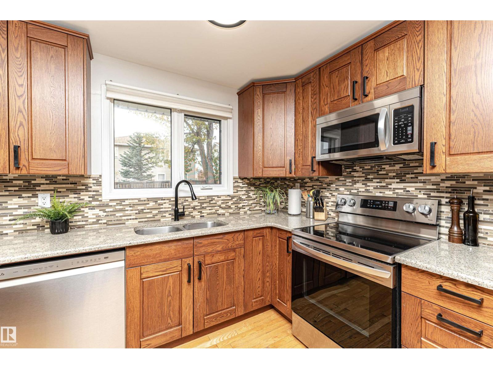 Quietly nestled on a peaceful cul-de-sac in Akinsdale, this fully RENOVATED 4-level split boasts STUNNING curb appeal & thoughtful modern updates throughout. The bright main floor features a cozy electric fireplace, BAY window, OAK hardwood floors & a CHEF-inspired kitchen W/a huge island, QAURTZ countertops, MOSAIC backsplash, soft-close cabinets W/modern hardware, OVERSIZED uppers, SS appliances & abundant storage—perfect for family living or entertaining. Upstairs, the primary suite offers double French doors leading to a private deck surrounded by mature trees, a 3-pc ensuite, plus two spacious bedrooms & an updated main bath. The first lower level includes a fourth bedroom & a 3-pc bath, while the lowest level highlights a SOUNDPROOFED media room & tidy laundry area. Outside, enjoy a private landscaped yard W/NEW fascia, soffit, gutters & downspouts, an OVERSIZED detached single garage & A/C for year-round comfort. Ideally located near schools, parks & trails this MOVE IN ready home truly has it all! (id:42720)