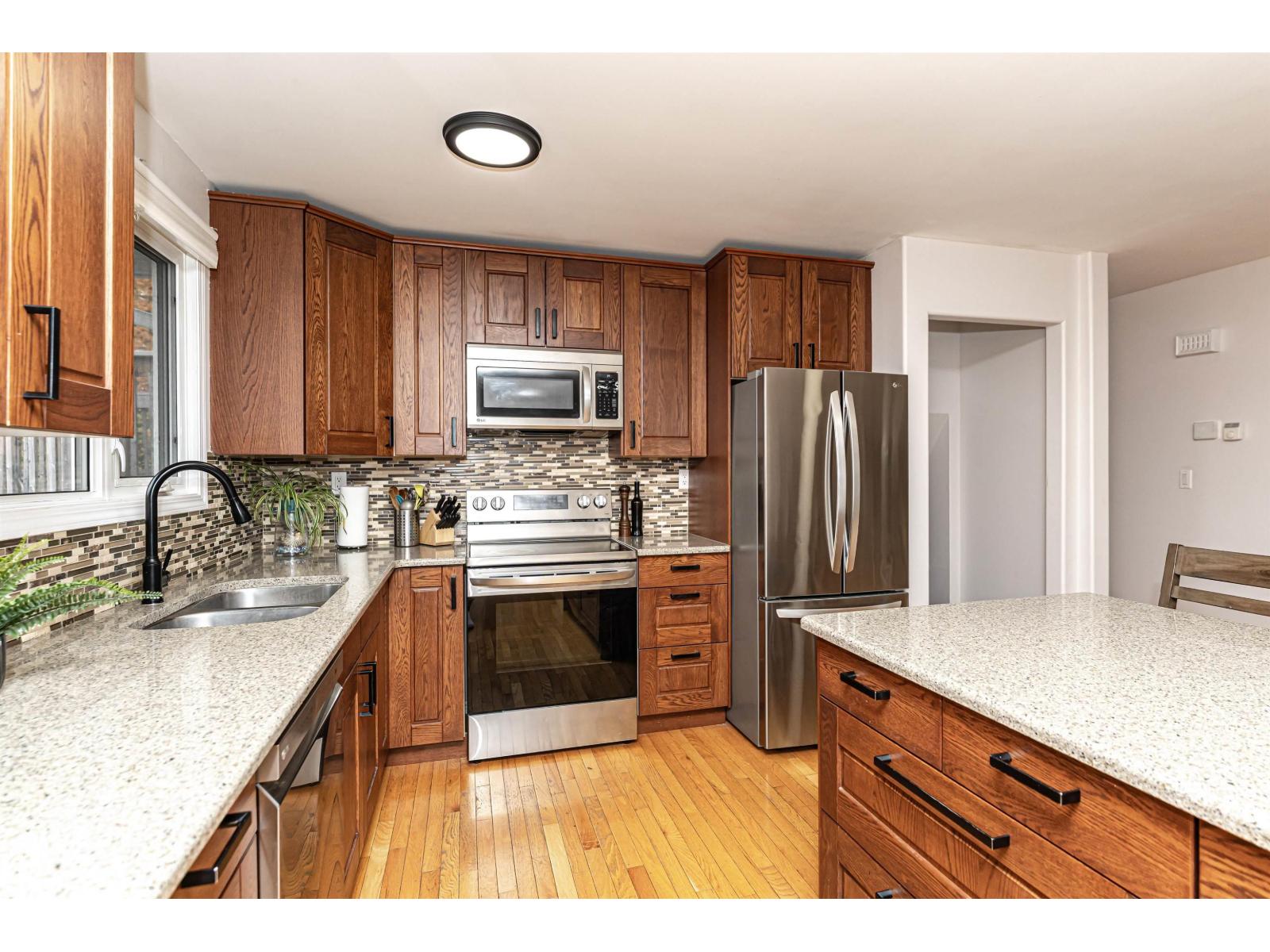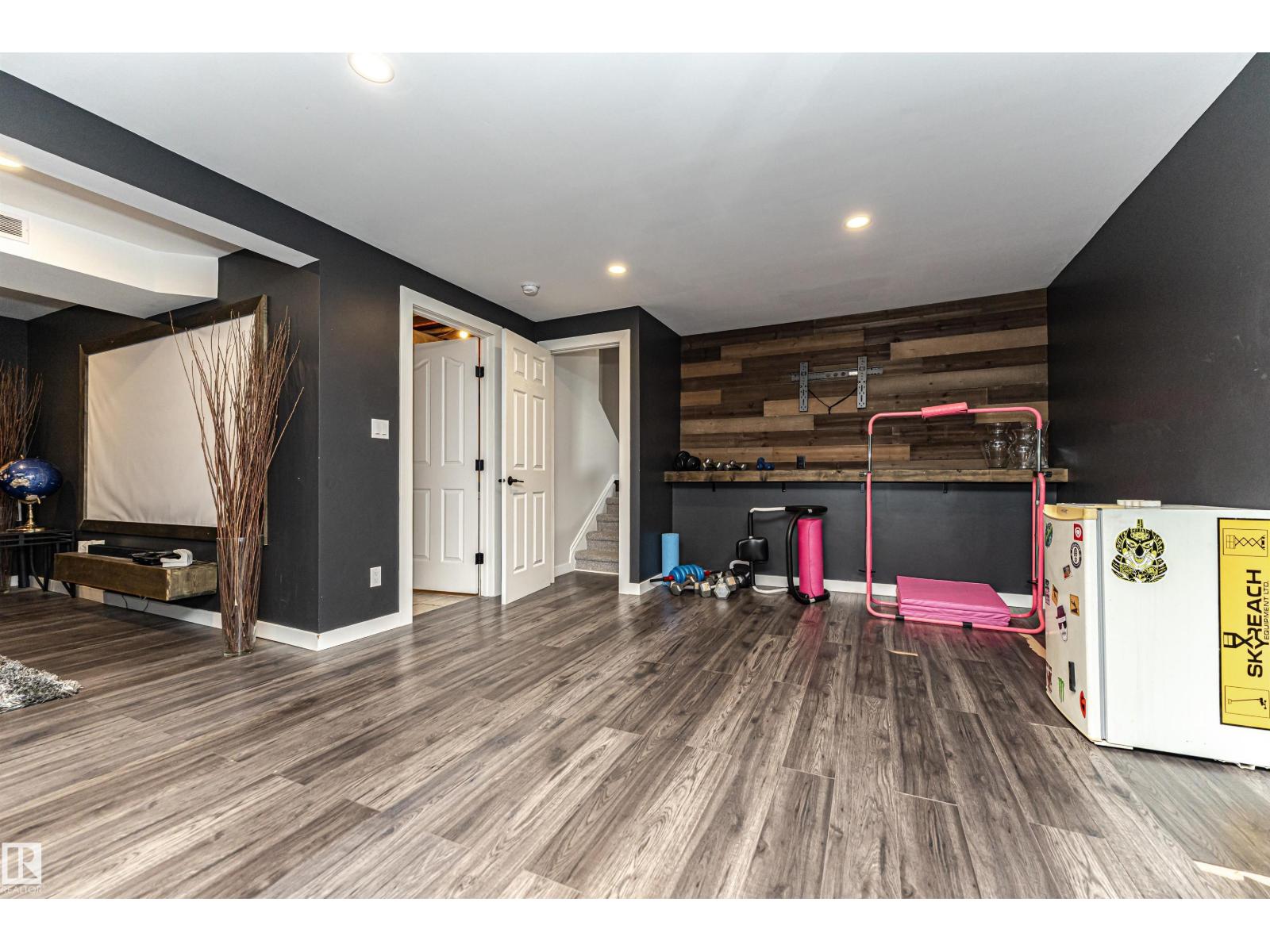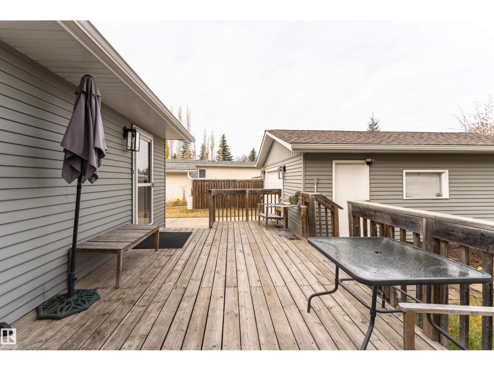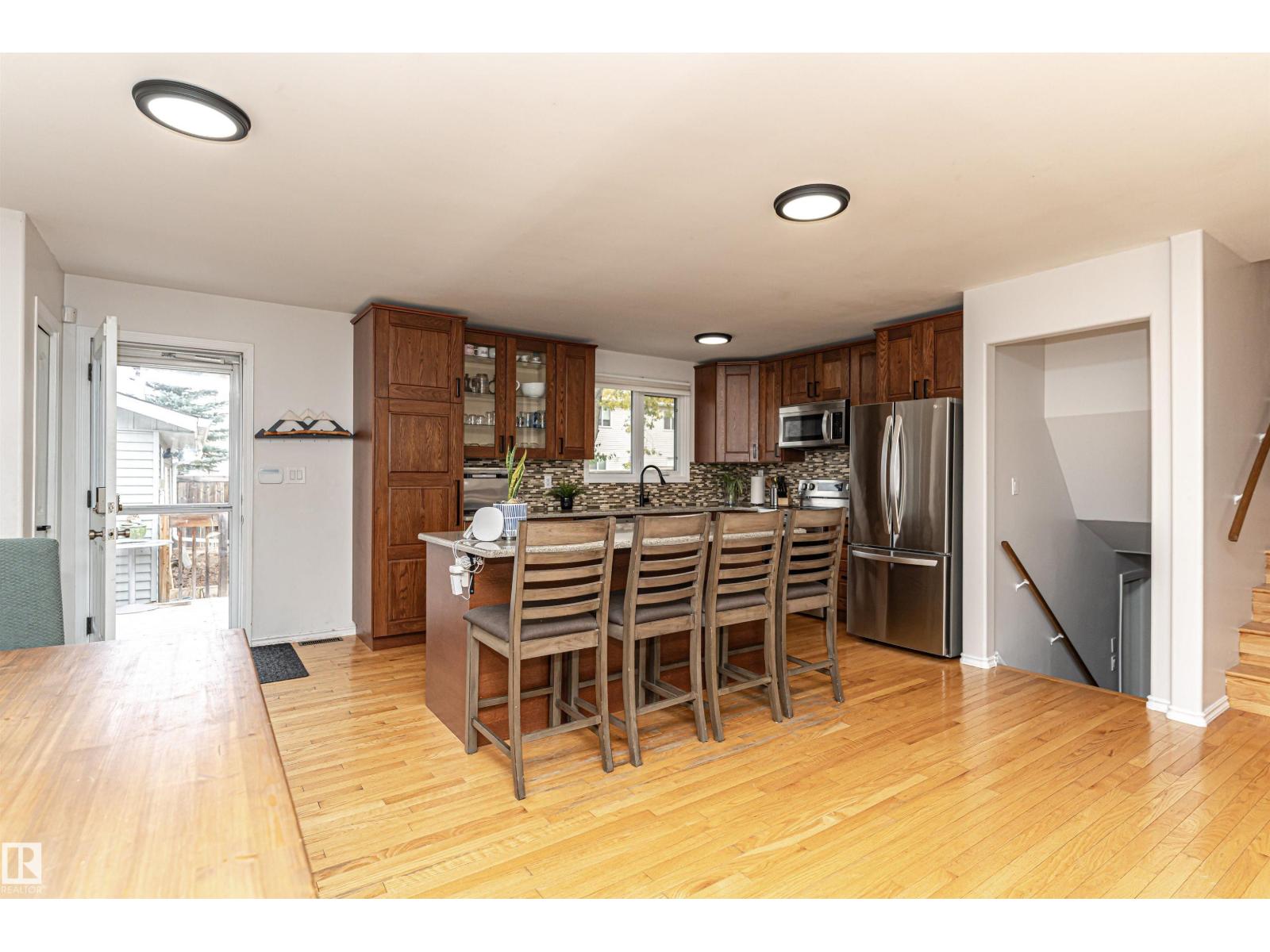Quietly nestled on a peaceful cul-de-sac in Akinsdale, this fully RENOVATED 4-level split boasts STUNNING curb appeal & thoughtful modern updates throughout. The bright main floor features a cozy electric fireplace, BAY window, OAK hardwood floors & a CHEF-inspired kitchen W/a huge island, QAURTZ countertops, MOSAIC backsplash, soft-close cabinets W/modern hardware, OVERSIZED uppers, SS appliances & abundant storage—perfect for family living or entertaining. Upstairs, the primary suite offers double French doors leading to a private deck surrounded by mature trees, a 3-pc ensuite, plus two spacious bedrooms & an updated main bath. The first lower level includes a fourth bedroom & a 3-pc bath, while the lowest level highlights a SOUNDPROOFED media room & tidy laundry area. Outside, enjoy a private landscaped yard W/NEW fascia, soffit, gutters & downspouts, an OVERSIZED detached single garage & A/C for year-round comfort. Ideally located near schools, parks & trails this MOVE IN ready home truly has it all! (id:42720)