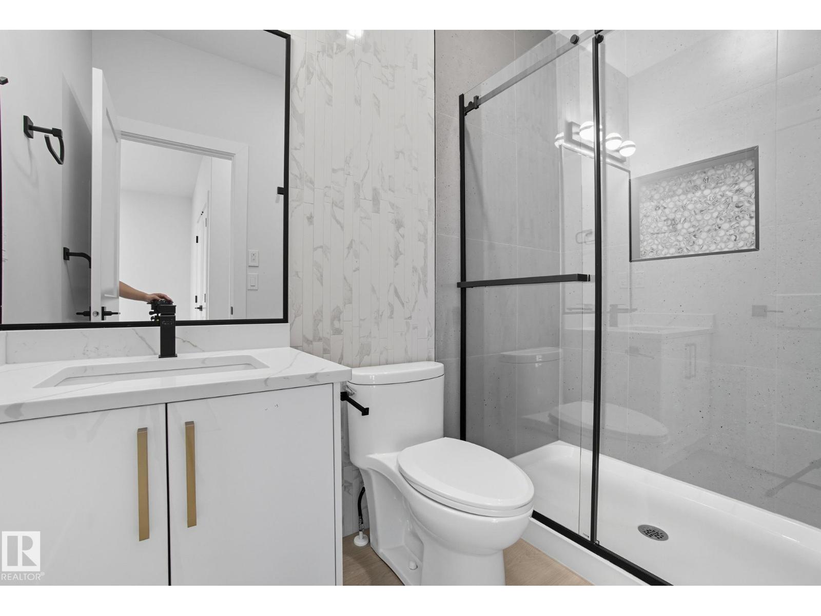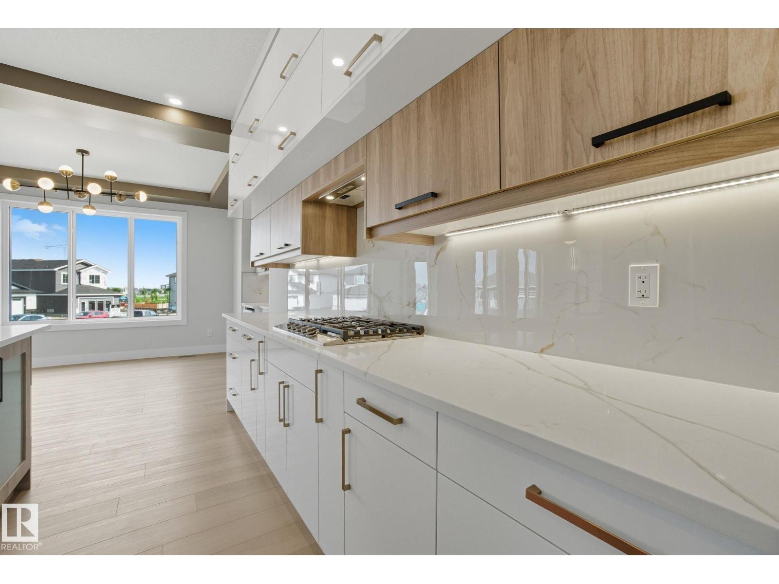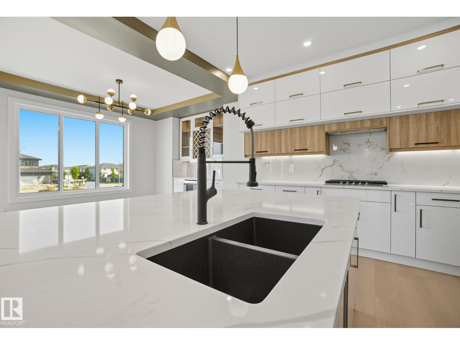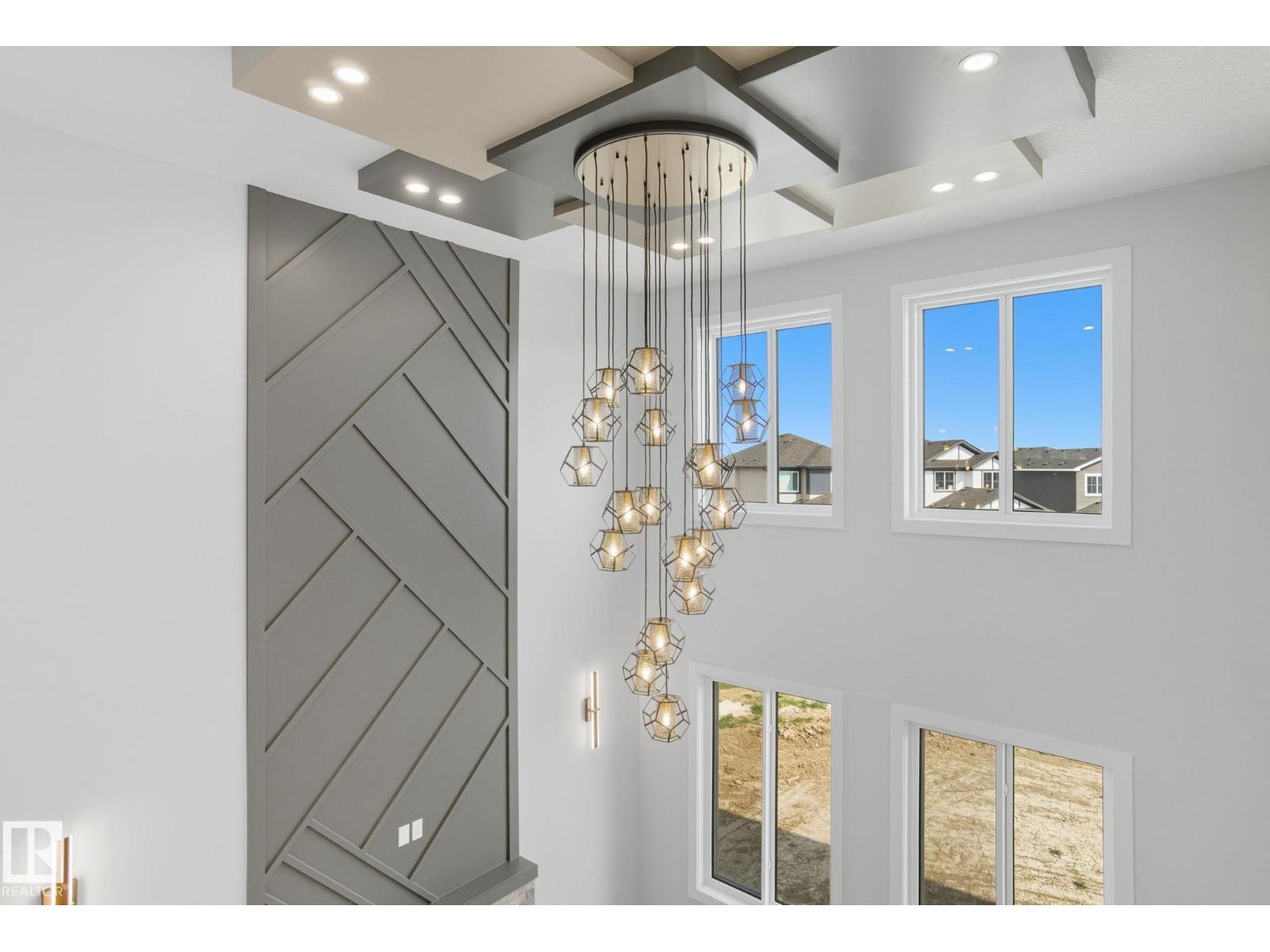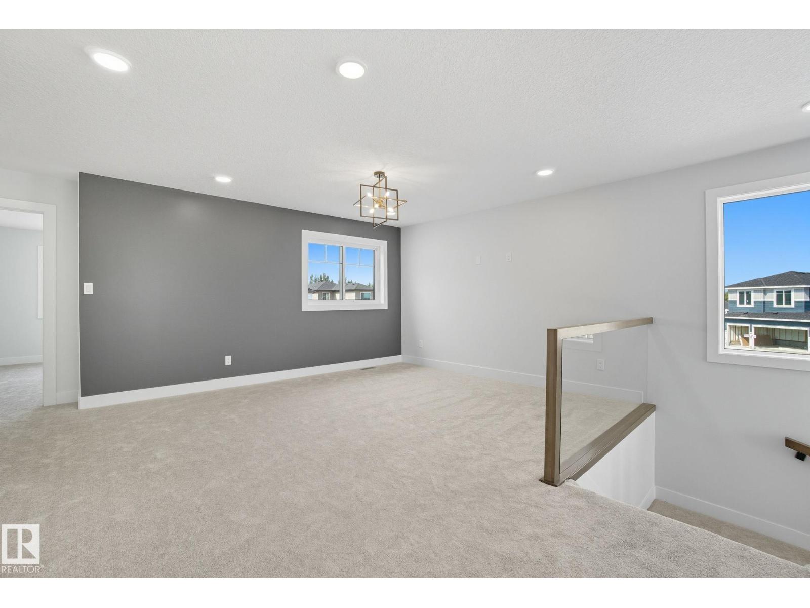 Built by Sunnyview Homes. 4 bedrooms and 3 full bathrooms. TRIPLE car garage w/huge driveway. This stunning home offers a main floor bedroom and full bathroom. The spacious open to below great room features a beautiful accent wall with electric fireplace. The upgraded kitchen boasts sleek ceiling height cabinetry, a walkthrough pantry and a nook with a built-in beverage station. The mudroom offers double coat closets w/a built in bench. A glass railing staircase with maple handrail and step lighting leads to the upper level central bonus room. The primary suite showcases a coffered ceiling and barn door entry to a spa like en-suite with double vanity, jacuzzi, custom glass-enclosed shower, and a WIC with MDF shelving. 2 additional bedrooms share a 4-piece bathroom. Finished with modern upgrades and quality craftsmanship throughout. Features, 3 gas lines, quartz, designer lighting pkg, plush carpet, accent walls, garage w/drain and hot/cold water lines. SEPARATE side entrance to the basement. (id:42720)