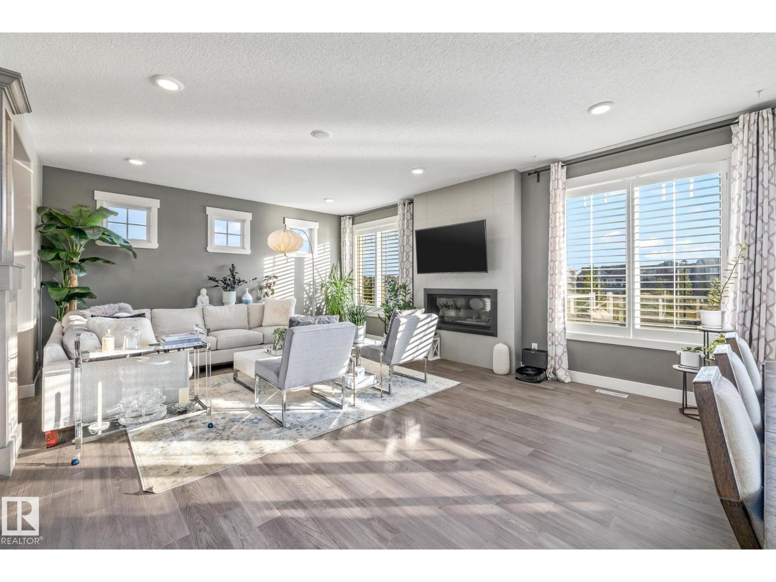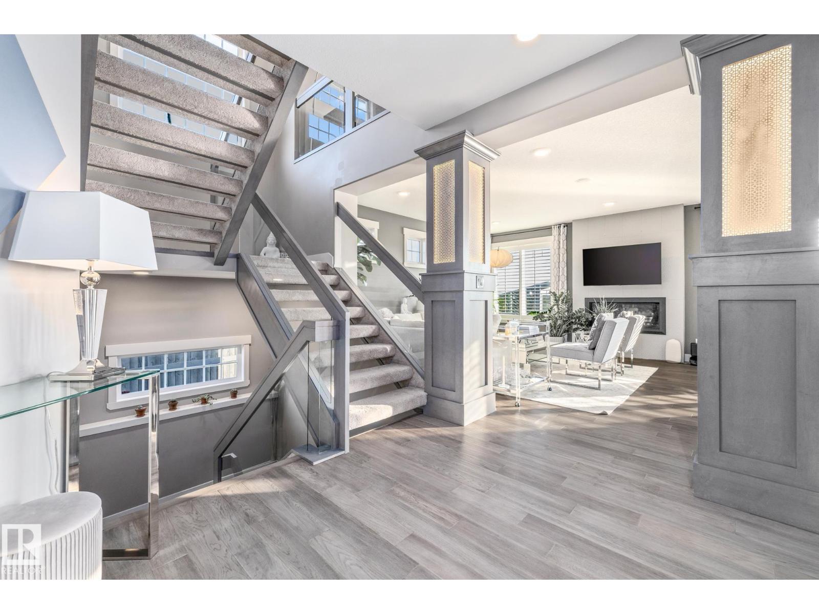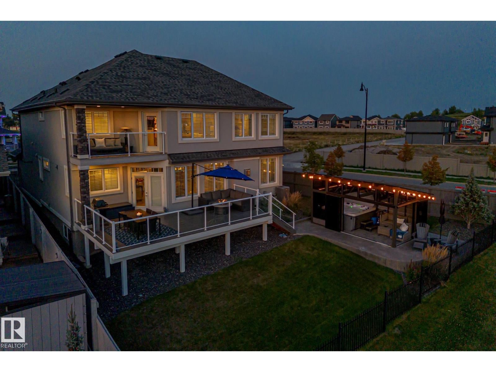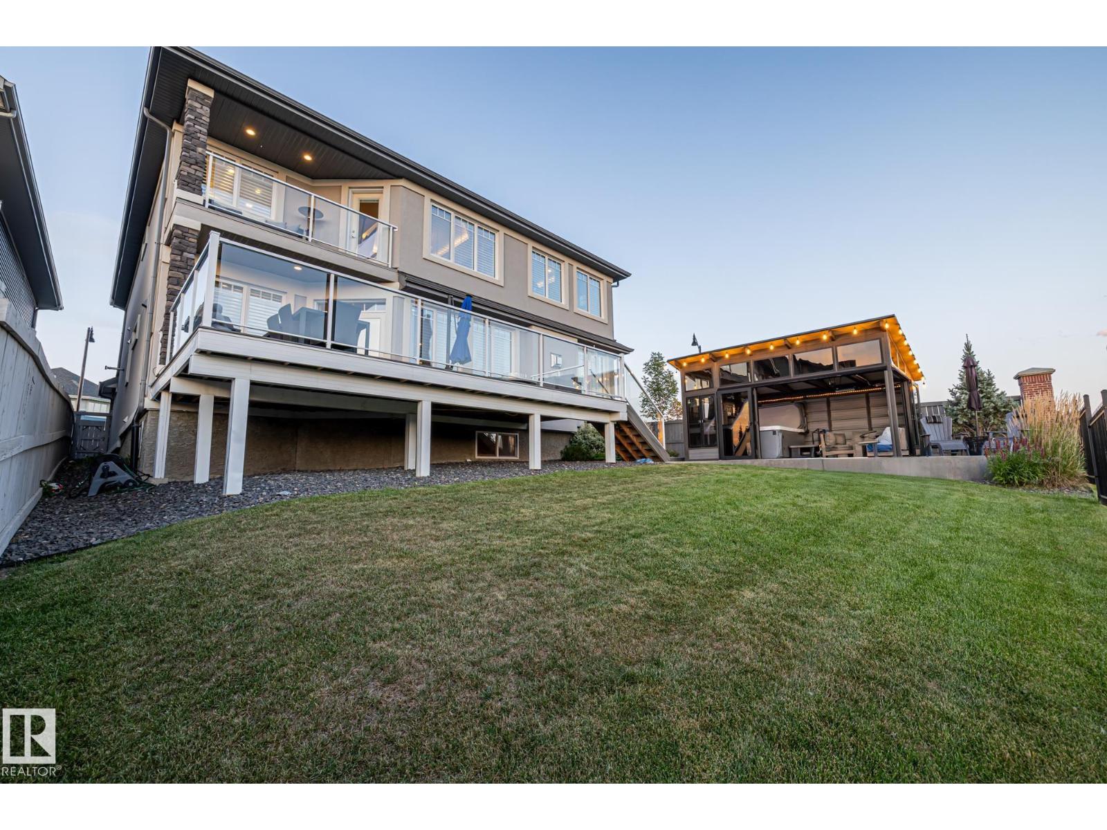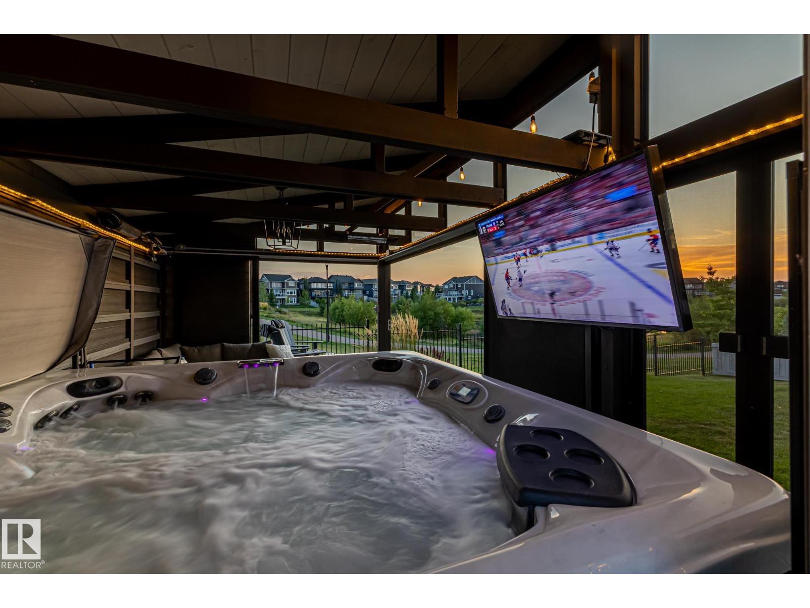 Style & elegance welcomes you to this luxurious former “lottery” home backing the lake& green space,in the prestigious community of Griesbach.With a modern colour palette,this home has all the upgrades you can imagine.The stunning open layout features a designer kitchen w/upgraded chef’s appliances,high-end cabinets,quartz& walk through pantry.The living room has hardwood floors(extending through)& a cozy gas fireplace.There is a front den,foyer,2pc bath+mud room.The primary retreat boasts a balcony w/views of the lake,a 5pc spa ensuite+custom walk-in closet(w/access to the laundry room).The second level is complete w/a media room,two spacious bedrooms& a 4pc bath.Enjoy the beautifully landscaped southwest facing backyard w/$95K in upgrades,including a heated outdoor room(w/hot tub,lounge area&TV),concrete pad&oversized composite deck.Upgrades:Cabinets,Coffered Ceilings,Lighting,LED Shower,Custom Window Shutters,Finished Heated Oversized Garage(w/EV),A/C...The list is endless!Welcome to your dream home! (id:42720)