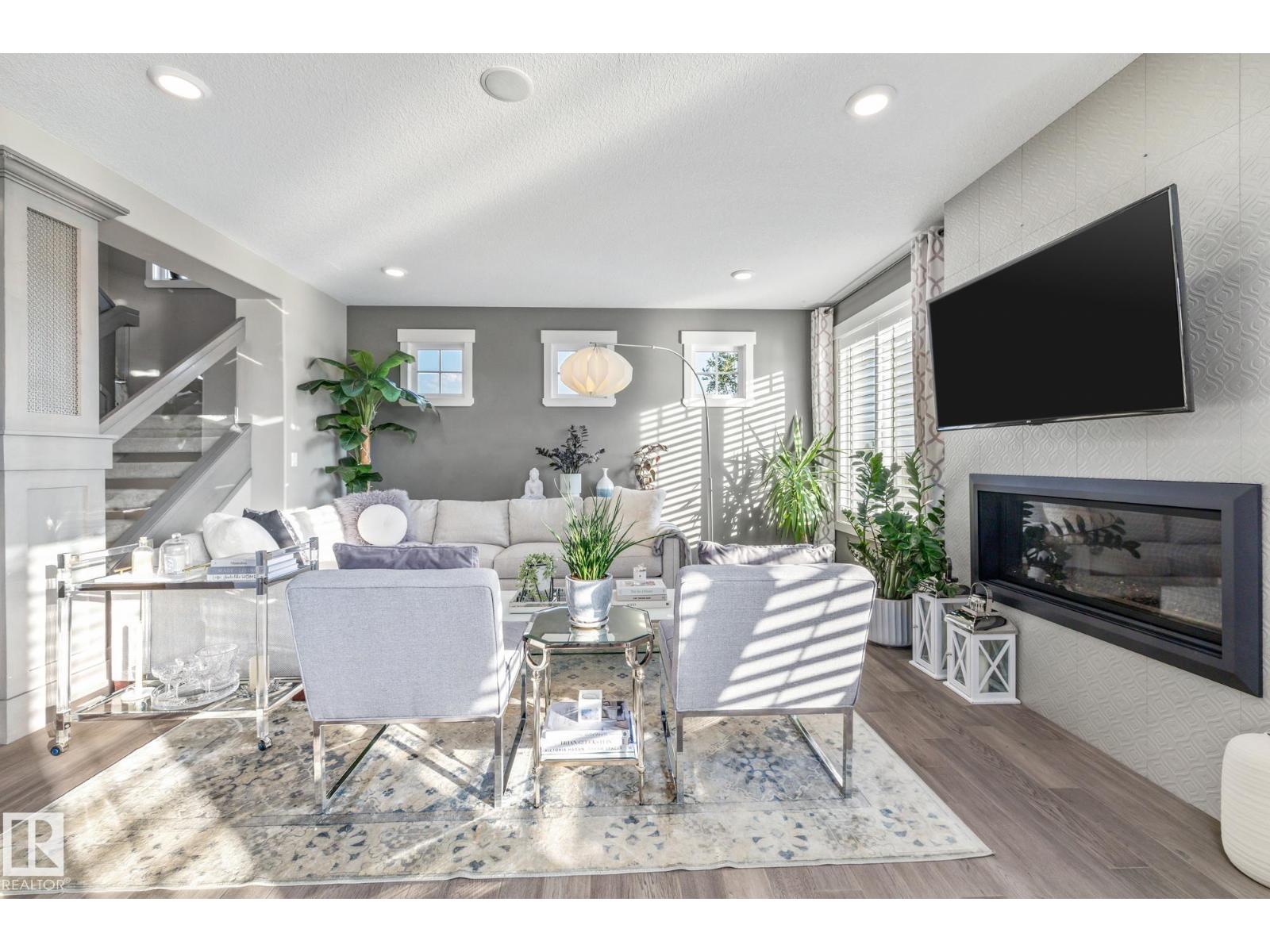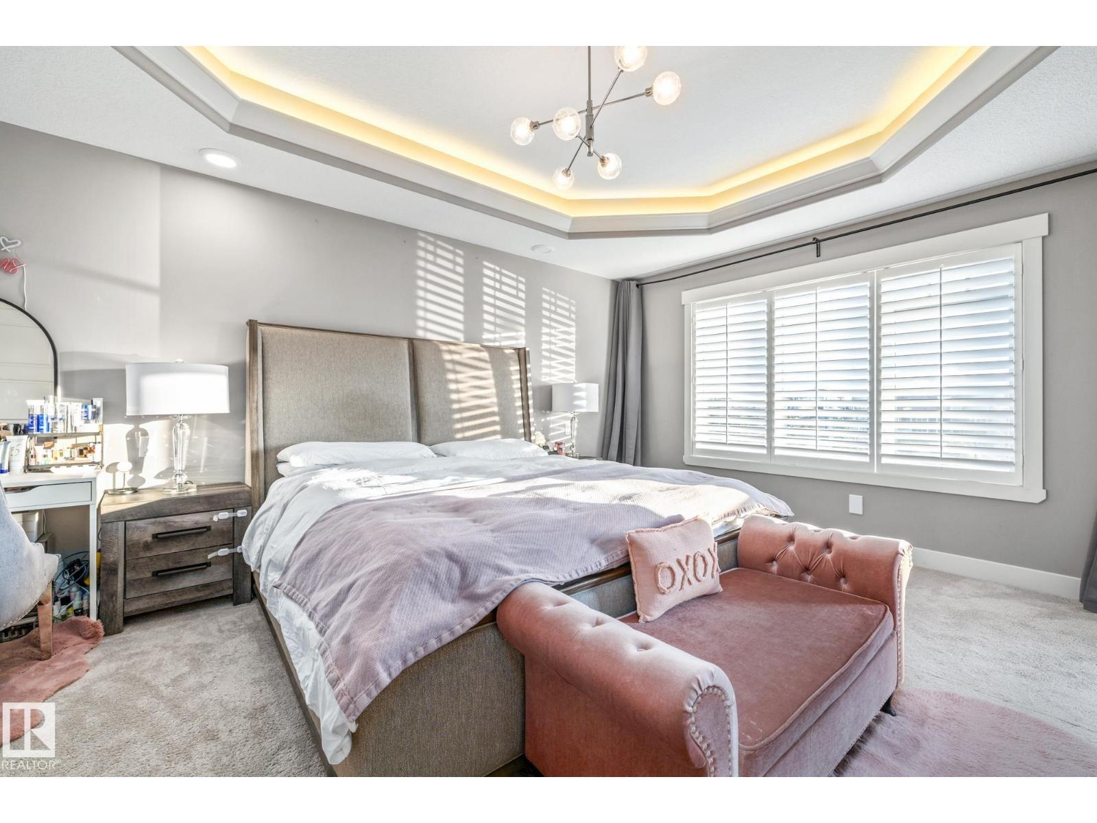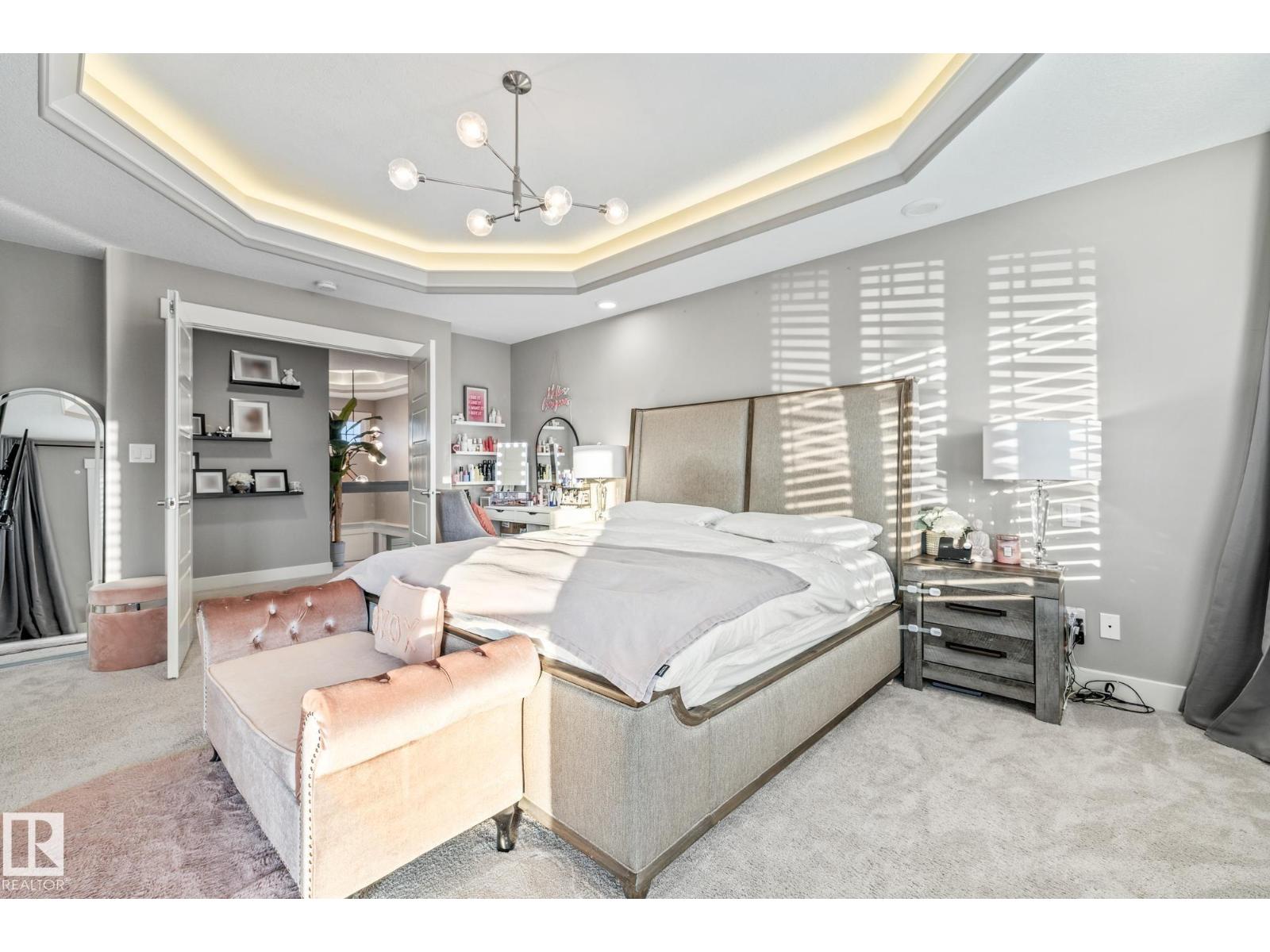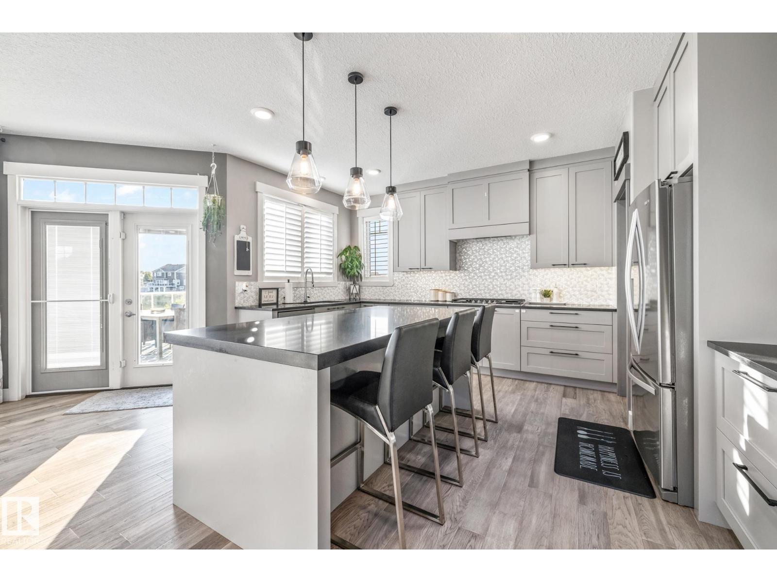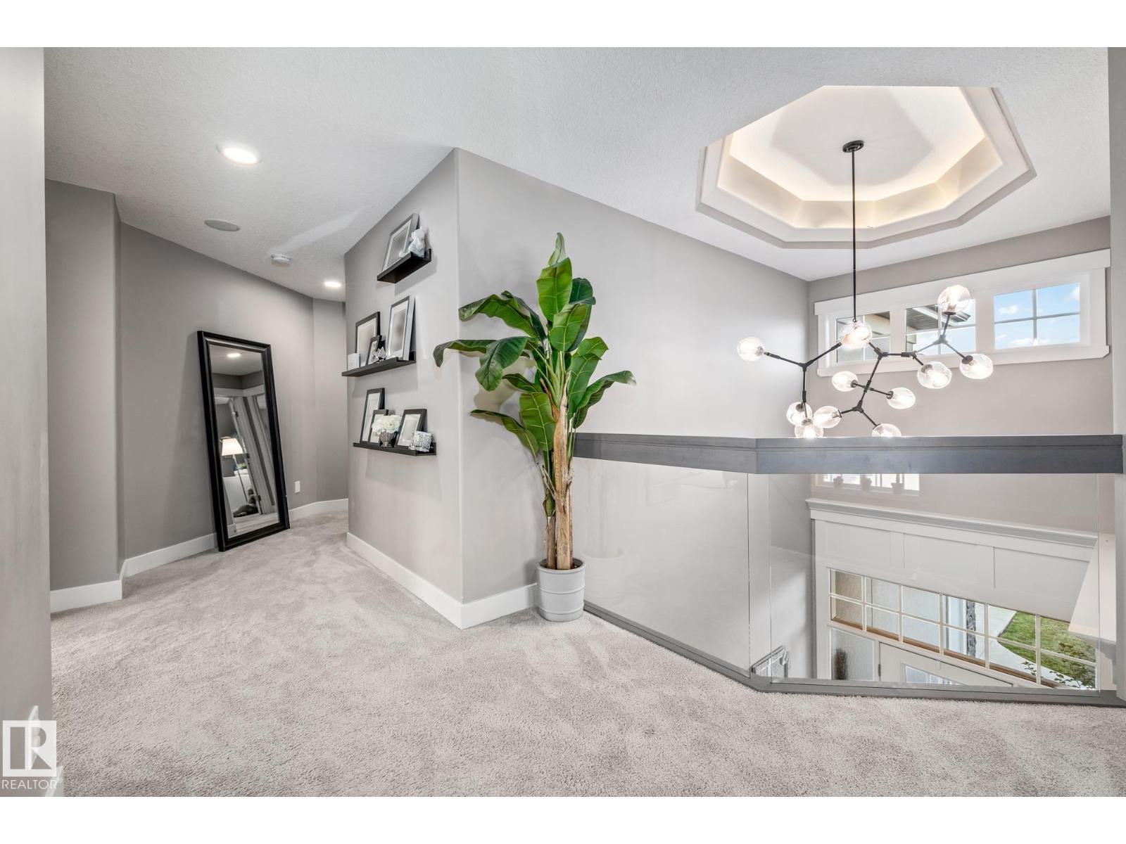 Style & elegance welcomes you to this luxurious former “lottery” home backing the lake& green space,in the prestigious community of Griesbach.With a modern colour palette,this home has all the upgrades you can imagine.The stunning open layout features a designer kitchen w/upgraded chef’s appliances,high-end cabinets,quartz& walk through pantry.The living room has hardwood floors(extending through)& a cozy gas fireplace.There is a front den,foyer,2pc bath+mud room.The primary retreat boasts a balcony w/views of the lake,a 5pc spa ensuite+custom walk-in closet(w/access to the laundry room).The second level is complete w/a media room,two spacious bedrooms& a 4pc bath.Enjoy the beautifully landscaped southwest facing backyard w/$95K in upgrades,including a heated outdoor room(w/hot tub,lounge area&TV),concrete pad&oversized composite deck.Upgrades:Cabinets,Coffered Ceilings,Lighting,LED Shower,Custom Window Shutters,Finished Heated Oversized Garage(w/EV),A/C...The list is endless!Welcome to your dream home! (id:42720)