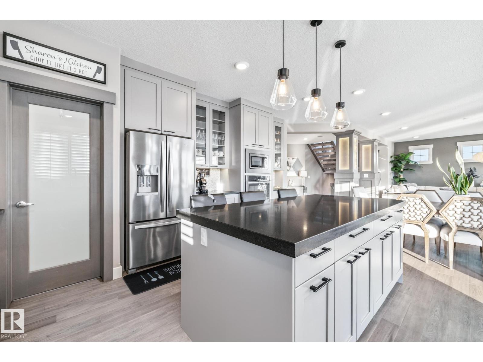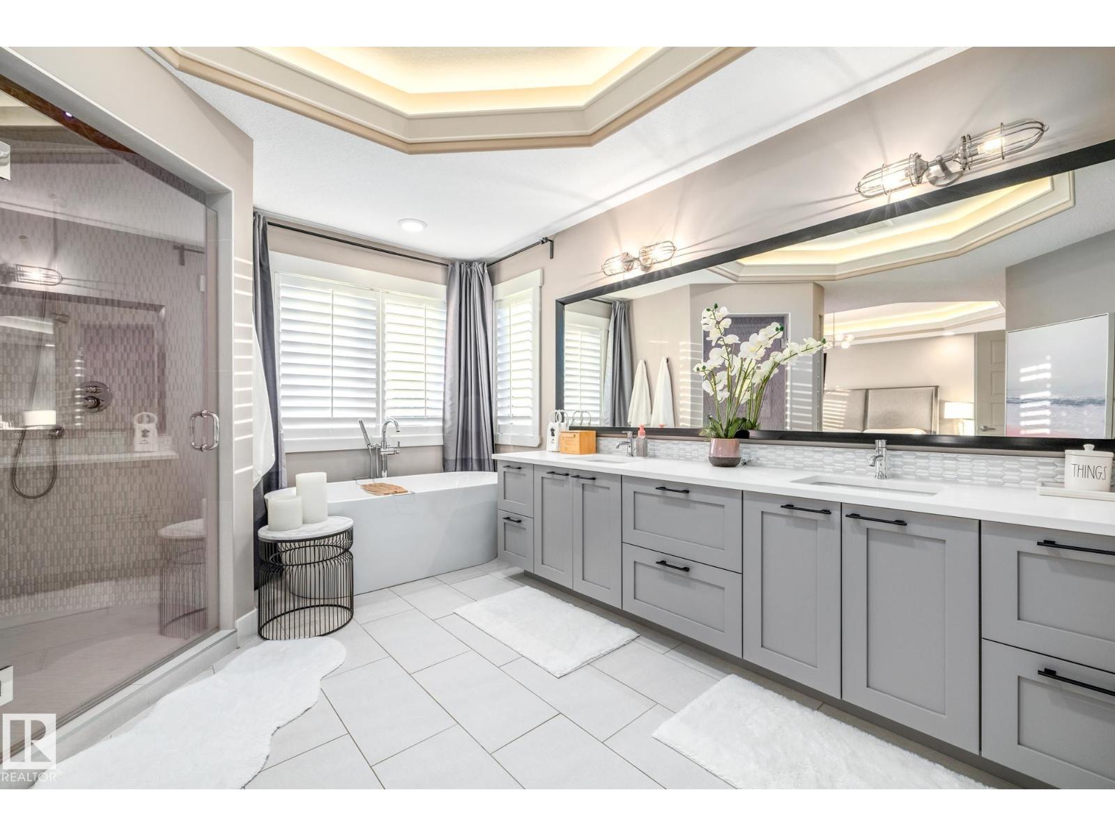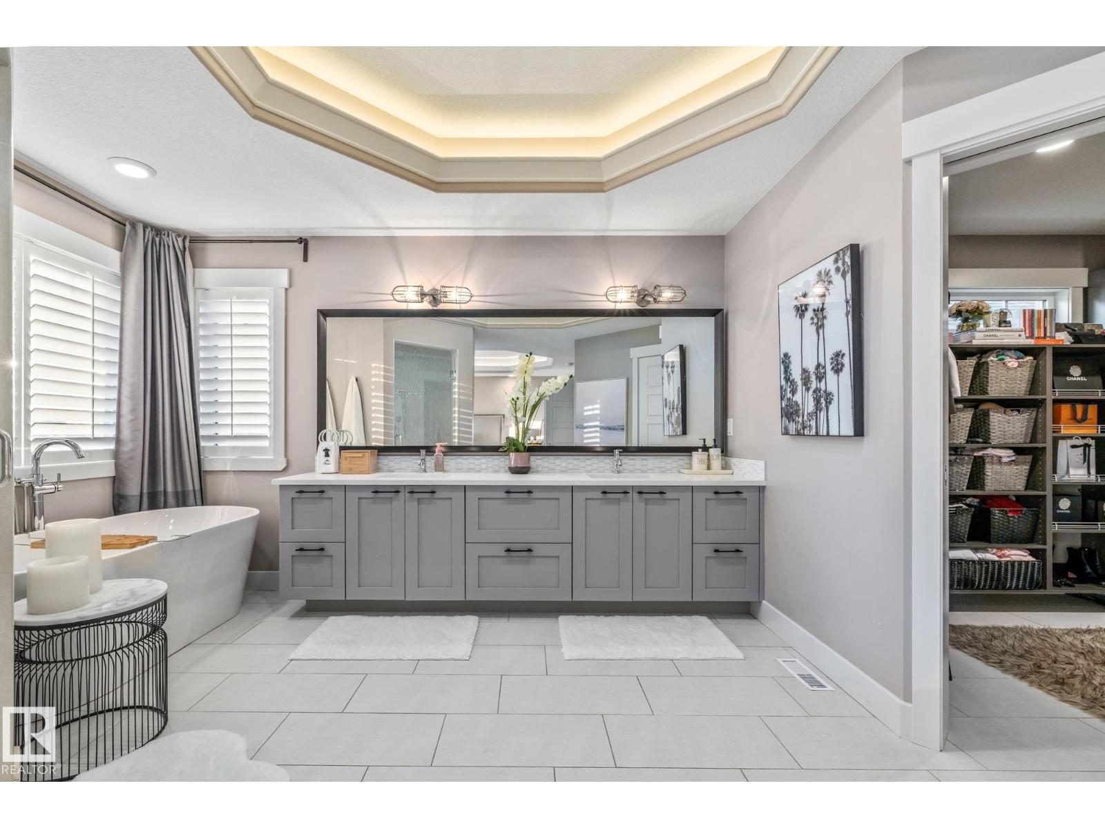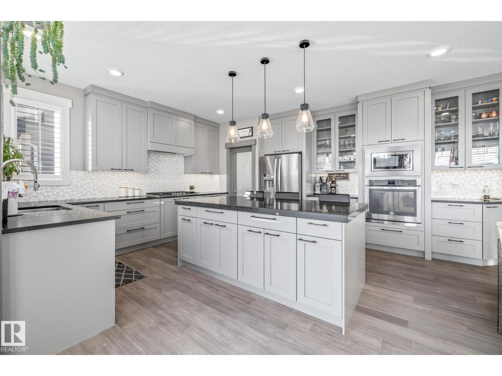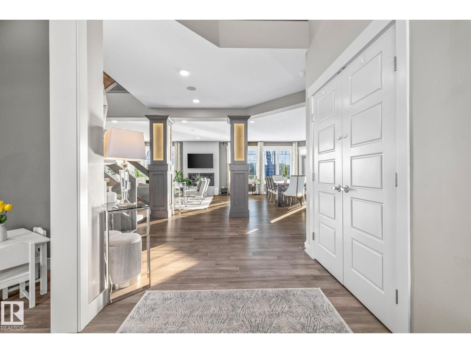 Style & elegance welcomes you to this luxurious former “lottery” home backing the lake& green space,in the prestigious community of Griesbach.With a modern colour palette,this home has all the upgrades you can imagine.The stunning open layout features a designer kitchen w/upgraded chef’s appliances,high-end cabinets,quartz& walk through pantry.The living room has hardwood floors(extending through)& a cozy gas fireplace.There is a front den,foyer,2pc bath+mud room.The primary retreat boasts a balcony w/views of the lake,a 5pc spa ensuite+custom walk-in closet(w/access to the laundry room).The second level is complete w/a media room,two spacious bedrooms& a 4pc bath.Enjoy the beautifully landscaped southwest facing backyard w/$95K in upgrades,including a heated outdoor room(w/hot tub,lounge area&TV),concrete pad&oversized composite deck.Upgrades:Cabinets,Coffered Ceilings,Lighting,LED Shower,Custom Window Shutters,Finished Heated Oversized Garage(w/EV),A/C...The list is endless!Welcome to your dream home! (id:42720)