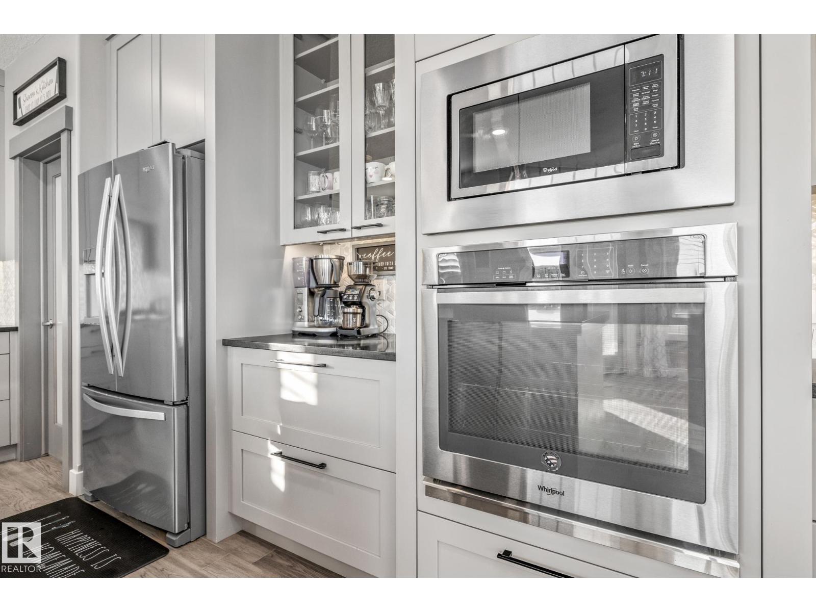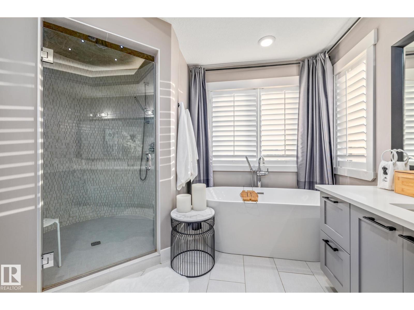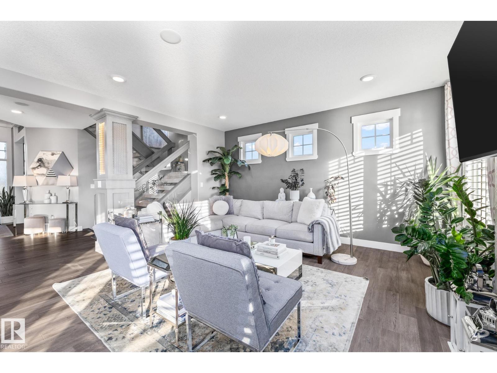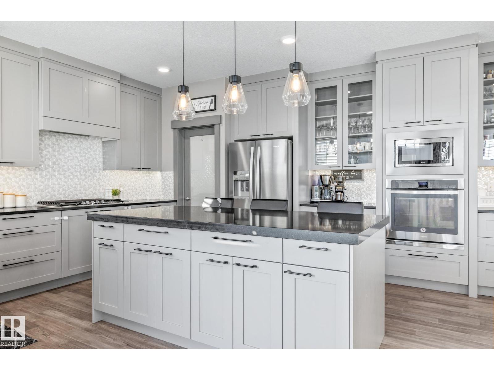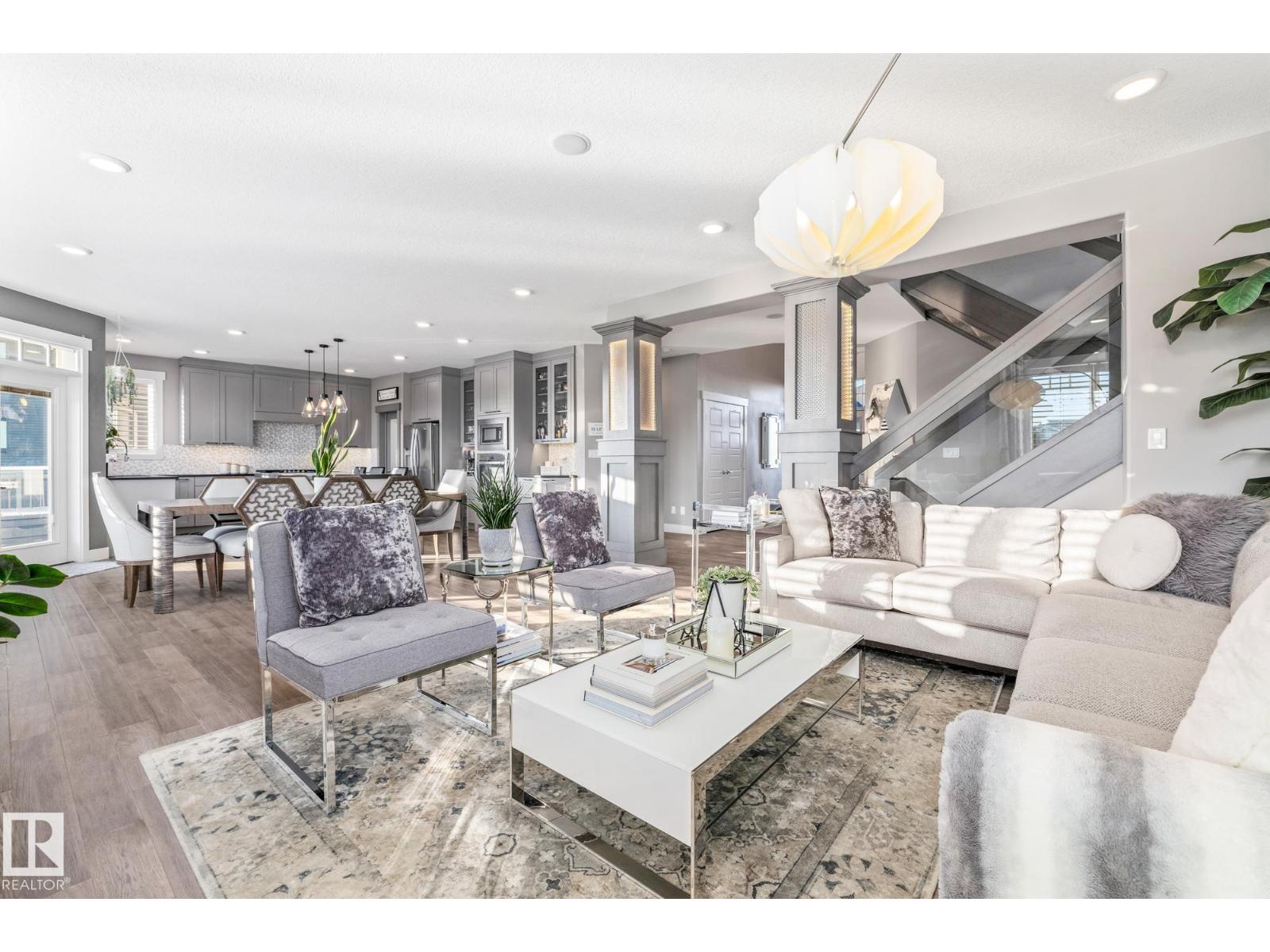 Style & elegance welcomes you to this luxurious former “lottery” home backing the lake& green space,in the prestigious community of Griesbach.With a modern colour palette,this home has all the upgrades you can imagine.The stunning open layout features a designer kitchen w/upgraded chef’s appliances,high-end cabinets,quartz& walk through pantry.The living room has hardwood floors(extending through)& a cozy gas fireplace.There is a front den,foyer,2pc bath+mud room.The primary retreat boasts a balcony w/views of the lake,a 5pc spa ensuite+custom walk-in closet(w/access to the laundry room).The second level is complete w/a media room,two spacious bedrooms& a 4pc bath.Enjoy the beautifully landscaped southwest facing backyard w/$95K in upgrades,including a heated outdoor room(w/hot tub,lounge area&TV),concrete pad&oversized composite deck.Upgrades:Cabinets,Coffered Ceilings,Lighting,LED Shower,Custom Window Shutters,Finished Heated Oversized Garage(w/EV),A/C...The list is endless!Welcome to your dream home! (id:42720)