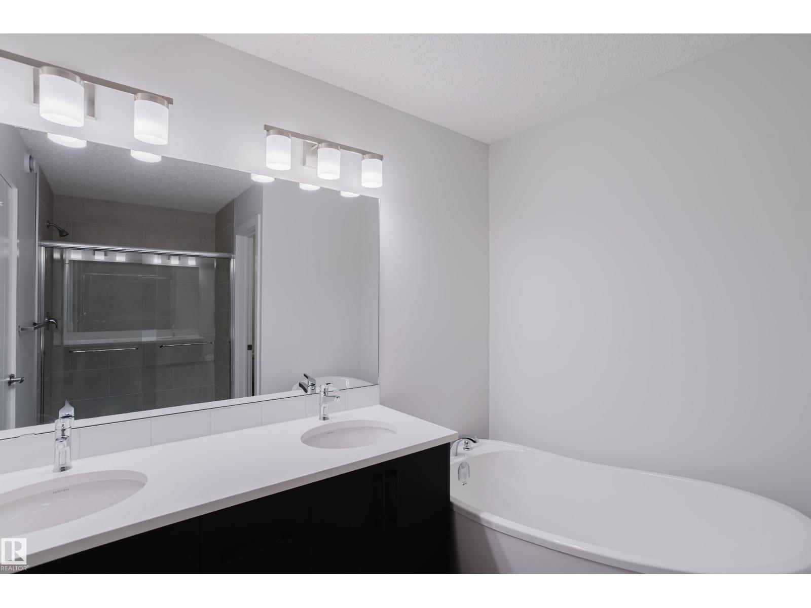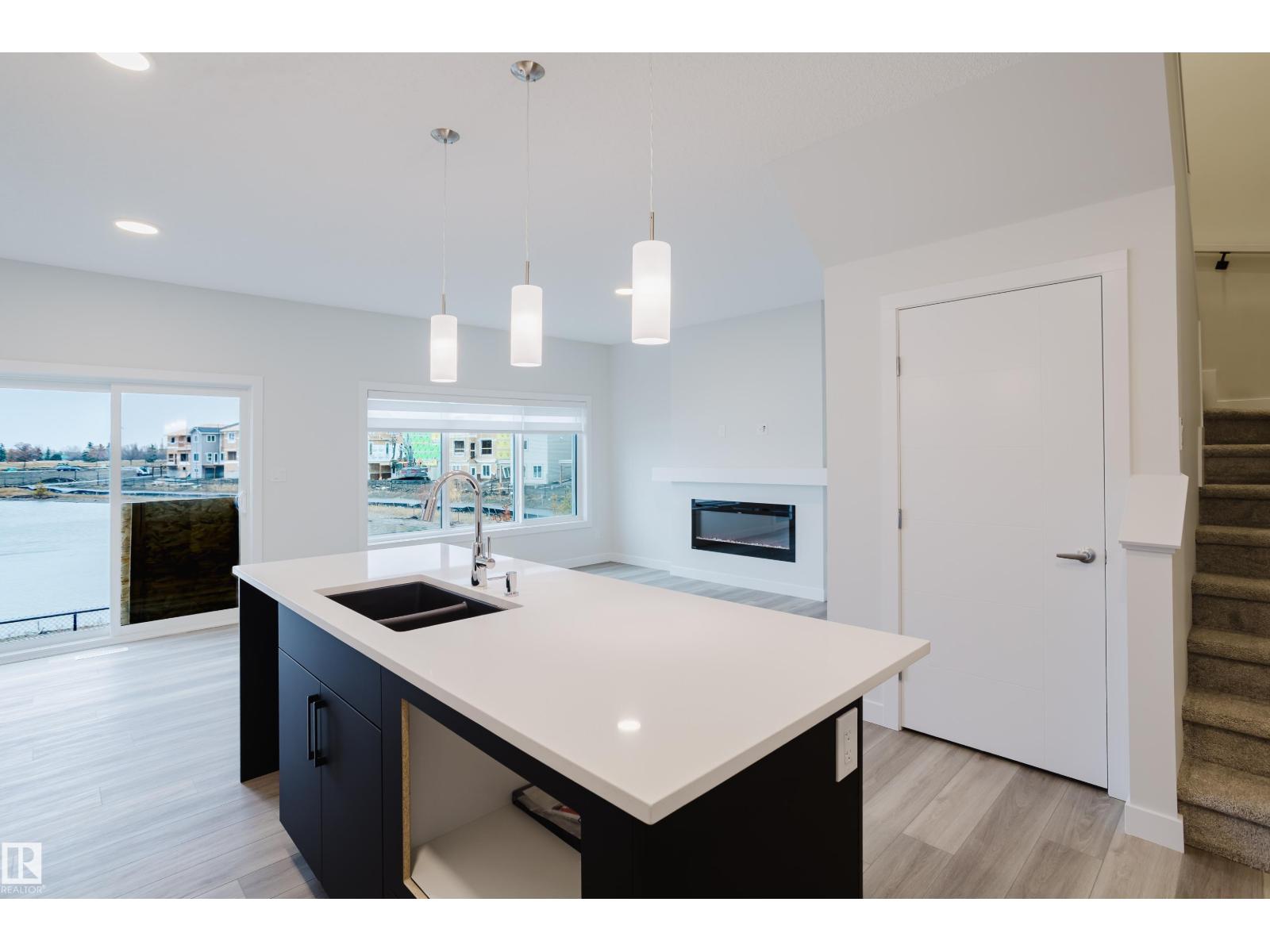 This screams, MINE!! Wouldn’t you love to back a pond in the community of Ruisseau? Well now is your chance, but this one might not last long. This is The Vision built by Look Master Builder with just over 1970 SQFT, this home has so many great features including a side entrance for future suite potential. The main floor is a open concept kitchen/dining and living space with features such as, large eat up island with stone counters, two toned soft close cabinetry, upgraded backsplash, large windows looking out to the water, electric fireplace with mantle, oh and don’t forget the main floor den. Upstairs you will find vaulted ceilings in the primary bedroom, 5 pcs bathroom (soaker tub, 2 sinks and separate shower), with a walk-in closet, 3 more good sized rooms, bonus room, laundry and 4pcs bath complete this level. Other features include 2’ added to the garage (length), 9’ ceiling on the main, poplar railing with metal spindles and an appliance credit. This home is ready for you to move right in (id:42720)
