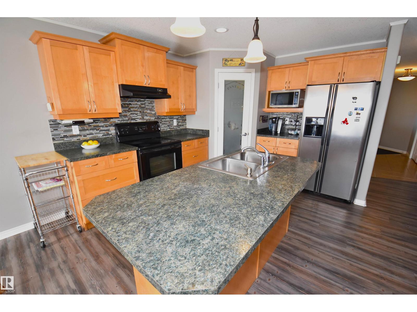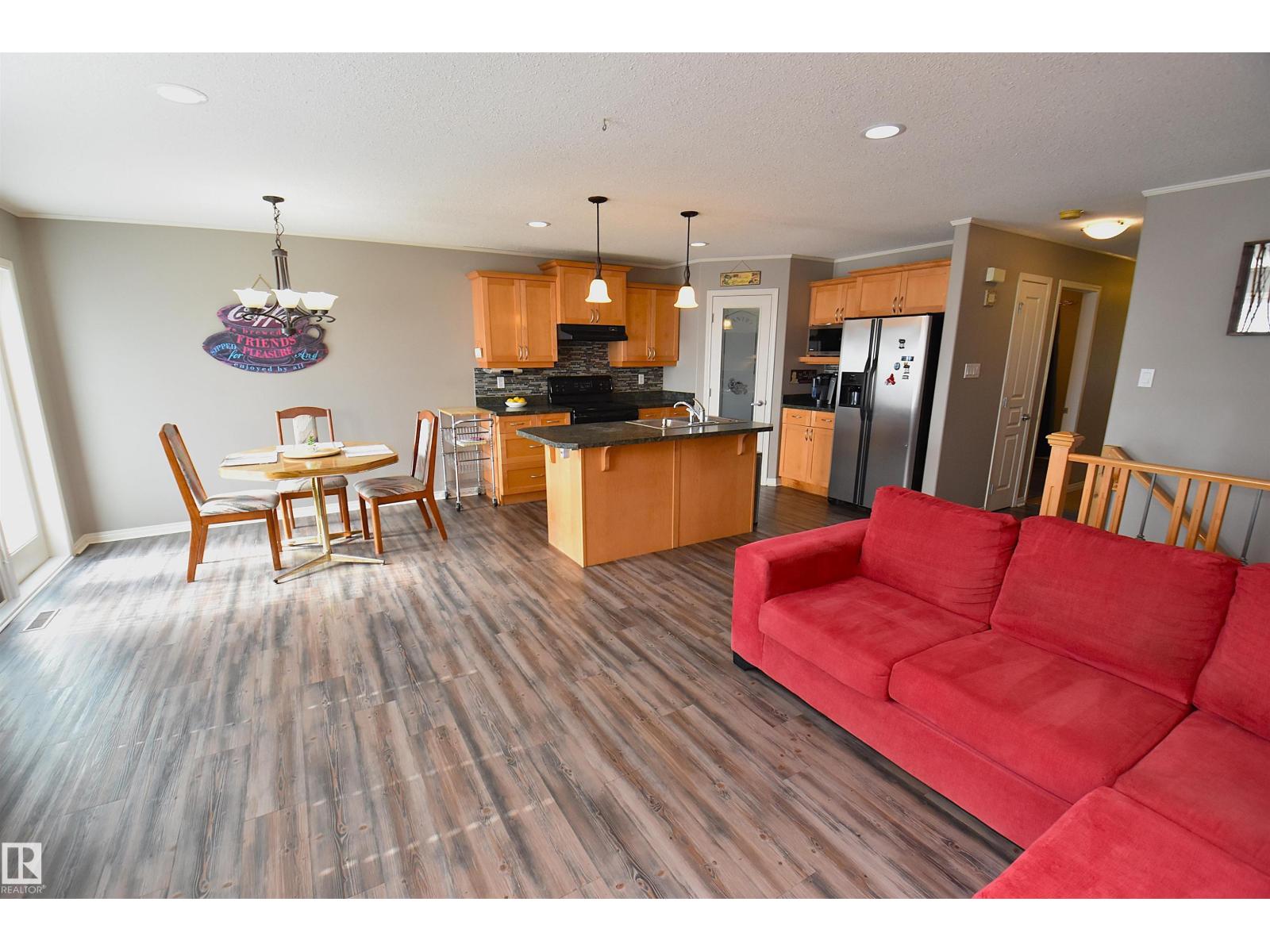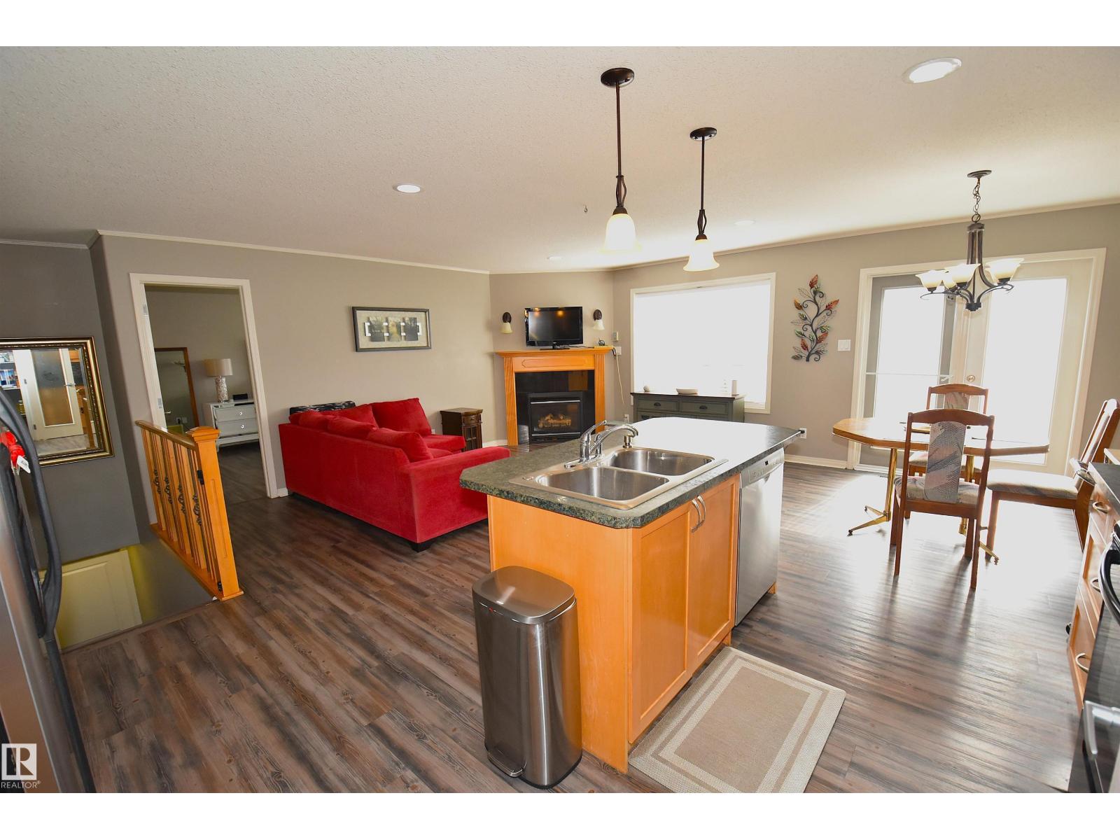 Exceptionally Designed 6 Bedroom Bungalow in a Great Neighborhood!! Welcoming Front Covered Deck to Relax and watch the Sunsets. Open Concept Main Floor Shows Kitchen w/Center Island, Corner Pantry, Pot Drawers, & Patio access off the Dining Room. Corner Mantel Fireplace in Living Room w/thermostat control. Spacious Primary Bedroom, Walk-in Closet,& Beautifully Upgraded 3PC Ensuite. Front Hall Separates two other Bedrooms, 4PC Bath, & Main Floor Laundry Room. Fresh Paint Updates (Fresh Painted Front Door) and Vinyl Flooring throughout Home. Fully Finished Basement with Huge Family Room & Roughed-in Waterline for Wet Bar. Three Large Bedrooms have Walk-in Closets. Also a 4PC Full Bath, Utility Room, & Storage Room under the stairs. Plenty of Space in this Family Home. Double Attached Heated Garage, Drain, 16' x 8' Garage Door, Ceiling 11 Ft H, Driveway 34'L x 20'W. South Facing Two Tiered back Deck, Good sized Backyard with a Large Shed for Storage. Close to Downtown and Schools. Nice Place to Call Home!!! (id:42720)