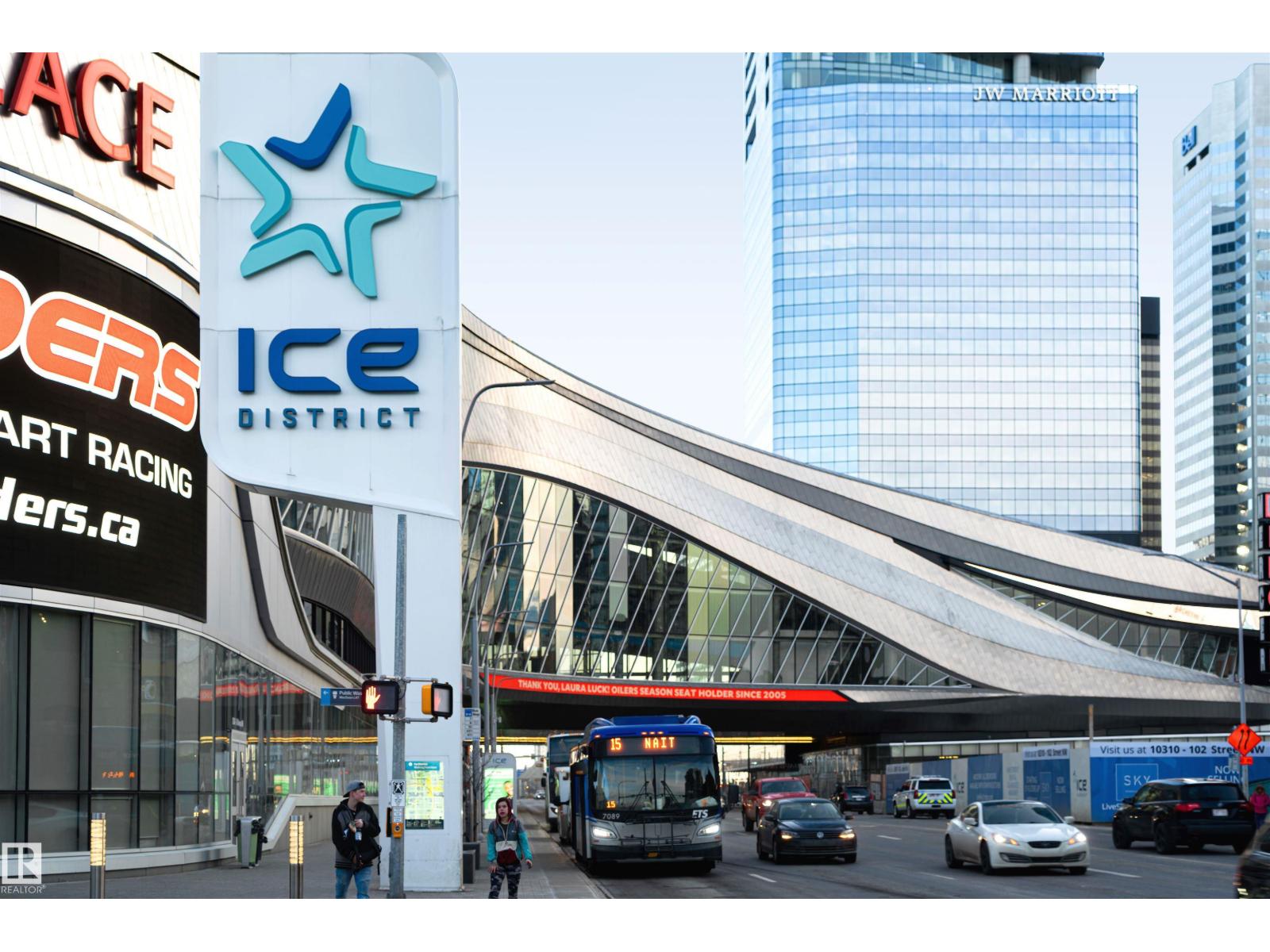 Spacious 2 BEDROOM+DEN, available at the Legends Private Residences! Appreciate beautiful RIVER VALLEY VIEWS from this high-floor East exposure, which clears Edmonton Tower. Favorite features include: High-Gloss Kitchen with Full-Size Integrated Appliances (gas), King-Size Primary Suite with Luxury Ensuite (walk-in shower + tub), roomy Interior Den/or Walk-In Pantry. Modern Luxuries include: Floor-to-Ceiling Windows, Tile Surfaces in Baths, Convenient In-Suite Laundry, and Individual Temperate Control (heat/ac). There’s More - ICE District’s central location encourages a walk-indoors experience with pedway access to Rogers Place, the financial core, groceries, public transit + so much more. Residents enjoy a variety of JW Marriott’s shared facilities, including an indoor pool, steam room and ARCHETYPE Fitness Facility. Additional services include 24/7 concierge/security presence, private resident lounge, outdoor dog-run and numerous dining choices at your doorstep! (id:42720)