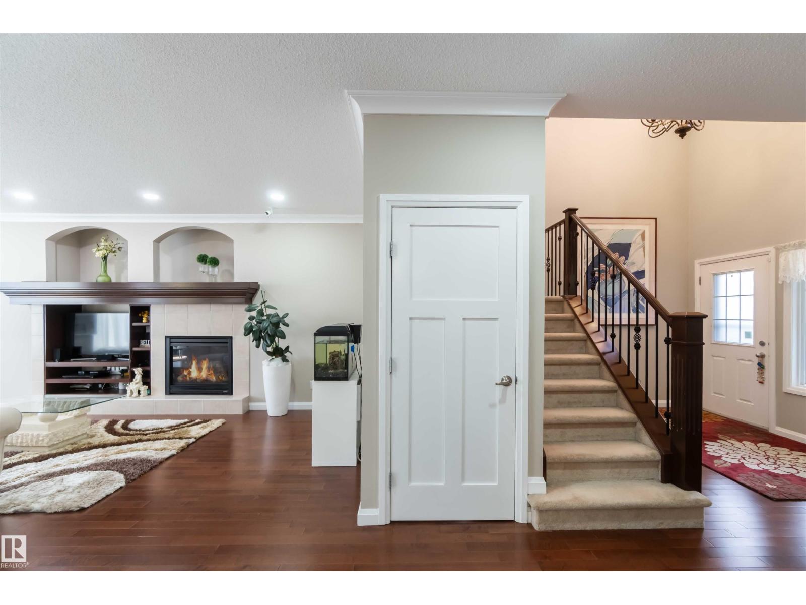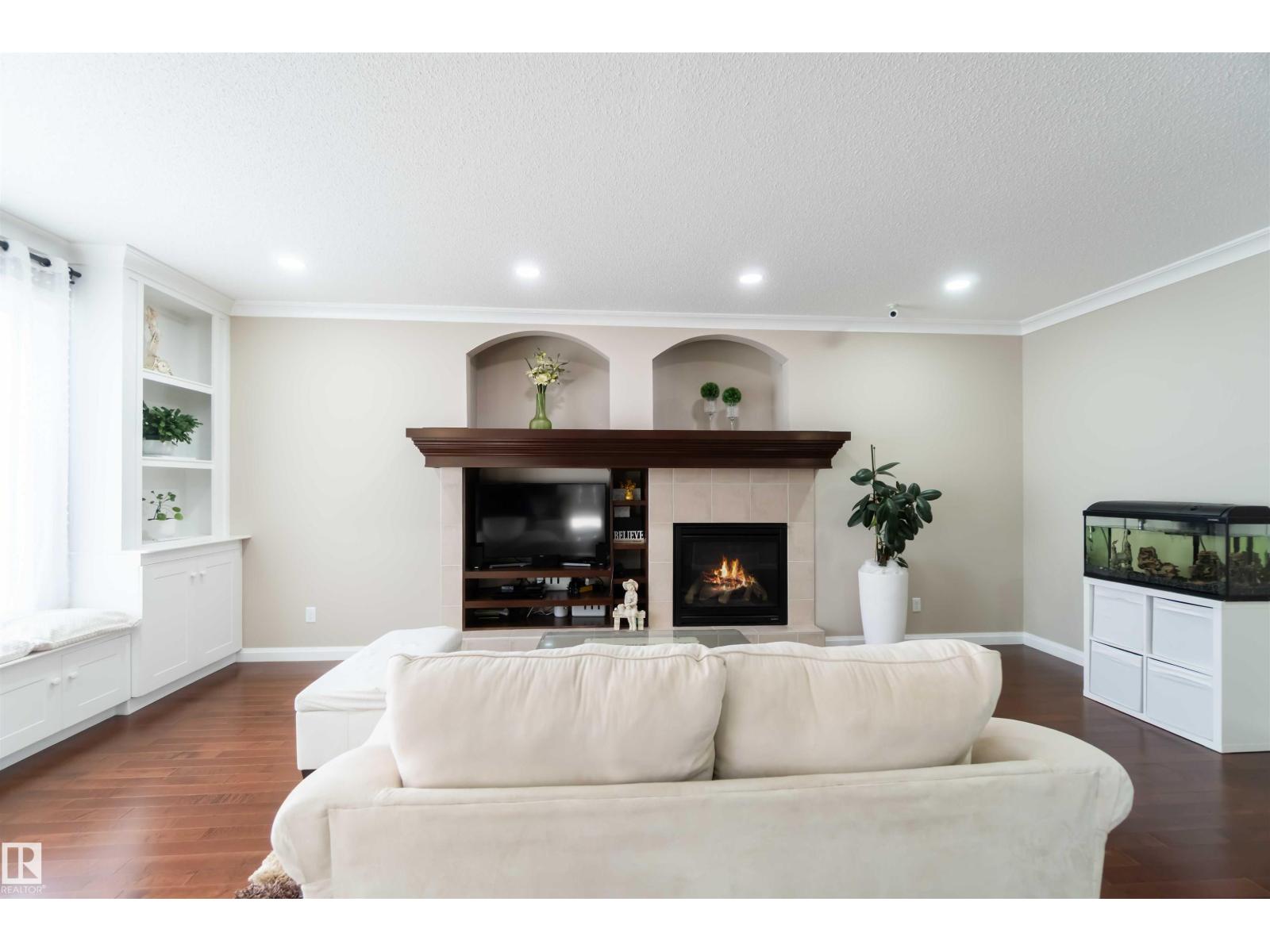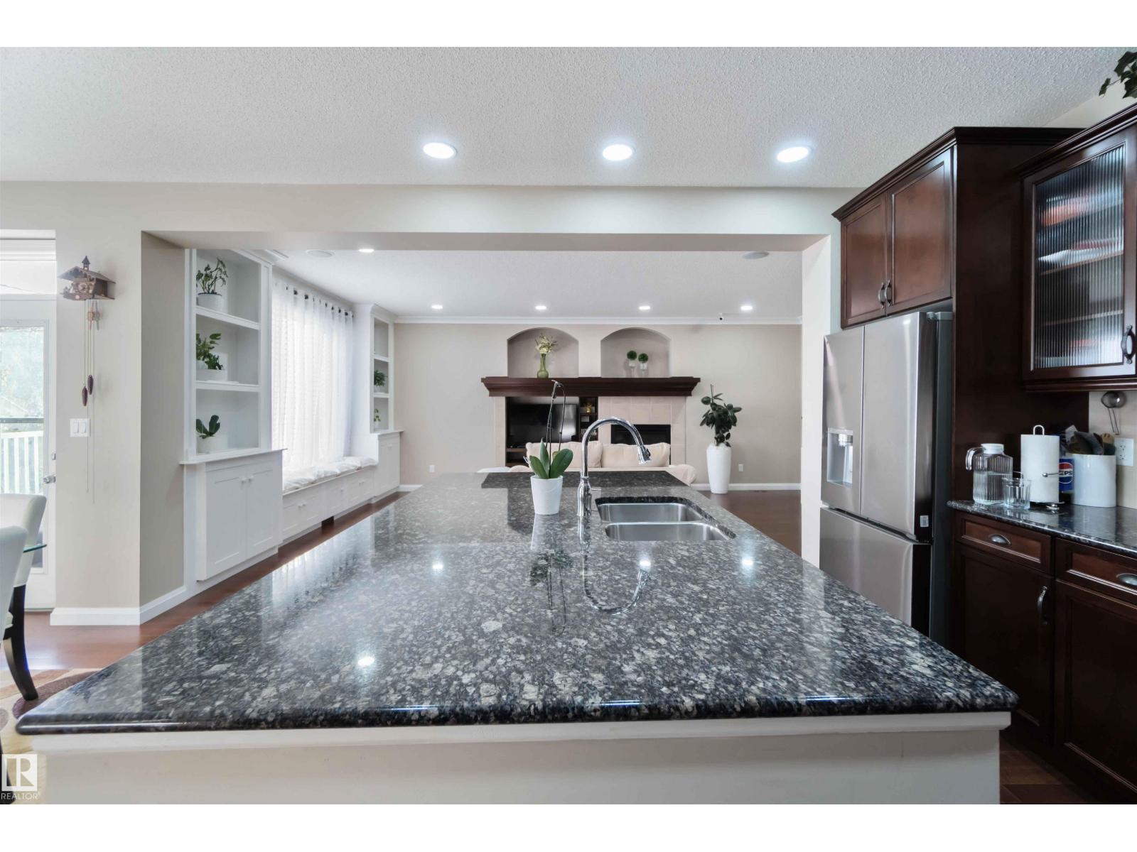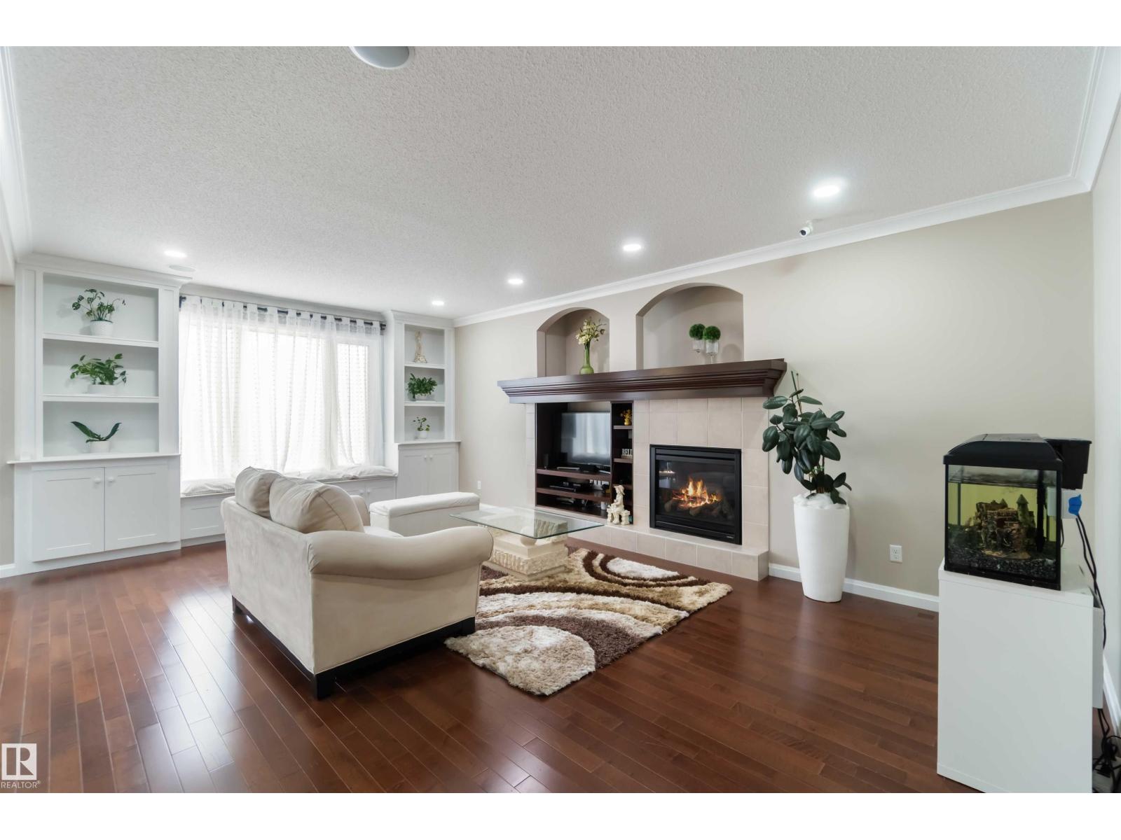 Freshly updated and beautifully maintained, this Ambleside 2-storey offers over 3,850 sq ft of well-designed living space. The open to below foyer welcomes you with natural light and warmth, leading to French doors that open to a versatile flex room, perfect for a home office or guest suite, with a full bath nearby for added convenience. The open concept living area features a stunning custom built-in feature wall with storage and seating, a cozy gas fireplace, and a kitchen with granite counters, rich cabinetry, and appliances that are practically new. Upstairs, four spacious bedrooms and a large bonus room provide comfort and flexibility for family living. The primary suite showcases a spa inspired ensuite with a steam shower and jet soaker tub. The finished basement adds a fifth bedroom, a full bath, and a generous recreation area. Complete with an oversized garage, mature landscaping, and a sunny deck, this home delivers exceptional style, space, and value. (id:42720)