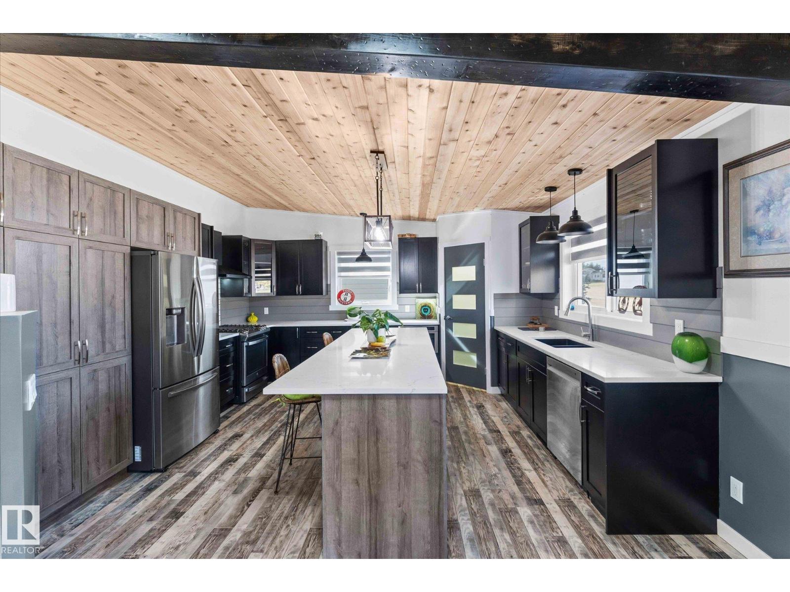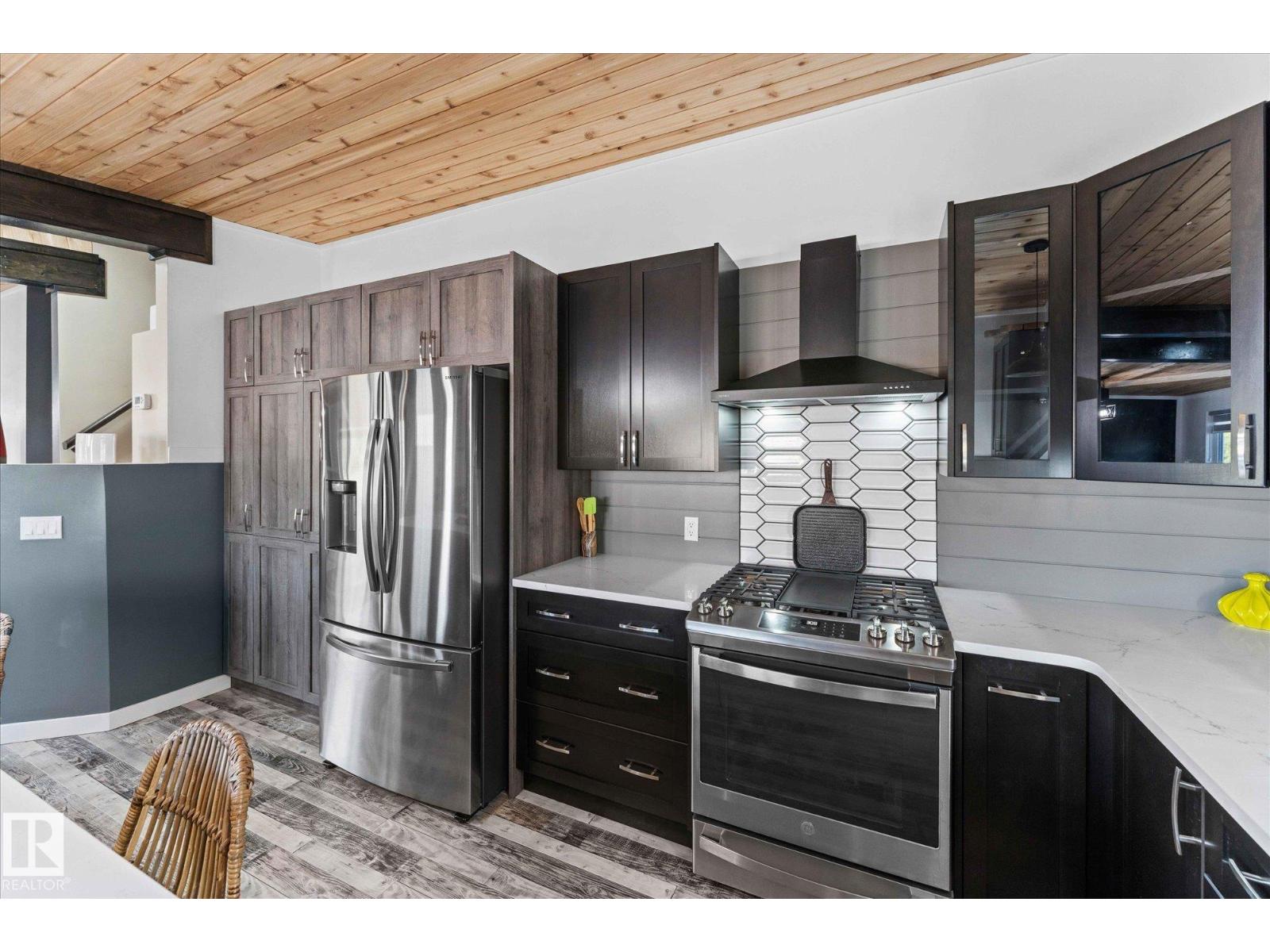 This Beautifully Redesigned 4 Level Split Home in The Scenic Lake Town of Wabamun Offers The Perfect Blend of Modern Style, Comfort & Functionality & is Only 20 Minutes From Stony Plain. Step Inside to Find a Brand New Custom Kitchen Featuring High End Stainless Steel Appliances Including a Gas Stove, Pull Out Microwave Drawer, Sleek Quartz Countertops & a Huge Island For Entertaining. There is a Spacious & Bright Dining Room, 4 Generous Bedrooms Including a Primary Suite With a Walk in Closet & Stunning Ensuite, a Versatile Bedroom With a Murphy Bed, Ideal For Guests or a Home Office, an Inviting Living Room With a Gas Fireplace, 2 Additional Full Baths & a Large Utility/Storage Room. Extensive Upgrades Consist of a New Furnace, Hot Water Tank, Air Conditioner, Vinyl Windows, Flooring, Siding, Fencing, Shingles on The House & Garage & More. Extras Include a Huge Cement Patio & an Oversized Garage That is Insulated, Heated, Has a Cement Floor, 220 Wiring & an RV Plug. This Rare Gem Could Be Yours! (id:42720)