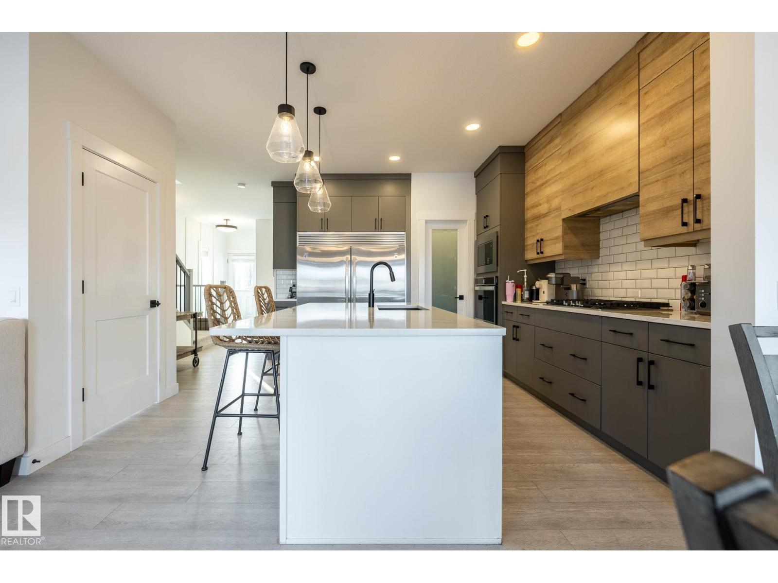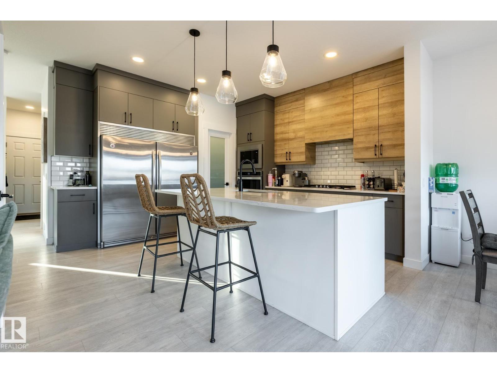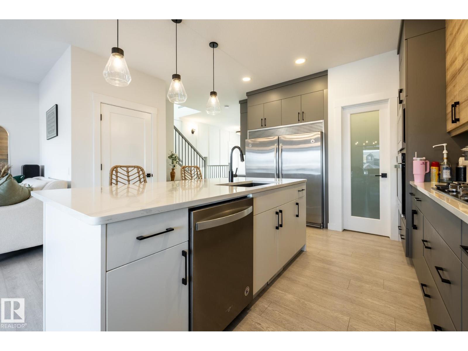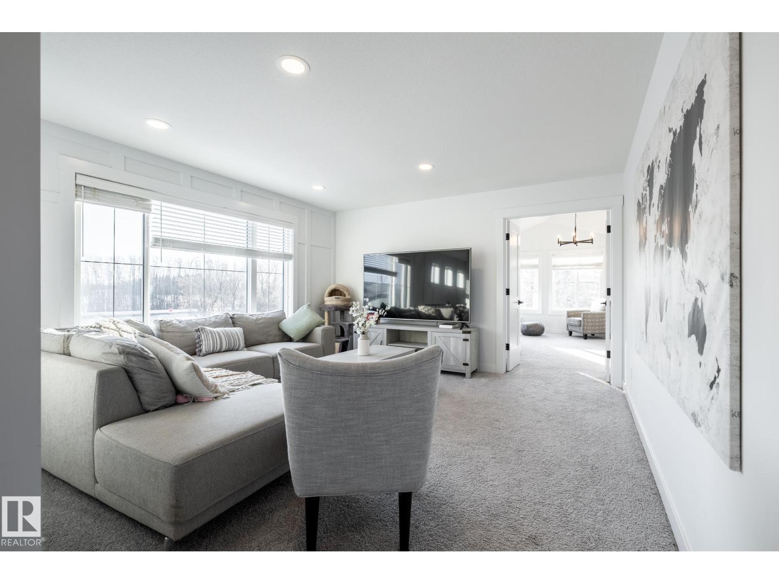 custom-built two-story home offering 2787.83 sq. ft. of total living area, situated on a bright corner lot with an open-concept main floor ideal for everyday living and entertaining. The kitchen features quartz countertops, stainless steel appliances, a gas range and a large island, flowing seamlessly into the living and dining areas. A main floor den & pantry add everyday functionality. The upper level offers three bedrooms, including a vaulted-ceiling primary suite with walk-in closet and five piece-ensuite, a second full bathroom, a spacious bonus room, and upper-floor laundry. The fully finish basement features three additional bedrooms, a four-piece bath, recreation room, second laundry area, separate side entrance, and rough-in plumbing for a future kitchen development. Additional features include central air conditioning, Hunter Douglas blinds, and a heated double attached garage with custom-built ceiling and wall storage. A well-designed, move-in-ready home in a desirable location. A Must-see home (id:42720)