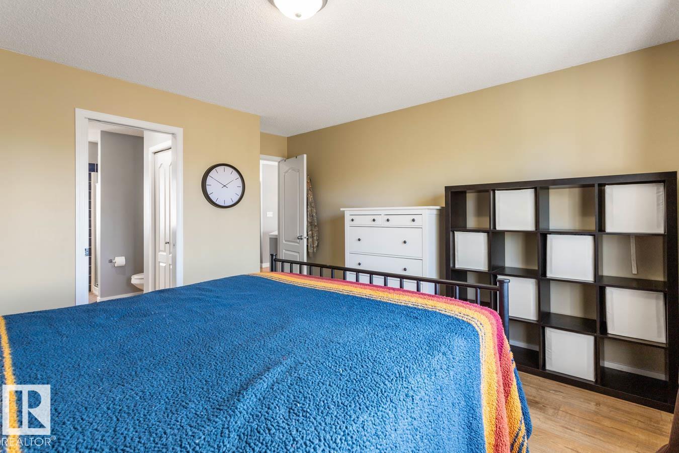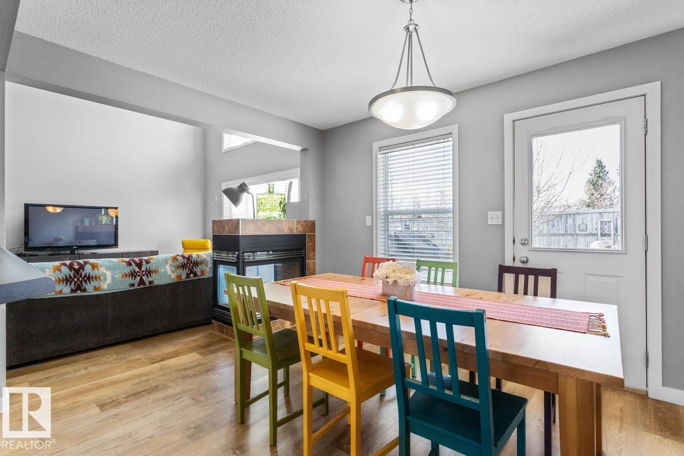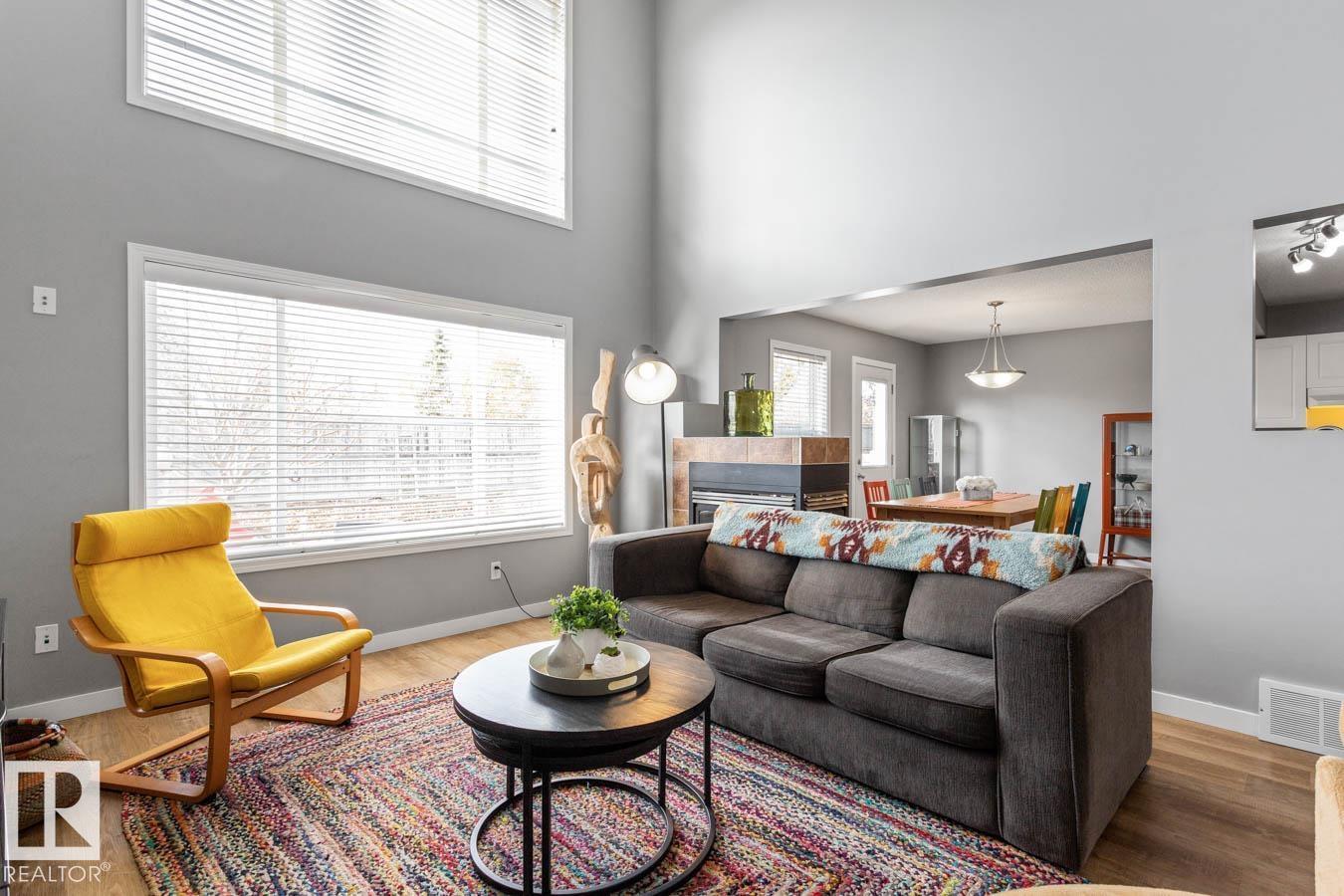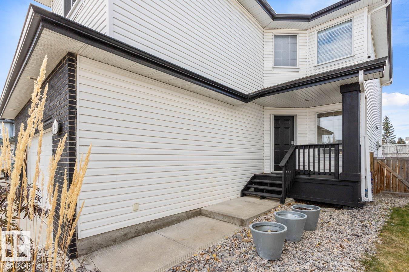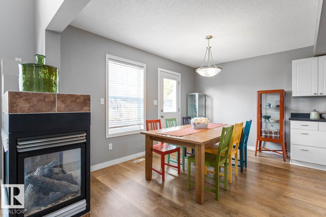 Located in the desirable community of Heritage Hills, this well-maintained home offers 3 bedrooms, 2.5 baths, and a NEW ROOF. Step inside to a bright, functional floor plan featuring luxury vinyl plank flooring and an abundance of natural light. The kitchen showcases plenty of white cabinetry, stainless steel appliances, a corner pantry, and island overlooking the dining area with cozy fireplace and a family-sized living room with soaring two-storey ceilings. Upstairs, the king-sized primary suite features dual closets and a private ensuite. Two additional generous bedrooms, a 4-pc main bath, and convenient upper-floor laundry complete the level. The unfinished basement provides excellent potential for a rec room or additional bedrooms & bathroom with RI plumbing. Enjoy the west-facing, fully fenced and landscaped yard with entertaining-sized deck and storage shed. Fantastic location close to parks, schools, Heritage Hills Dog Park, wetlands trails, and all amenities. (id:42720)