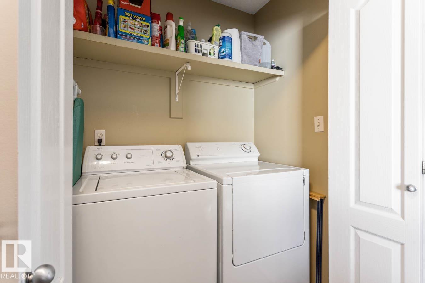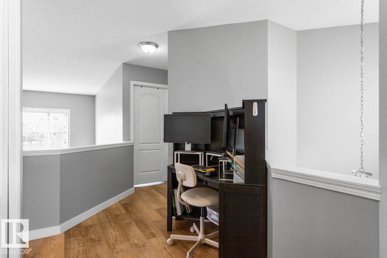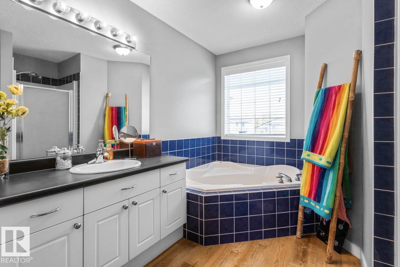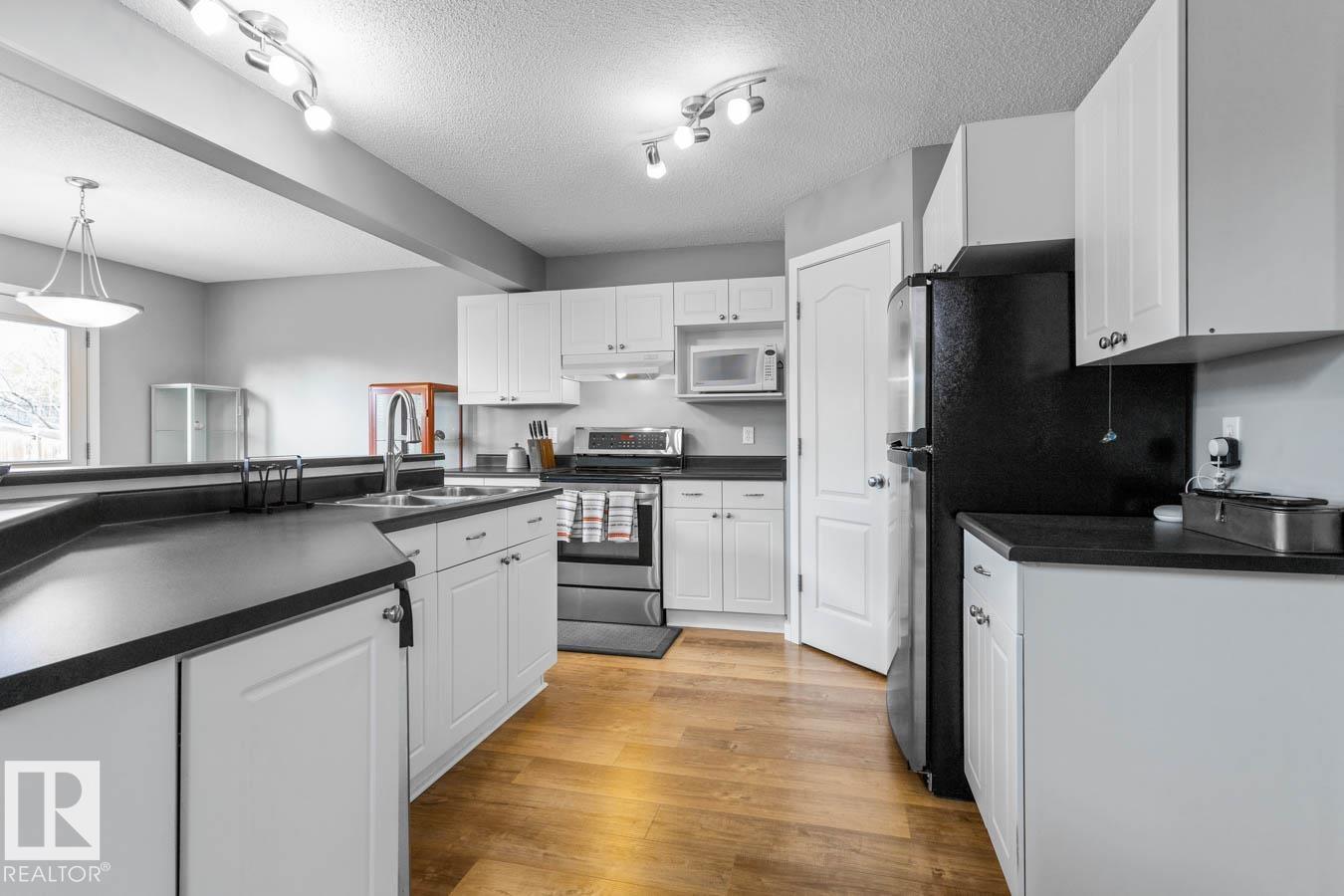 Located in the desirable community of Heritage Hills, this well-maintained home offers 3 bedrooms, 2.5 baths, and a NEW ROOF. Step inside to a bright, functional floor plan featuring luxury vinyl plank flooring and an abundance of natural light. The kitchen showcases plenty of white cabinetry, stainless steel appliances, a corner pantry, and island overlooking the dining area with cozy fireplace and a family-sized living room with soaring two-storey ceilings. Upstairs, the king-sized primary suite features dual closets and a private ensuite. Two additional generous bedrooms, a 4-pc main bath, and convenient upper-floor laundry complete the level. The unfinished basement provides excellent potential for a rec room or additional bedrooms & bathroom with RI plumbing. Enjoy the west-facing, fully fenced and landscaped yard with entertaining-sized deck and storage shed. Fantastic location close to parks, schools, Heritage Hills Dog Park, wetlands trails, and all amenities. (id:42720)