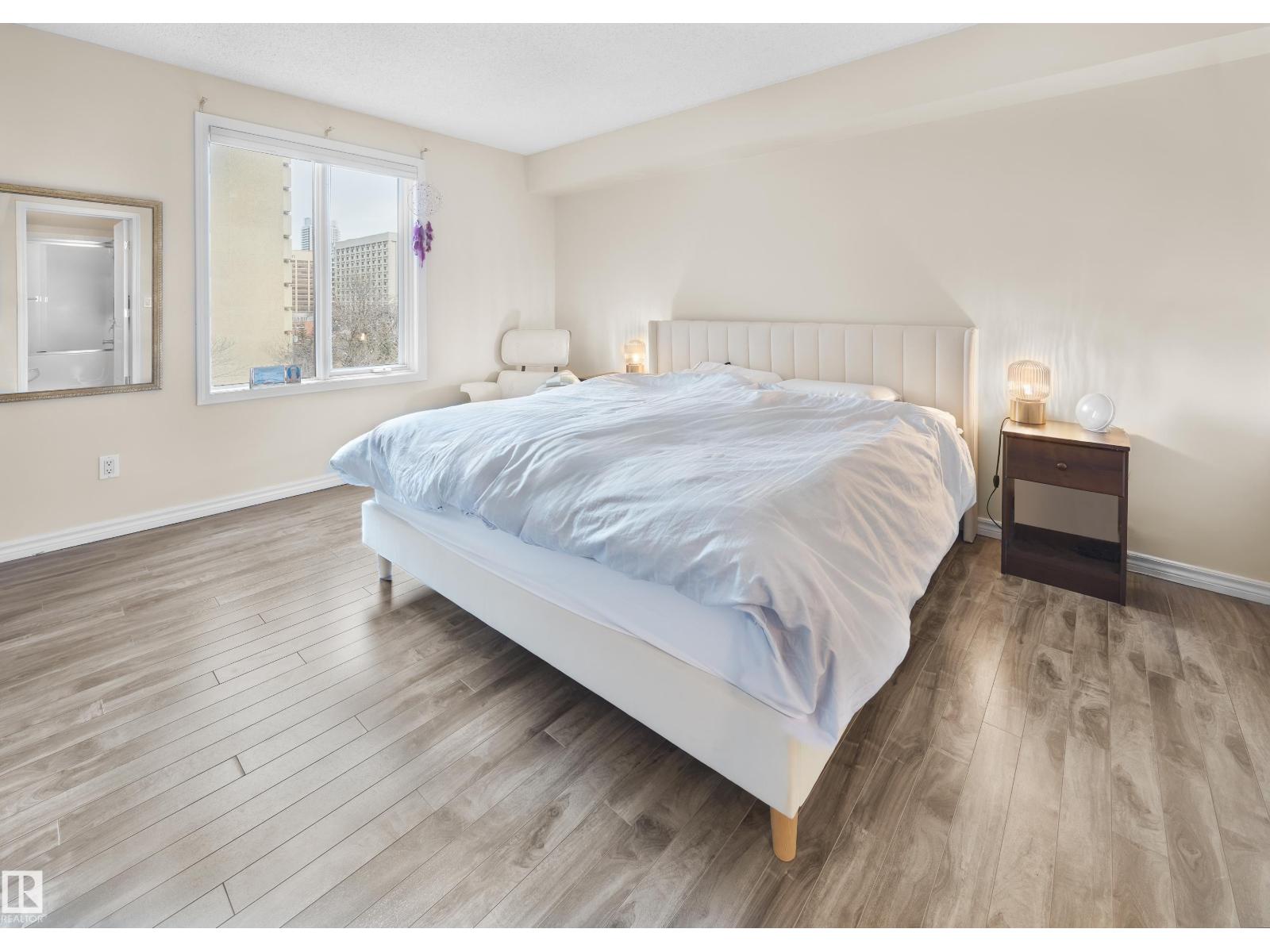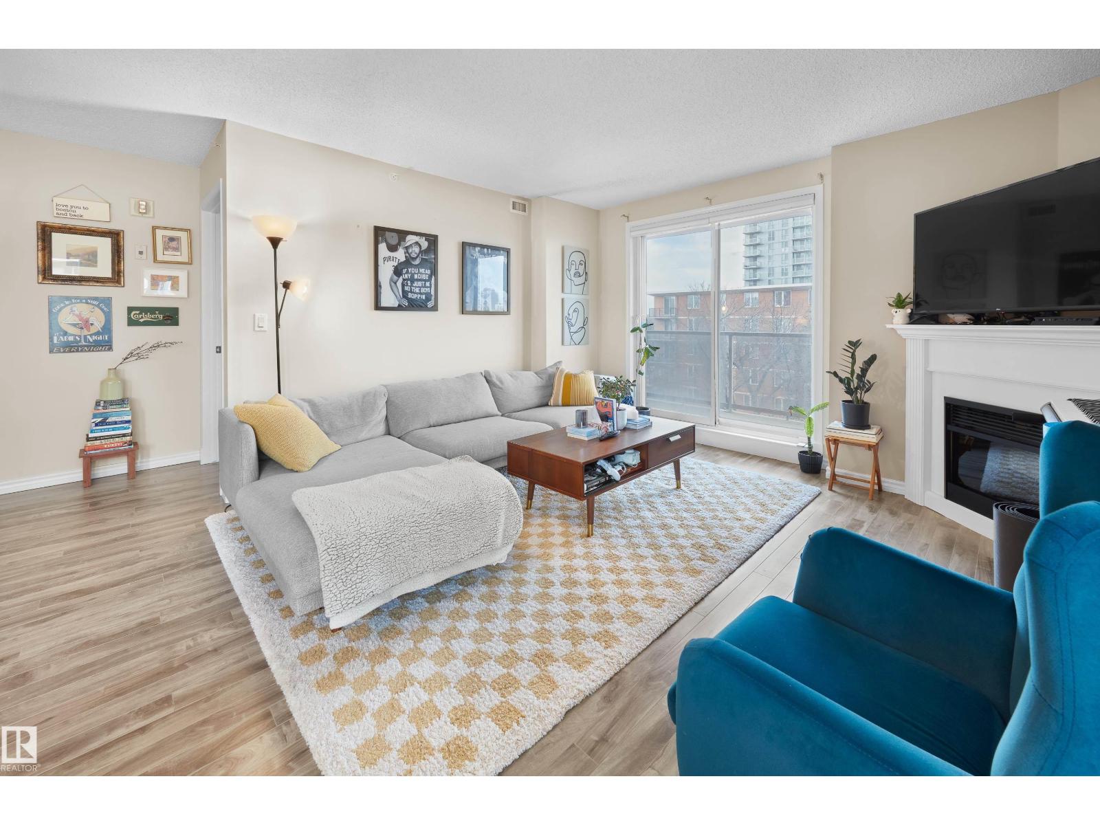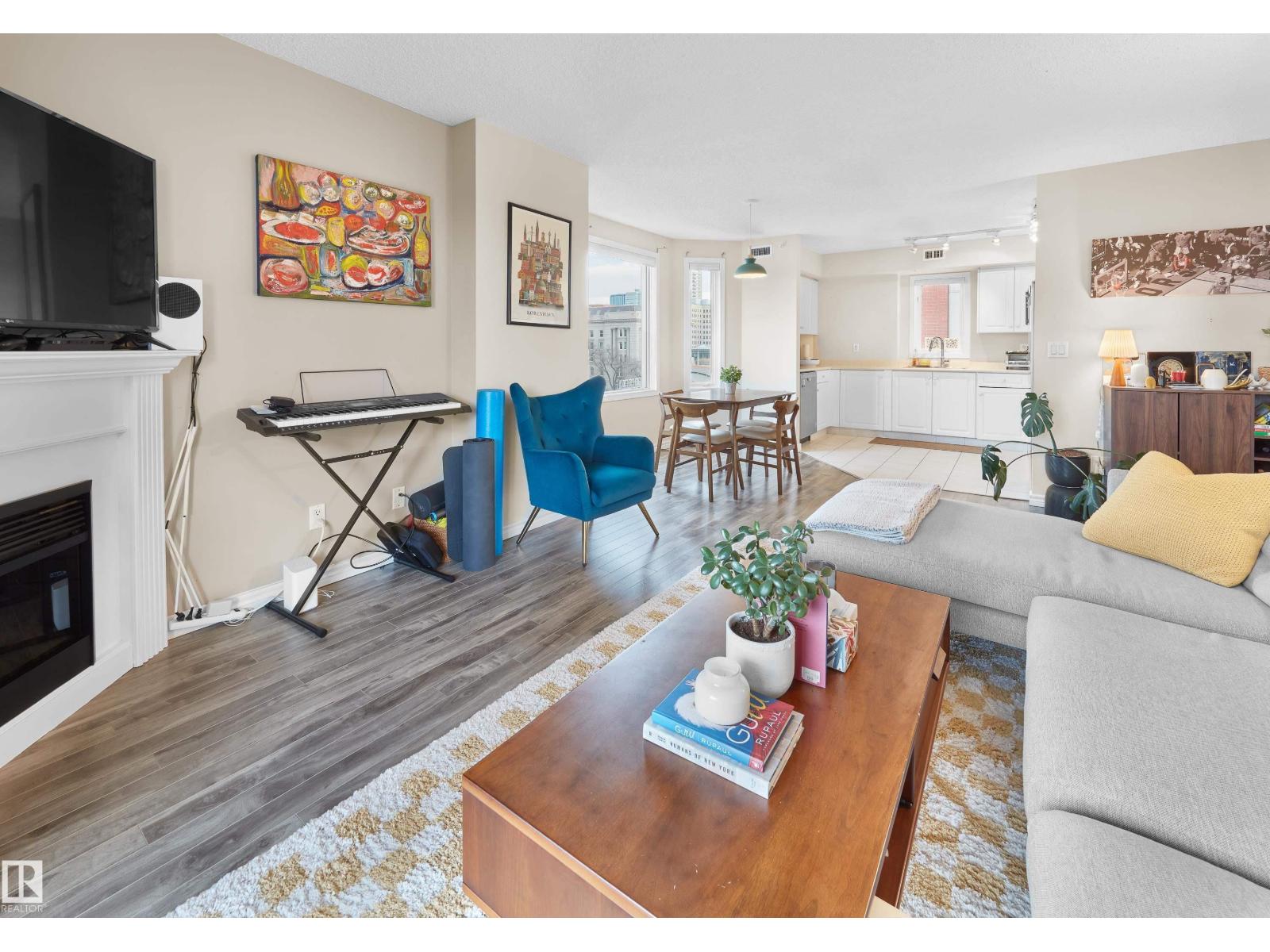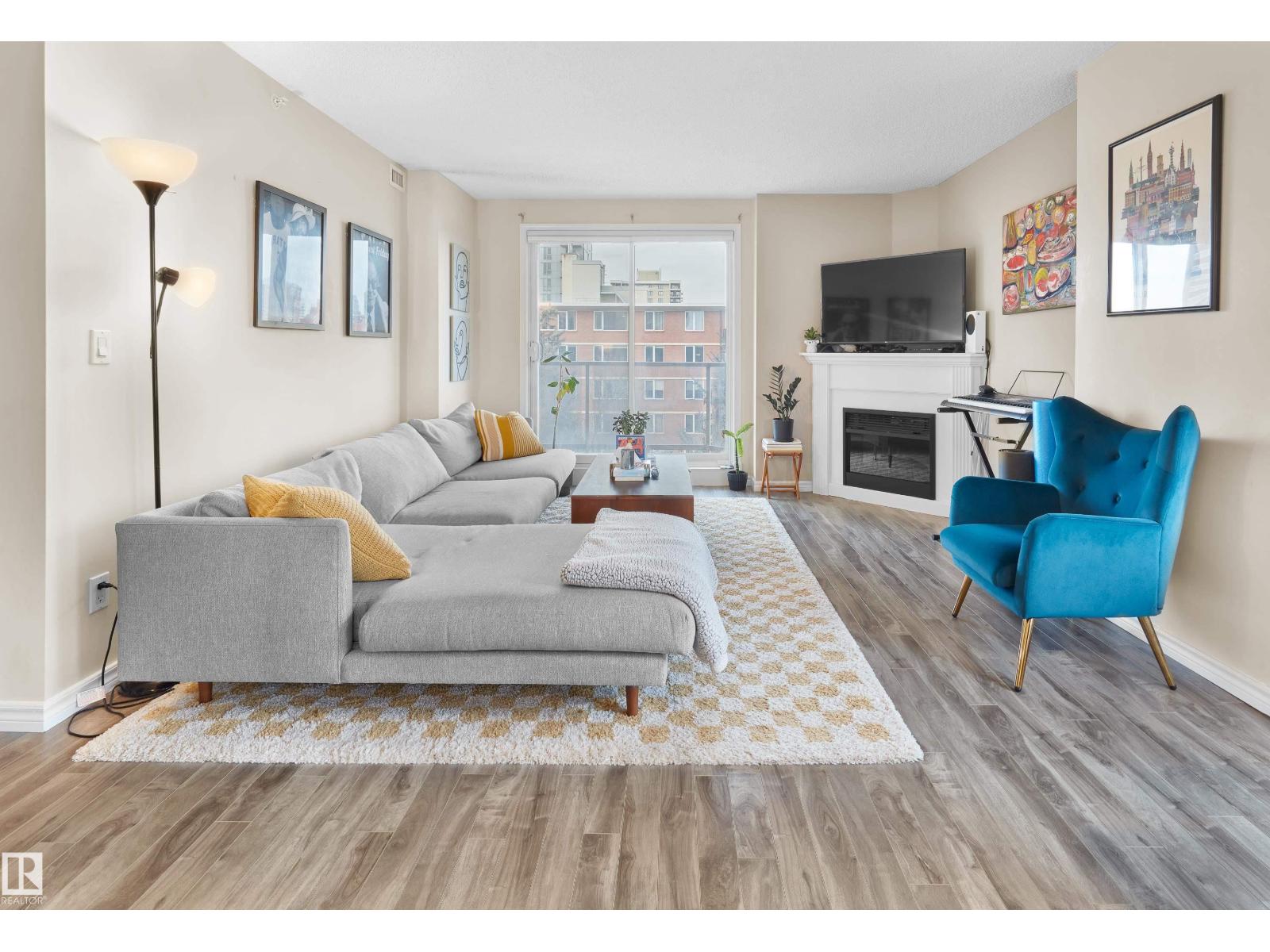 Steps from the river valley, the Legislature, and popular dining spots, this two-bedroom condo offers the ideal blend of downtown living and Edmonton’s natural beauty. With quick access to the Government Centre LRT station, it’s perfect for both students and professionals. This 1,091 sq.ft. corner unit features 2 bedrooms, 2 bathrooms, and 2 parking stalls—one underground with a storage locker and another conveniently located right outside the building. The spacious layout includes a large living room with a corner gas fireplace, a functional kitchen and dining area, and updated laminate flooring throughout. Both generously sized bedrooms offer ensuite bathrooms and walk-in closets with built-in shelving. Additional highlights include a west-facing balcony overlooking Grandin Park, in-suite laundry, and air conditioning! The building is pet and child-free and offers amenities such as an exercise room and meeting room, and ample visitor parking. A truly exceptional location. (id:42720)