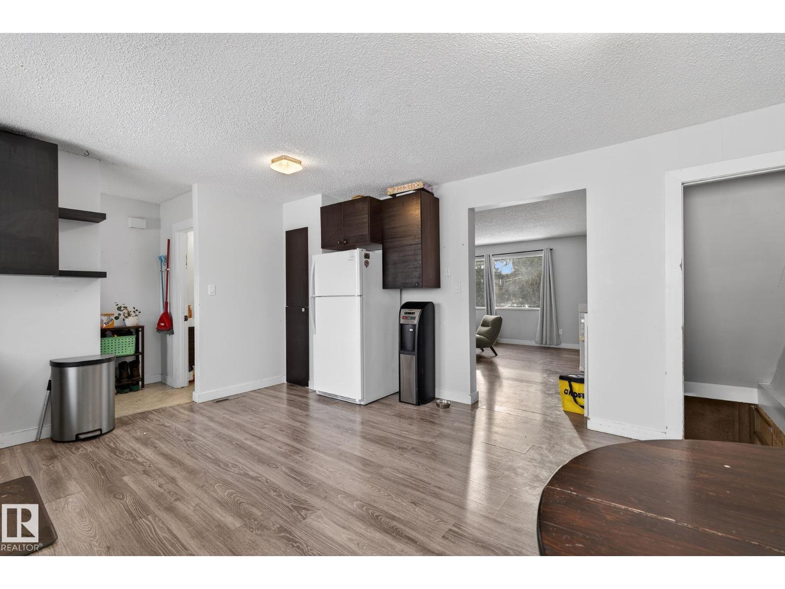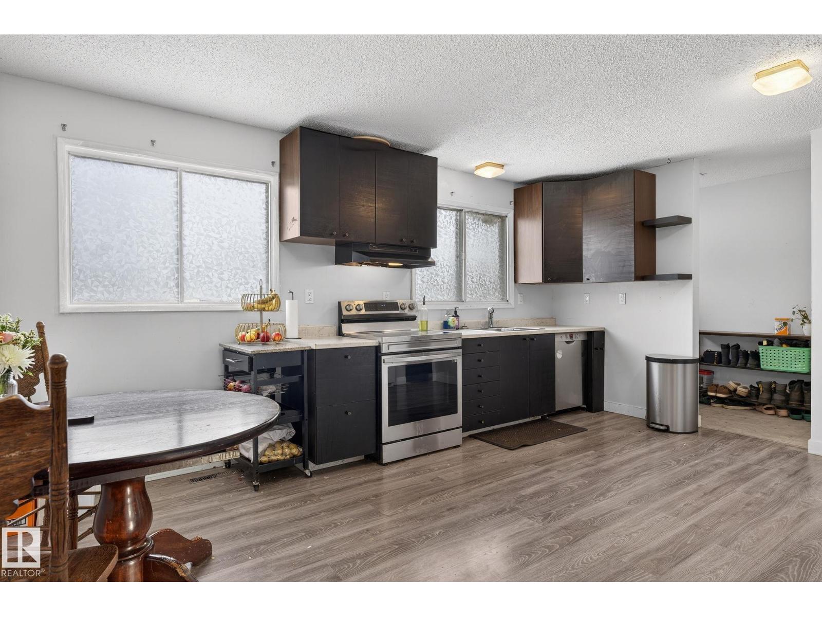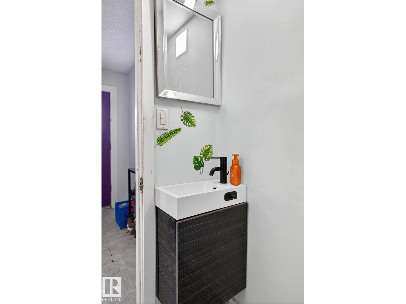 Step inside this spacious 3 bedroom half duplex located in desirable North Edmonton. The main floor offers a bright, open-concept kitchen and dining area perfect for everyday living and entertaining. A convenient half bathroom on the main level leads to the rear entrance and a fully fenced backyard. New flooring in the back entrance and half bath will be completed once the tenants have vacated. The rear lane access provides excellent parking options, with plenty of space and future potential for a garage. The large backyard offers room to relax, play, or garden. Upstairs, you’ll find an oversized primary bedroom, two additional generously sized bedrooms, and a full 4 pce bathroom, where the Pedestal vanity will also be replaced. The unfinished basement includes a dedicated laundry area and awaits your personal touch. Location truly sets this home apart. Enjoy the convenience of walking to nearby schools, parks, public transit, and shopping, with easy access to Anthony Henday Drive and major routes. (id:42720)