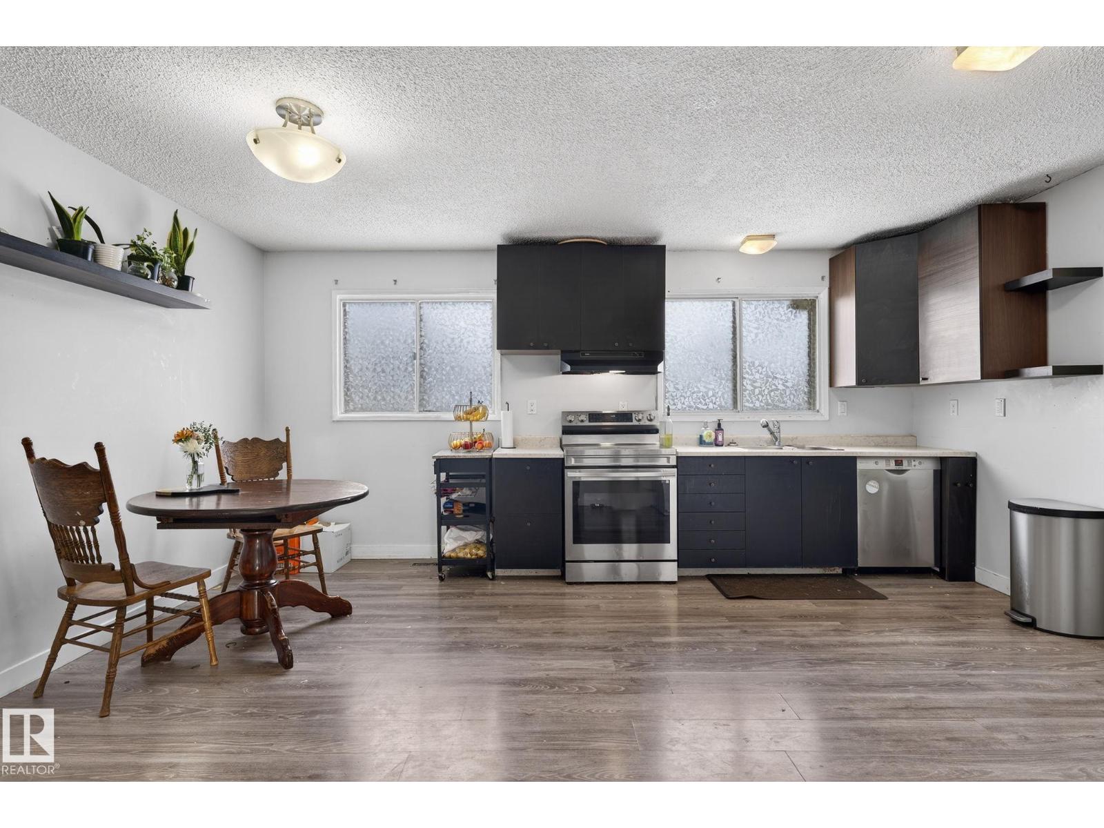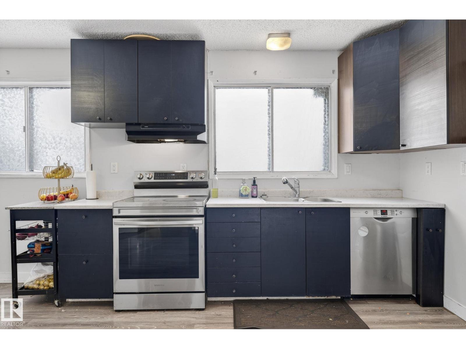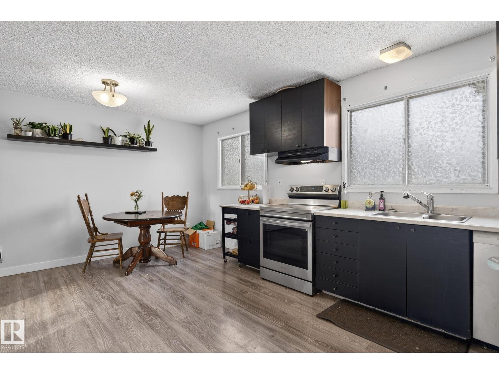 Step inside this spacious 3 bedroom half duplex located in desirable North Edmonton. The main floor offers a bright, open-concept kitchen and dining area perfect for everyday living and entertaining. A convenient half bathroom on the main level leads to the rear entrance and a fully fenced backyard. New flooring in the back entrance and half bath will be completed once the tenants have vacated. The rear lane access provides excellent parking options, with plenty of space and future potential for a garage. The large backyard offers room to relax, play, or garden. Upstairs, you’ll find an oversized primary bedroom, two additional generously sized bedrooms, and a full 4 pce bathroom, where the Pedestal vanity will also be replaced. The unfinished basement includes a dedicated laundry area and awaits your personal touch. Location truly sets this home apart. Enjoy the convenience of walking to nearby schools, parks, public transit, and shopping, with easy access to Anthony Henday Drive and major routes. (id:42720)