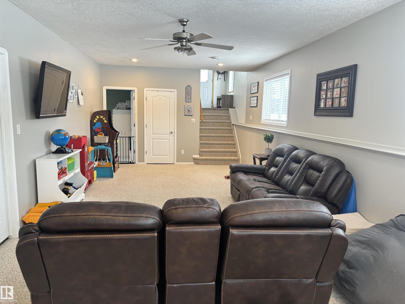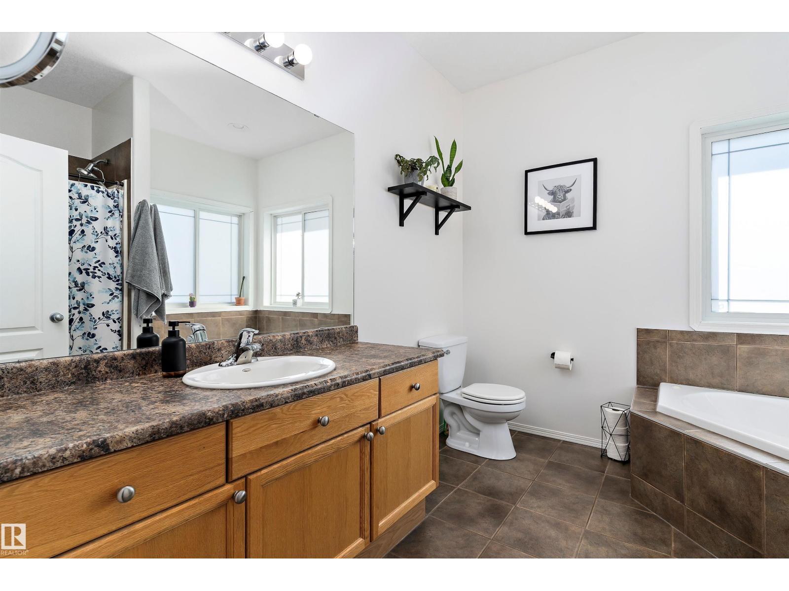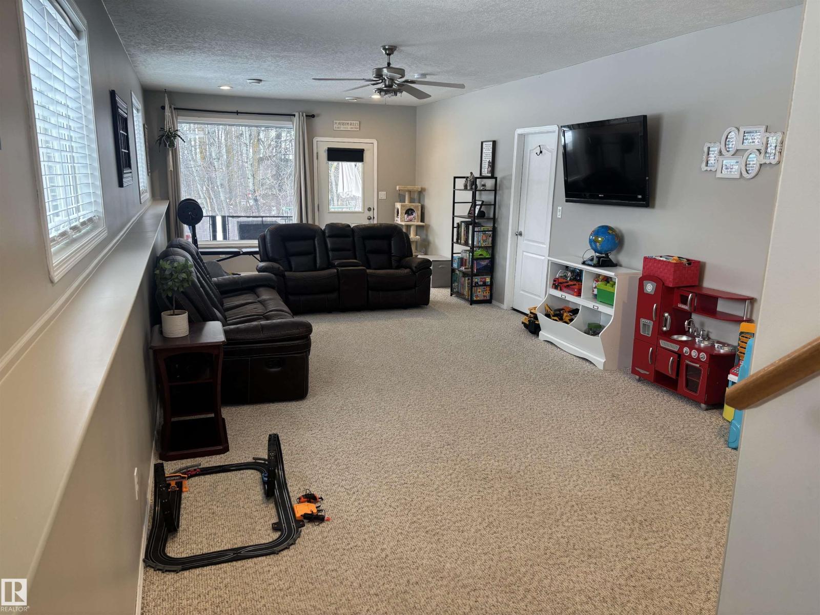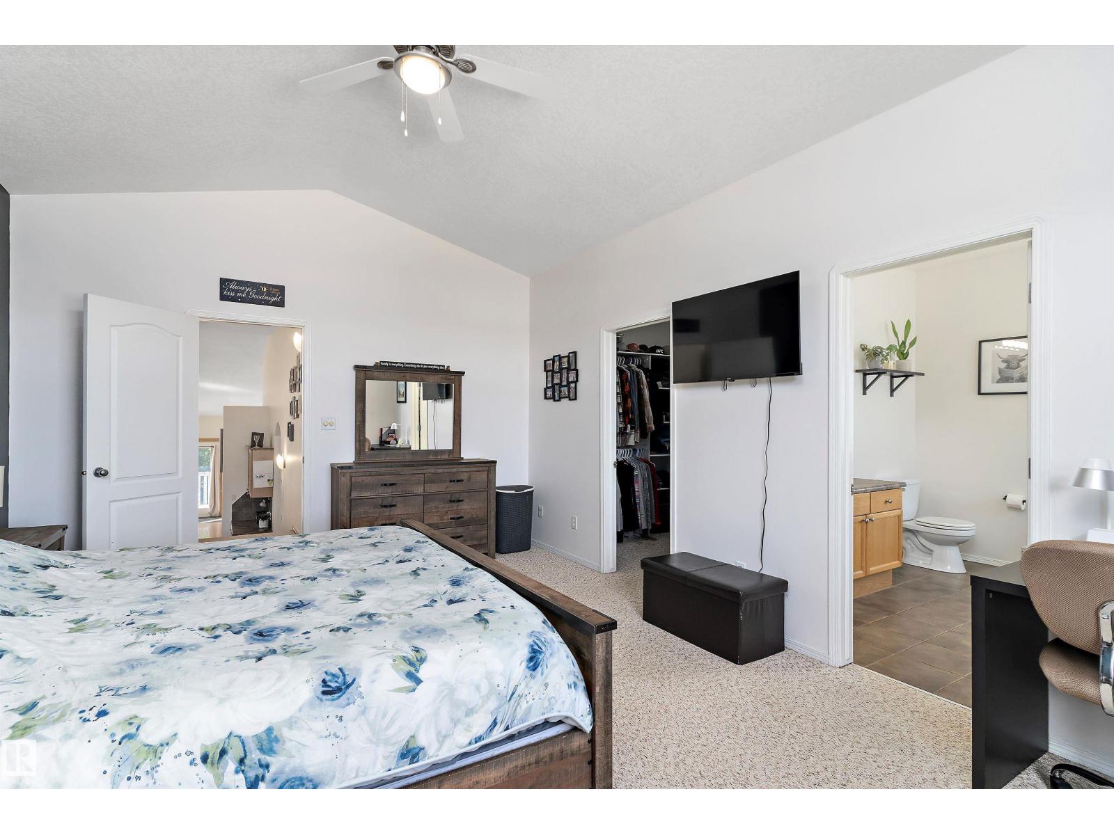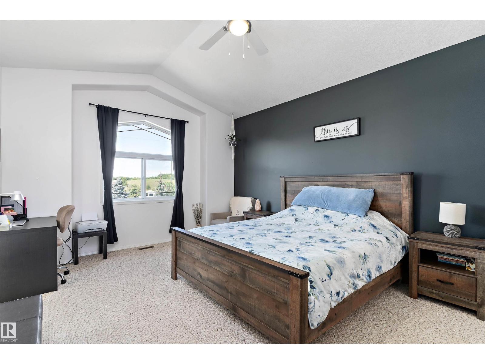 10/10 fenced acreage! Here is your chance to move into Willow Peak Park in the village of Spring Lake. This walk out Bi-level offers 3 bedrooms and 2 bathrooms. Main floor offers open concept with abundance of light. Beautiful oak kitchen with lots of storage, island, peninsula and walk in pantry and new appliances. Cozy living room with gas fireplace and vaulted ceiling. The main floor offers 2 bedrooms and a 4 piece bathroom. Just a few steps up will lead you to the large primary bedroom with a huge walk in closet and 4 piece bath with corner tub. The basement has large family room and laundry room. Additional basement space for a bedroom and bathroom. Two tiered deck allows for great entertaining in this private yard. Lots to explore on this beautiful property,walk down to the trees for a separate secluded fire pit area.Double attached garage with ample parking for vehicles and RV'S. Upgrades include new hot water tank (2023) Garage door(2024) and fence(2024) close to Blueberry school and Stony Plain (id:42720)